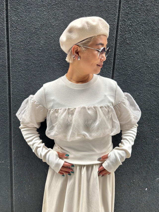organdy frill design long sleeve tops トップス テレコ オーガンジー フリル 長袖