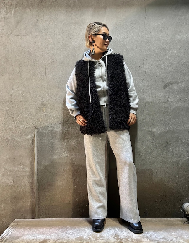 eco fur trimming hoodie zip up knit jacket ニット フーディー フード ファー トリミング ジップアップ