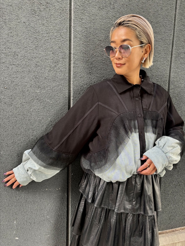 different fabrics mix design jacket ジャケット 異素材切替 デニム チュール 中綿 襟付き アウター