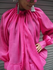 organdy flare bow-tie ribbon design shirt tops トップス オーガンジー フレア ボウタイ リボン