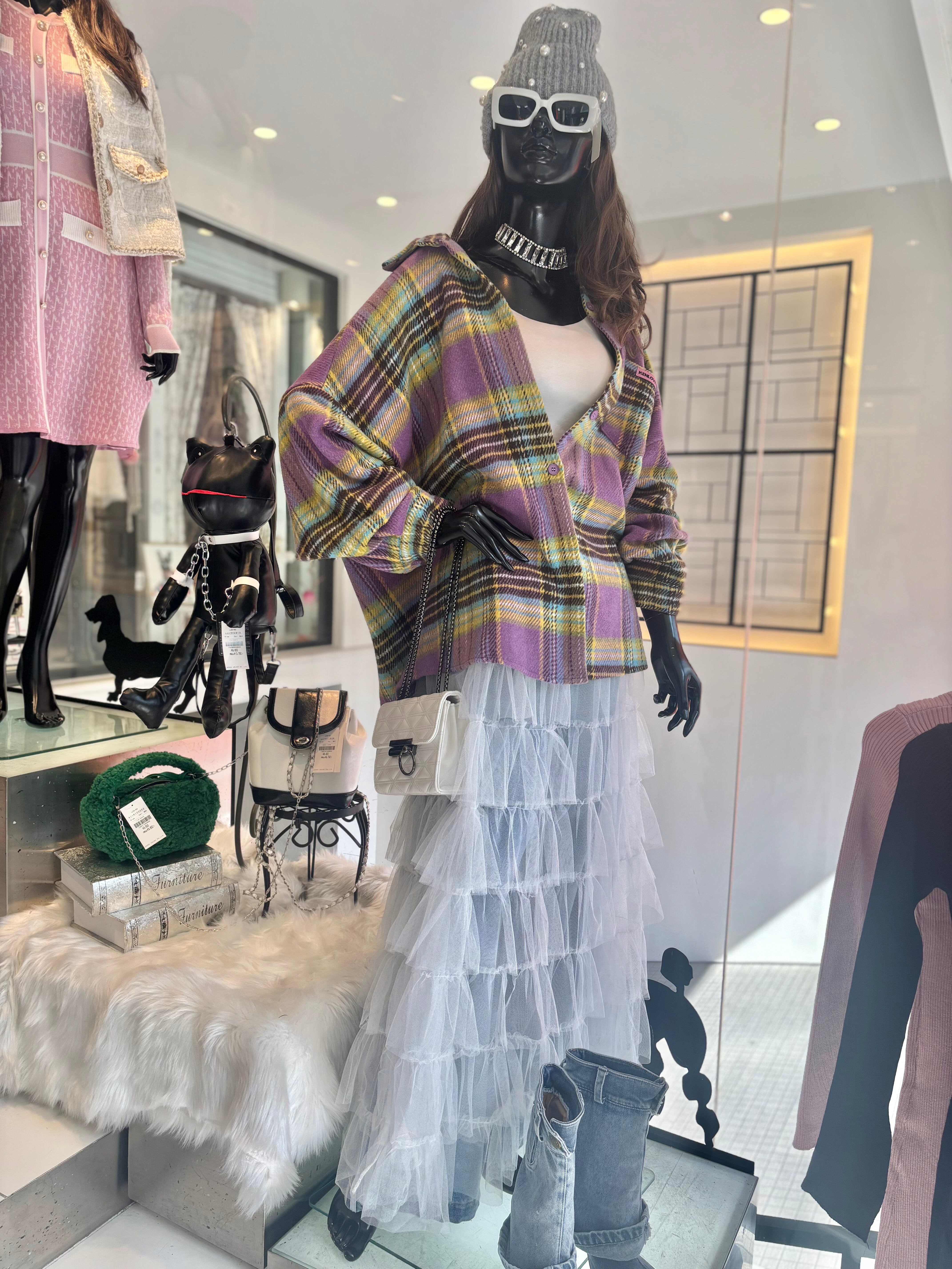 チェック柄が特徴的なオーバーサイズシャツジャケット♪