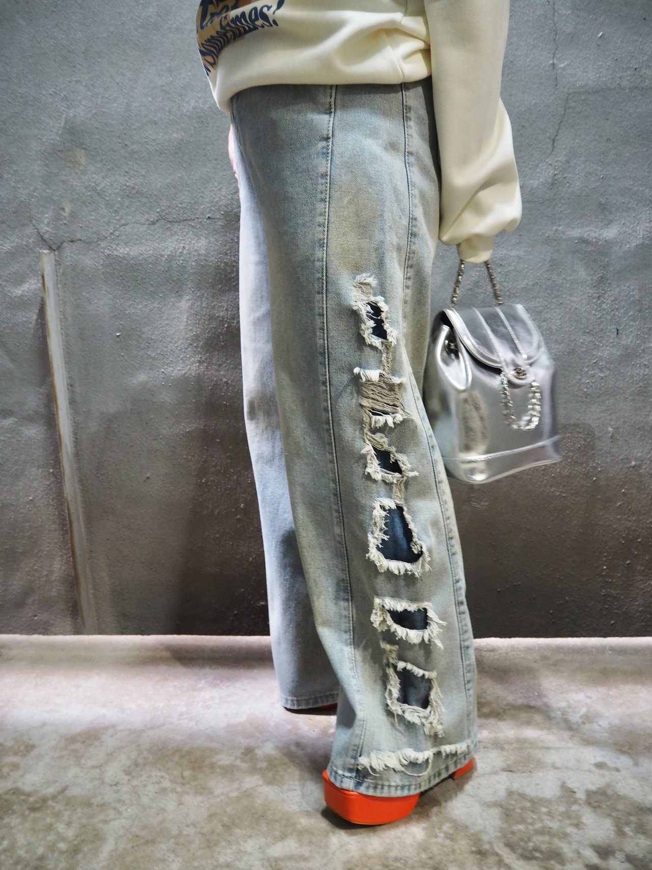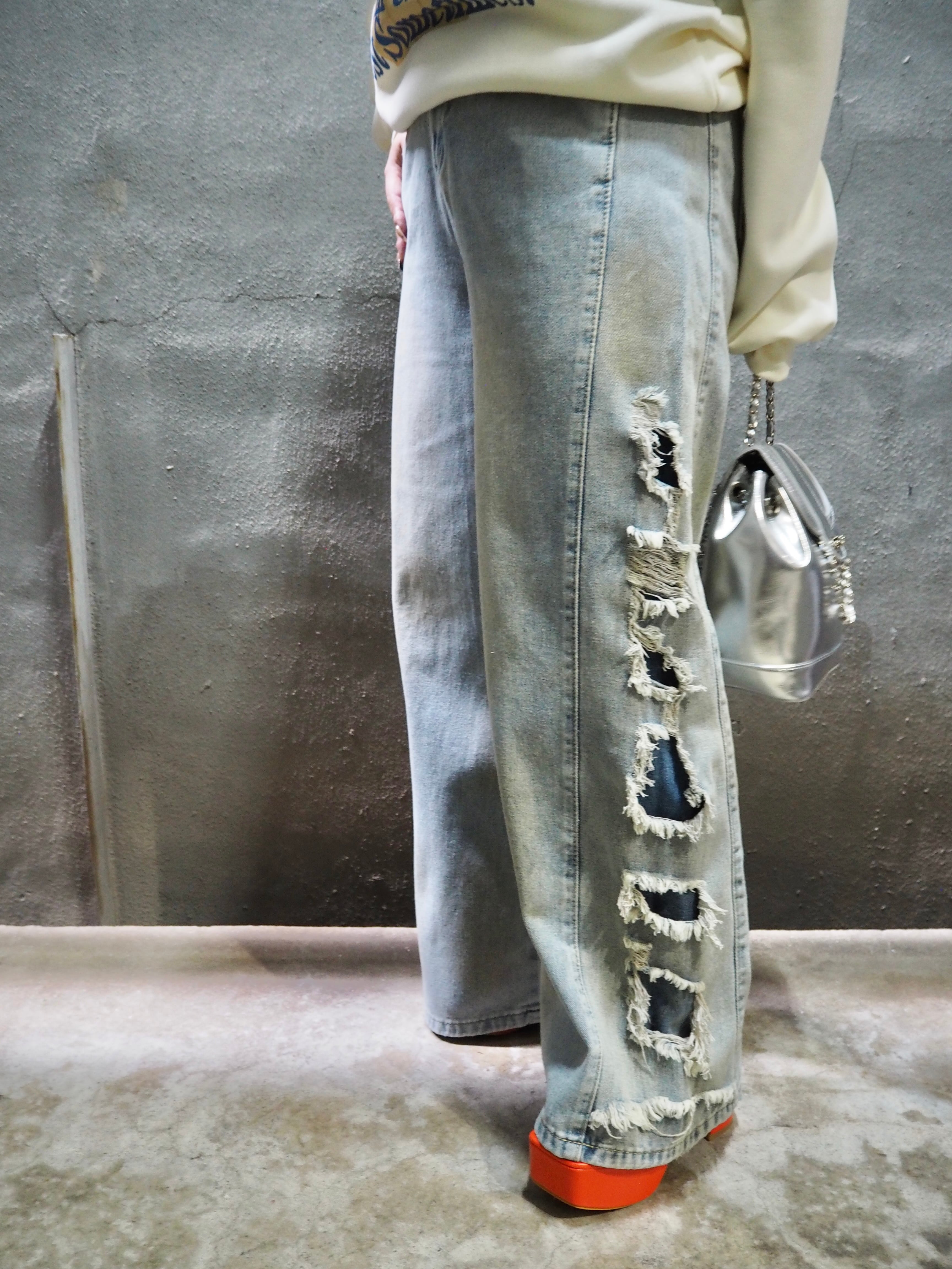damage wide leg design denim pants パンツ デニム ワイドレッグ ダメージ