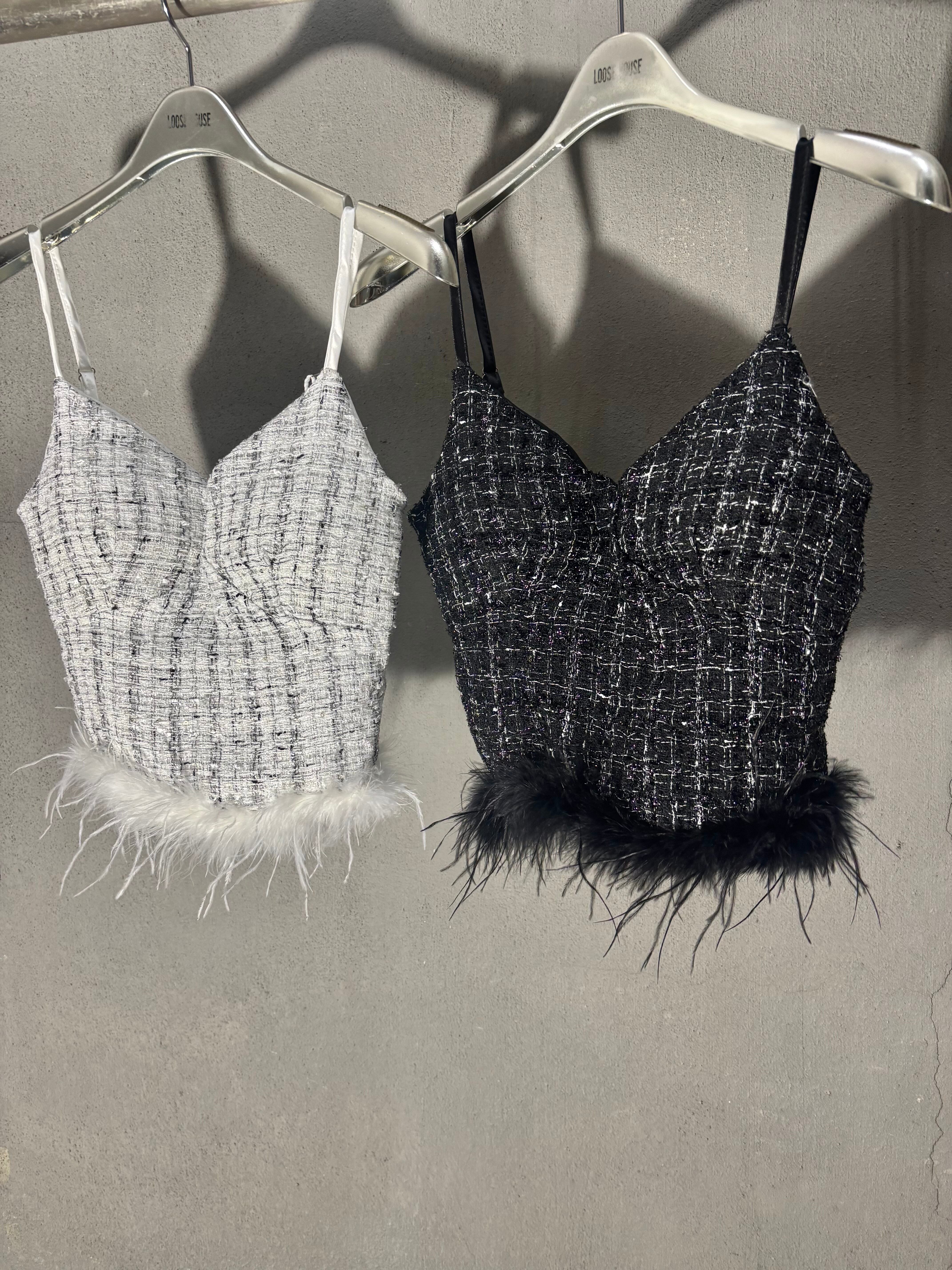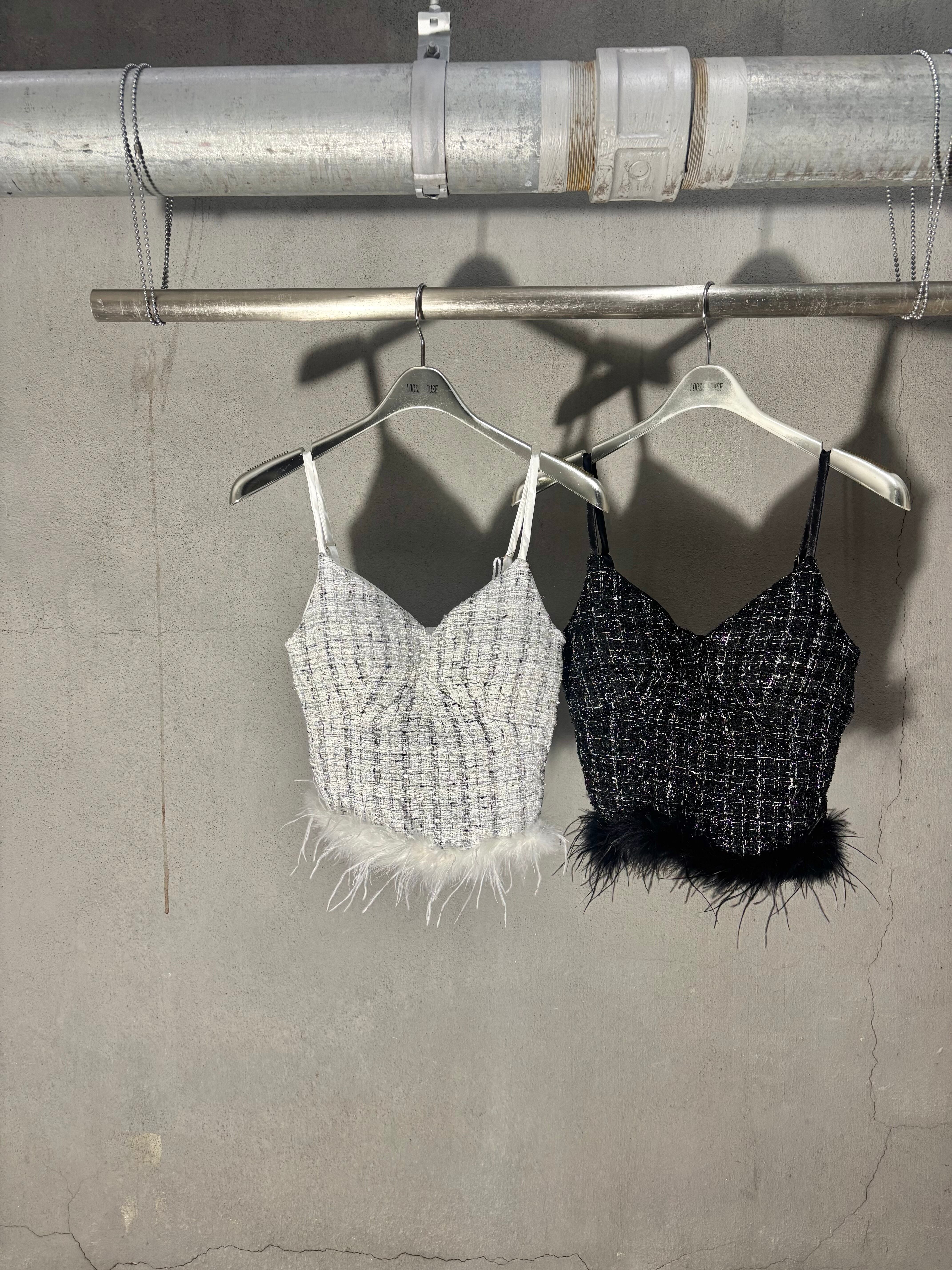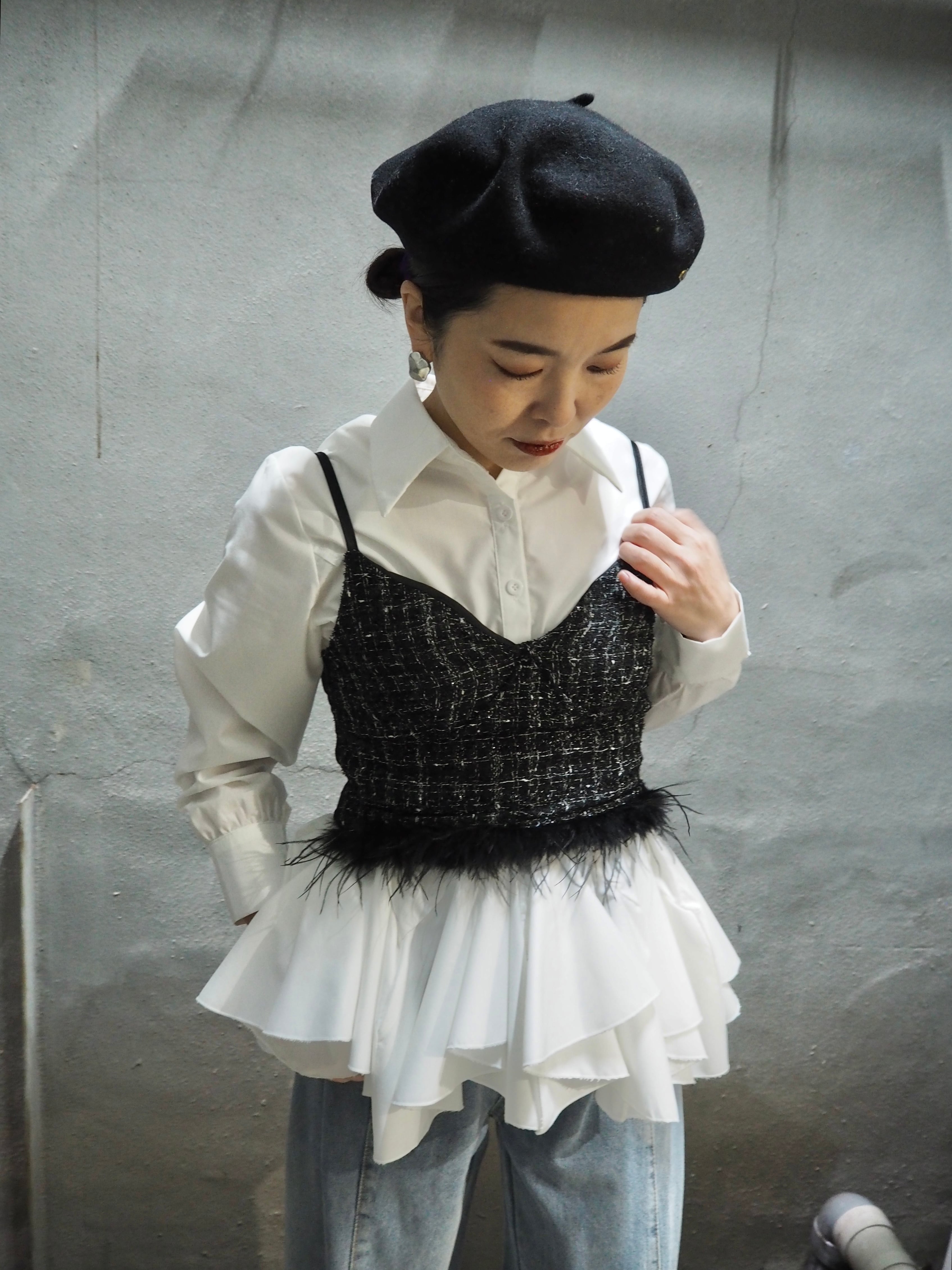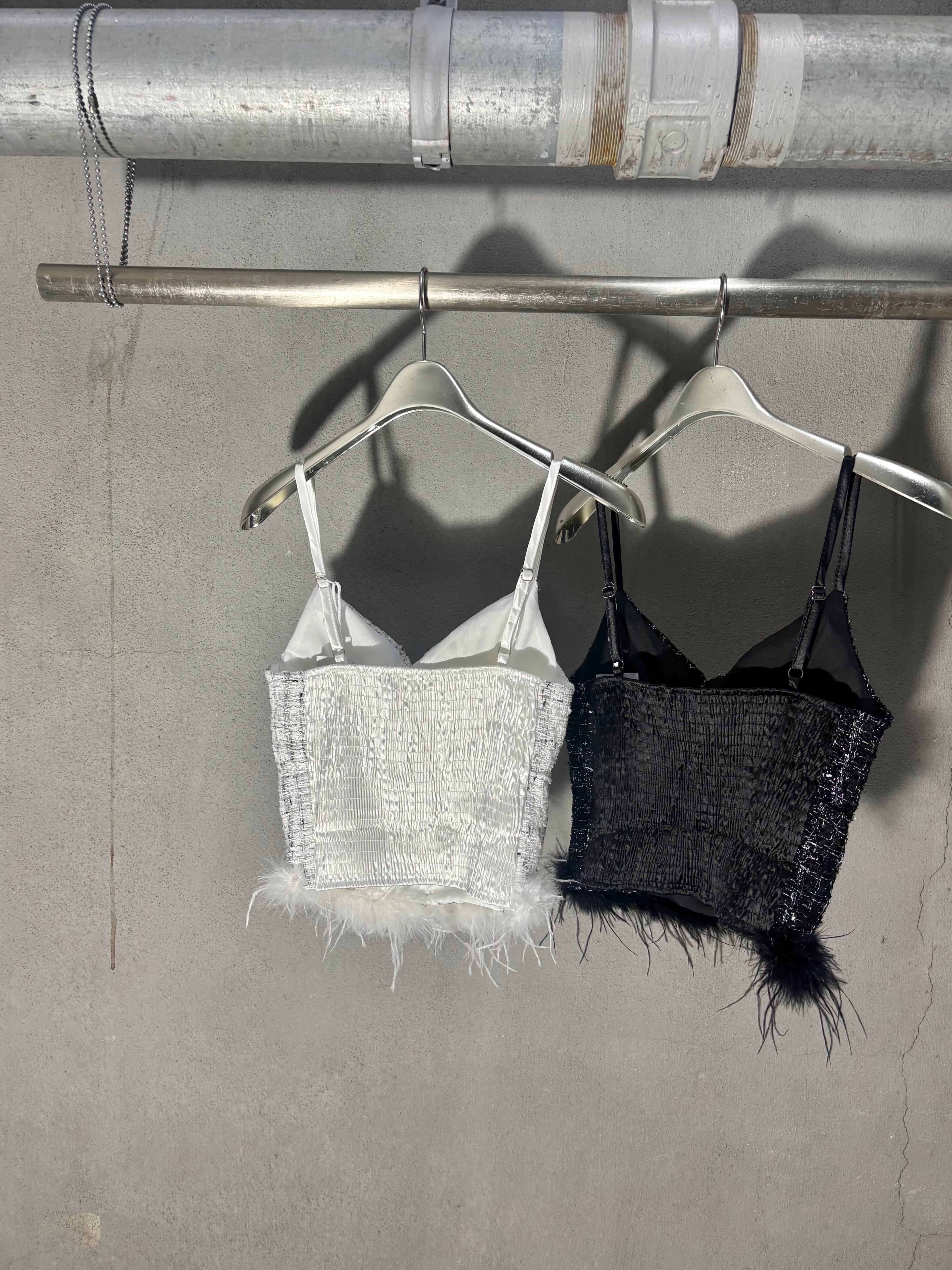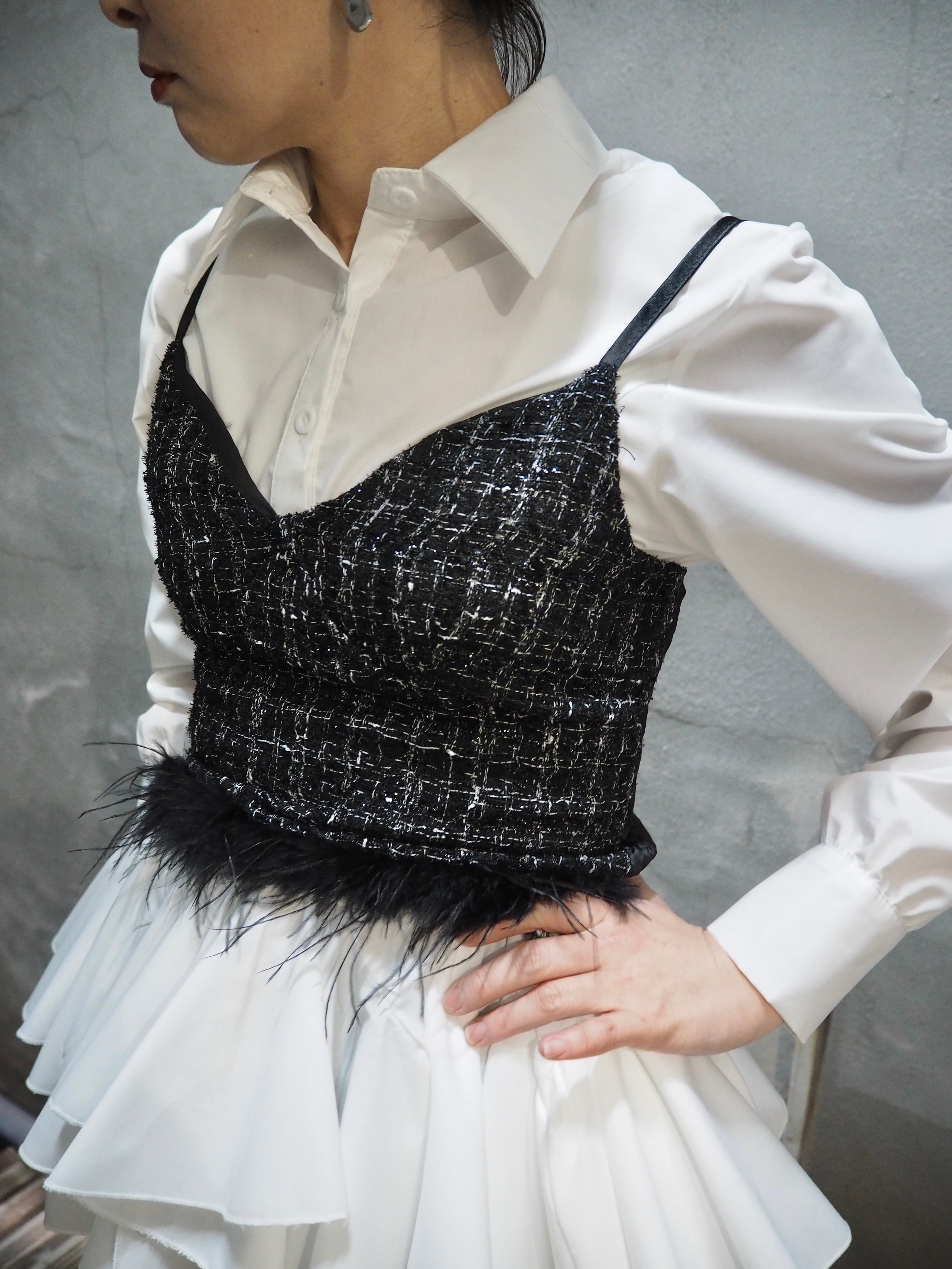 tweed × feather design camisole キャミソール ツィード フェザー 重ね着