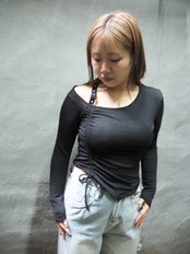 アシンメトリーデザイン&シャーリングが特徴のブラックデザイントップス♡