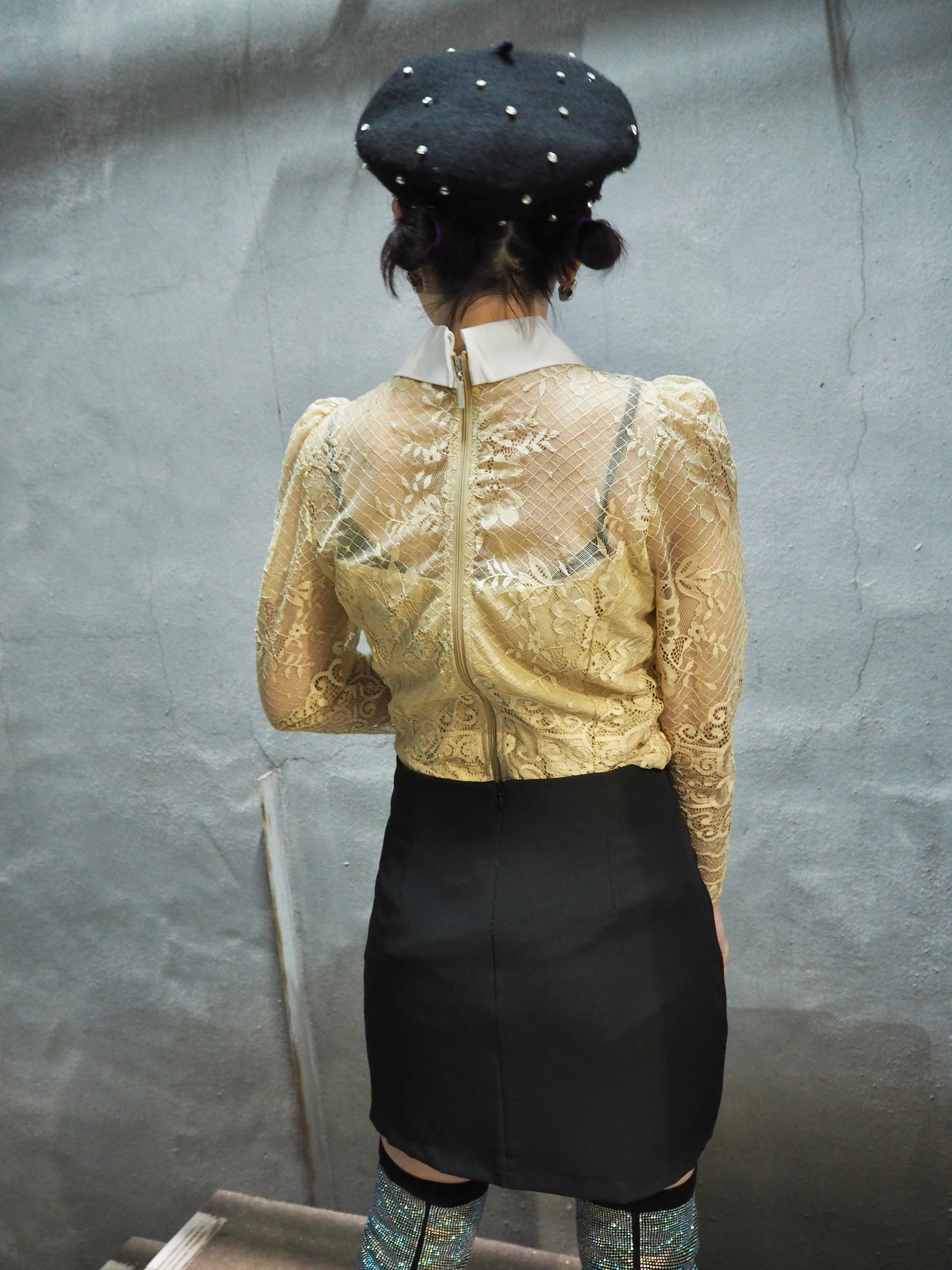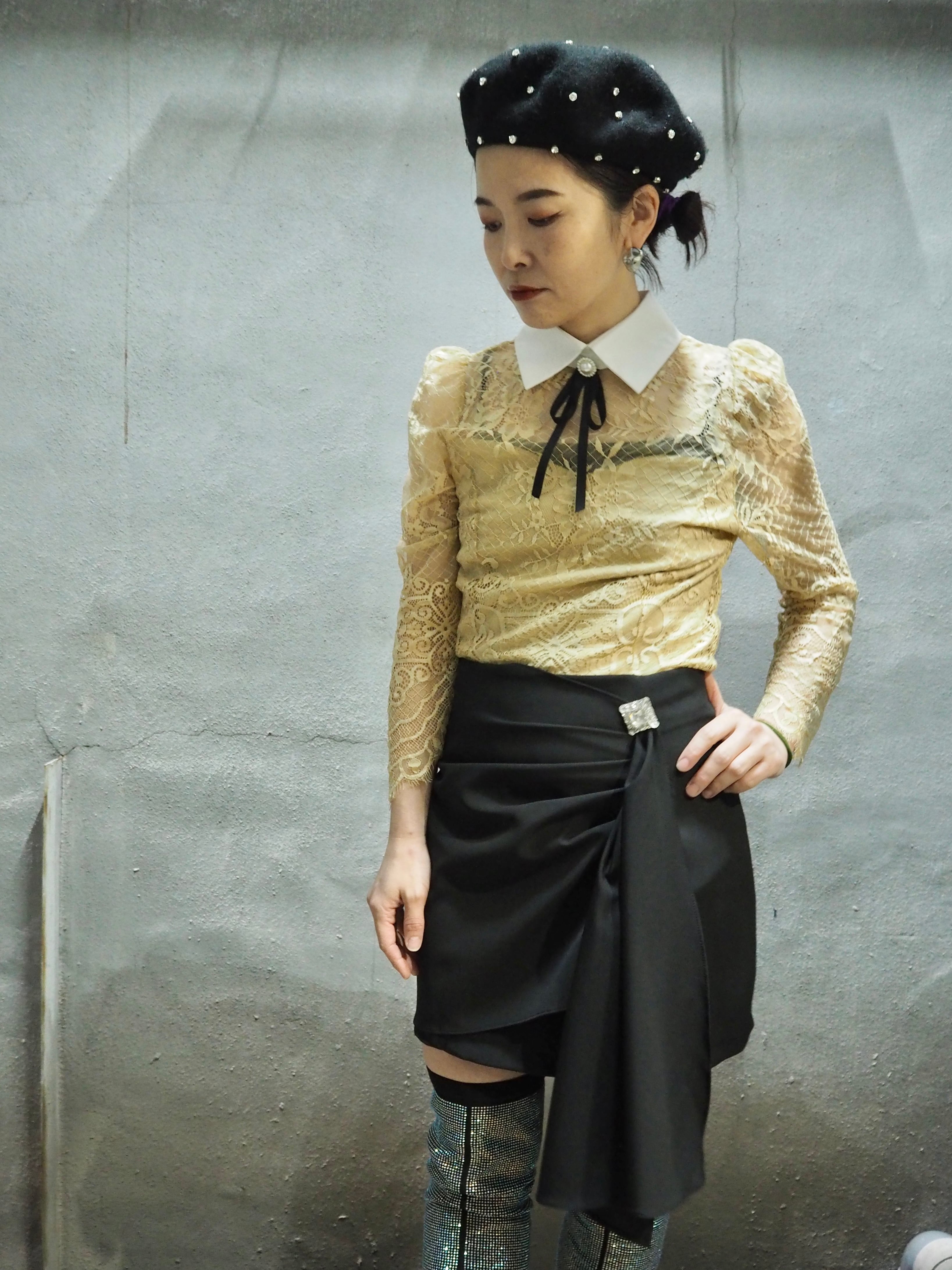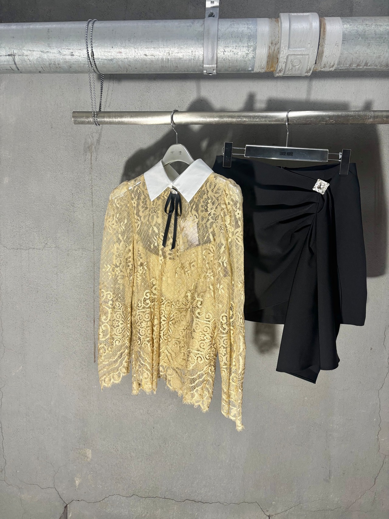 lace tops × drape design mini skirt 2P set up セットアップ 2点セット レース トップス ミニスカート スカート ドレープ 着回し