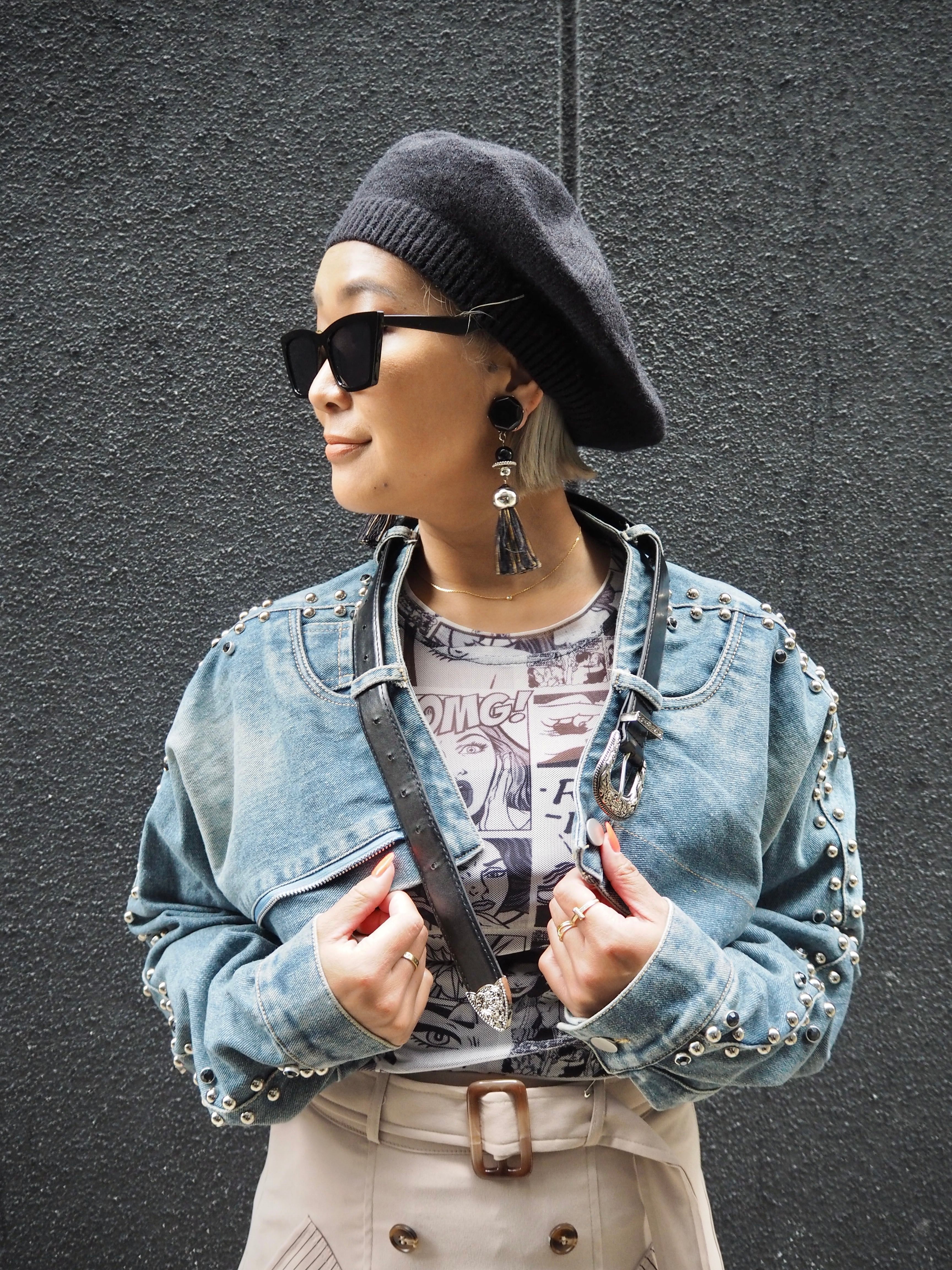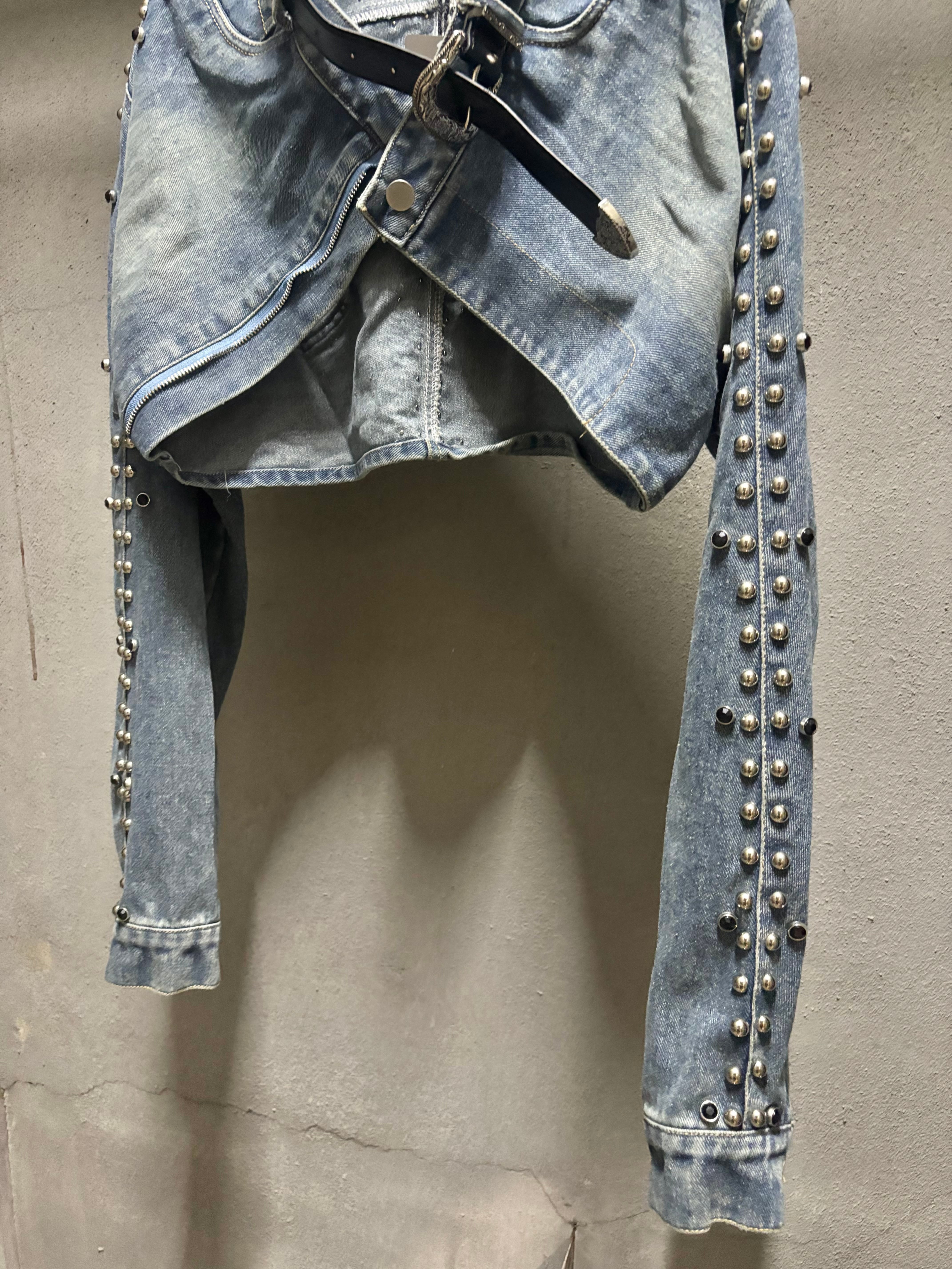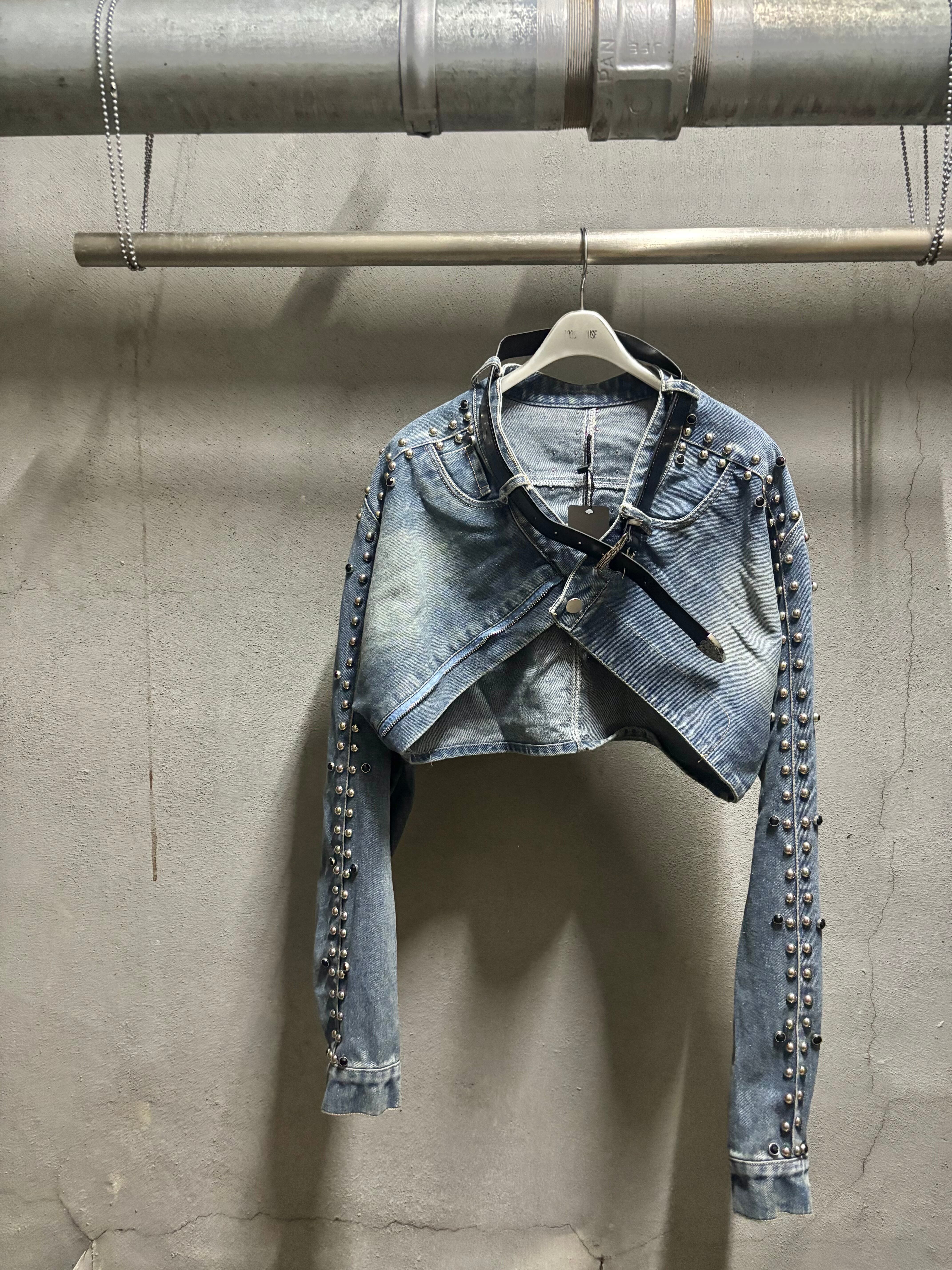 belt neck design denim jacket ジャケット デニム スタッズ ベルト ショート丈 個性的