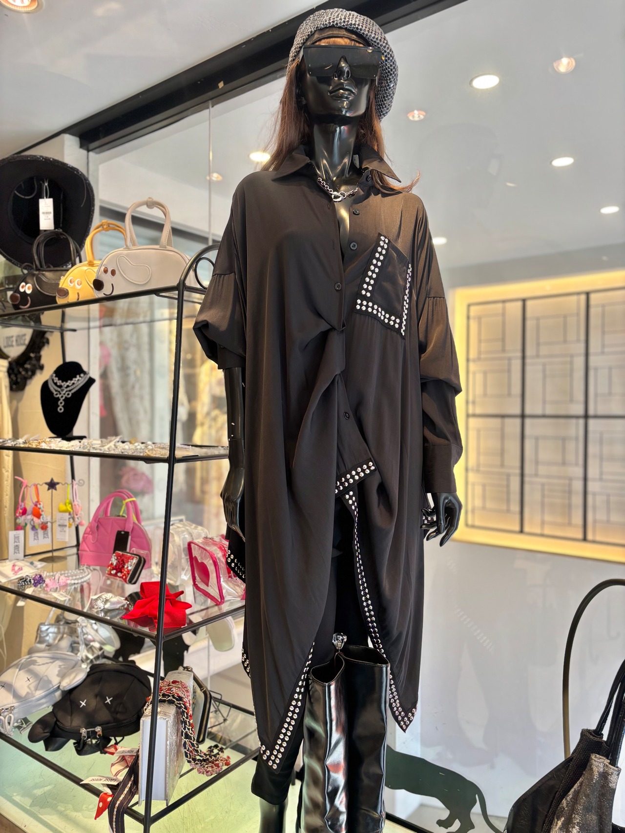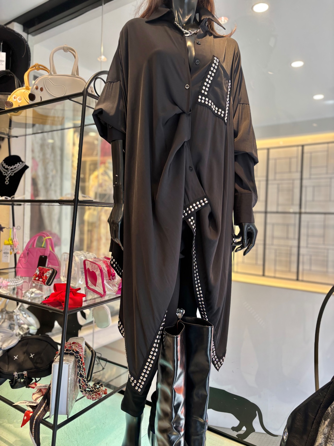 silver parts × square design shirt tunic シャツ チュニック ハピス シルバー スクエア ブラック 黒
