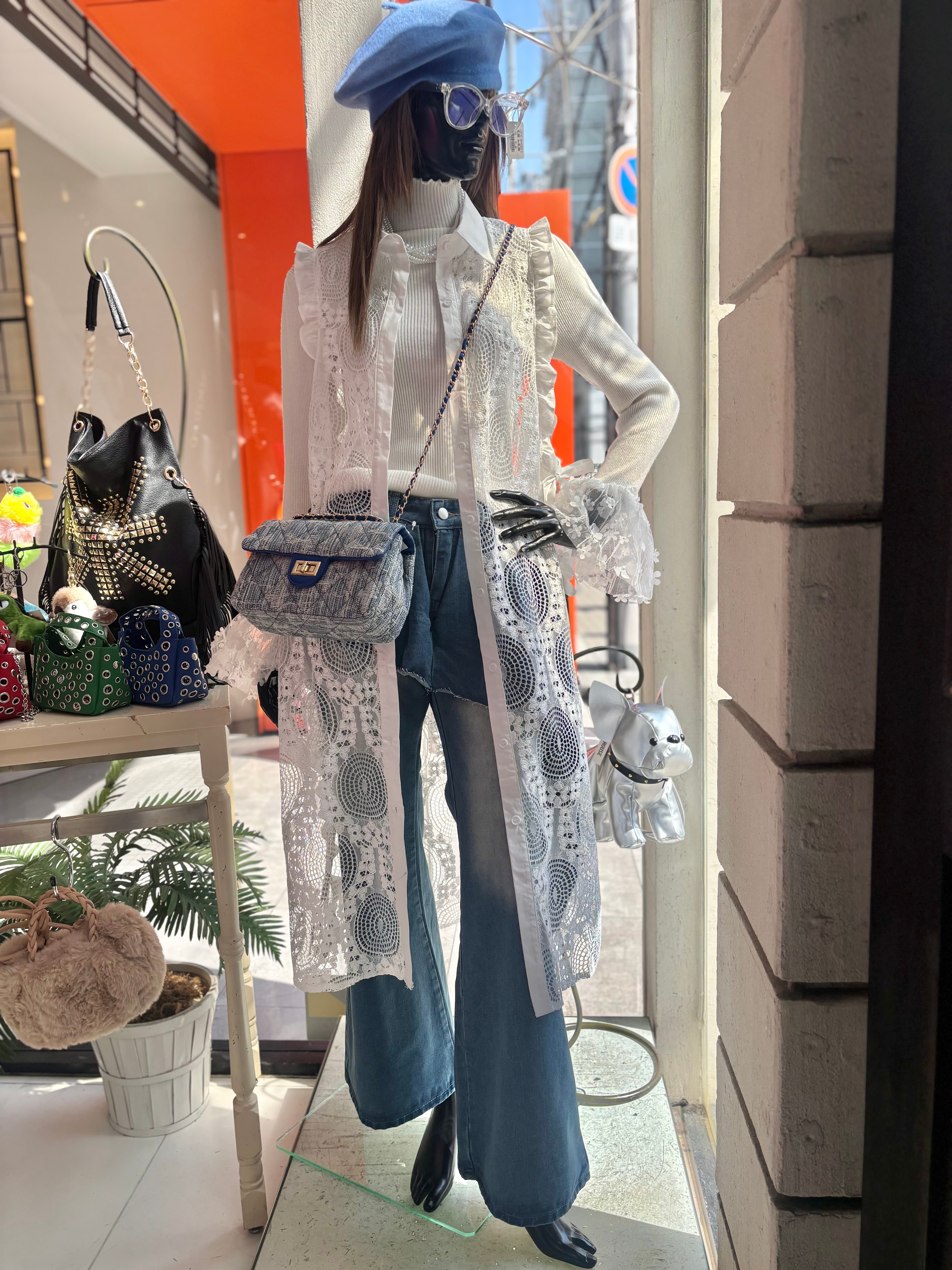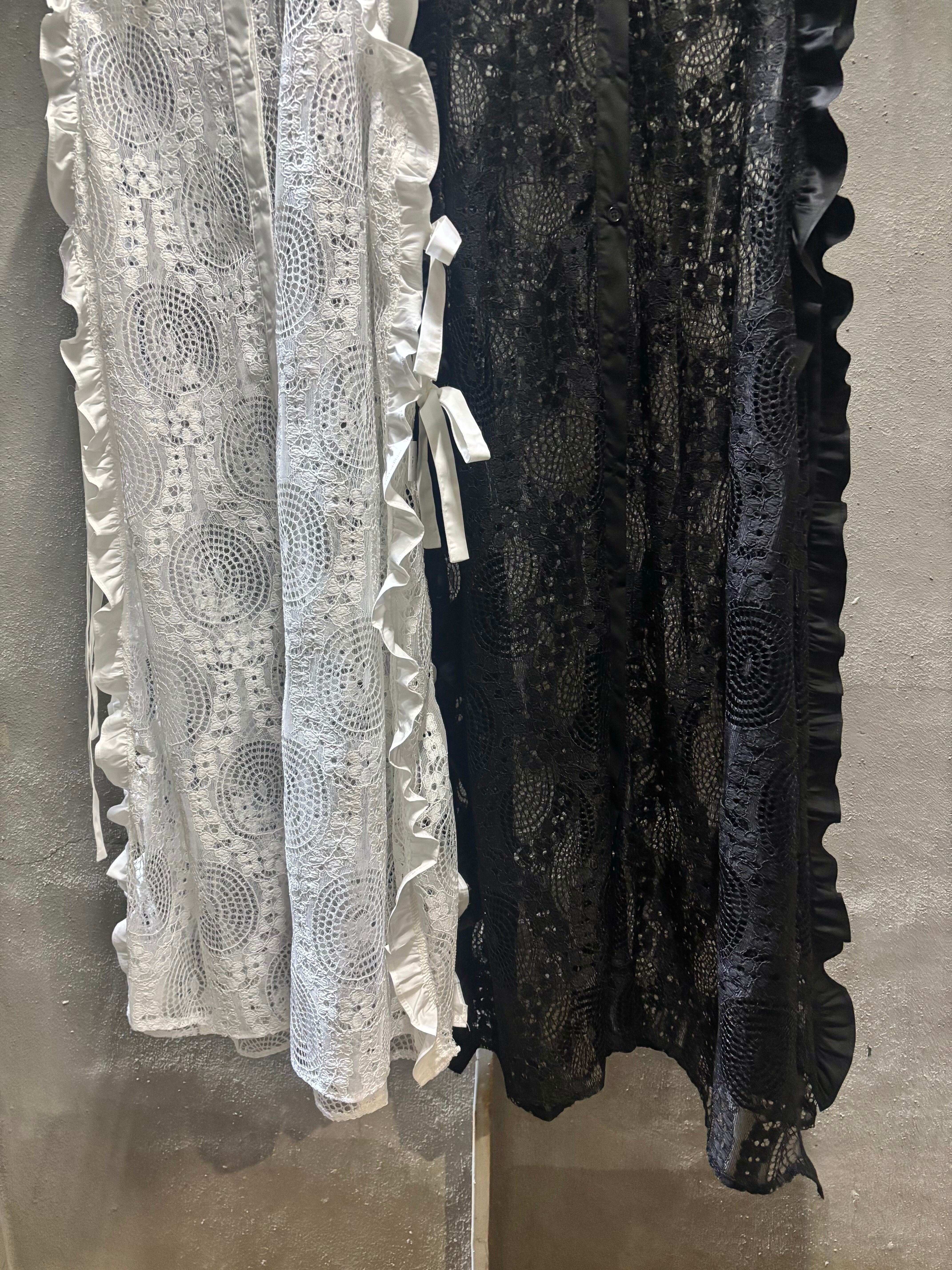 ジレ風のシルエットが特徴でレースやフリルが施されたエレガントなデザインが際立ちます♡