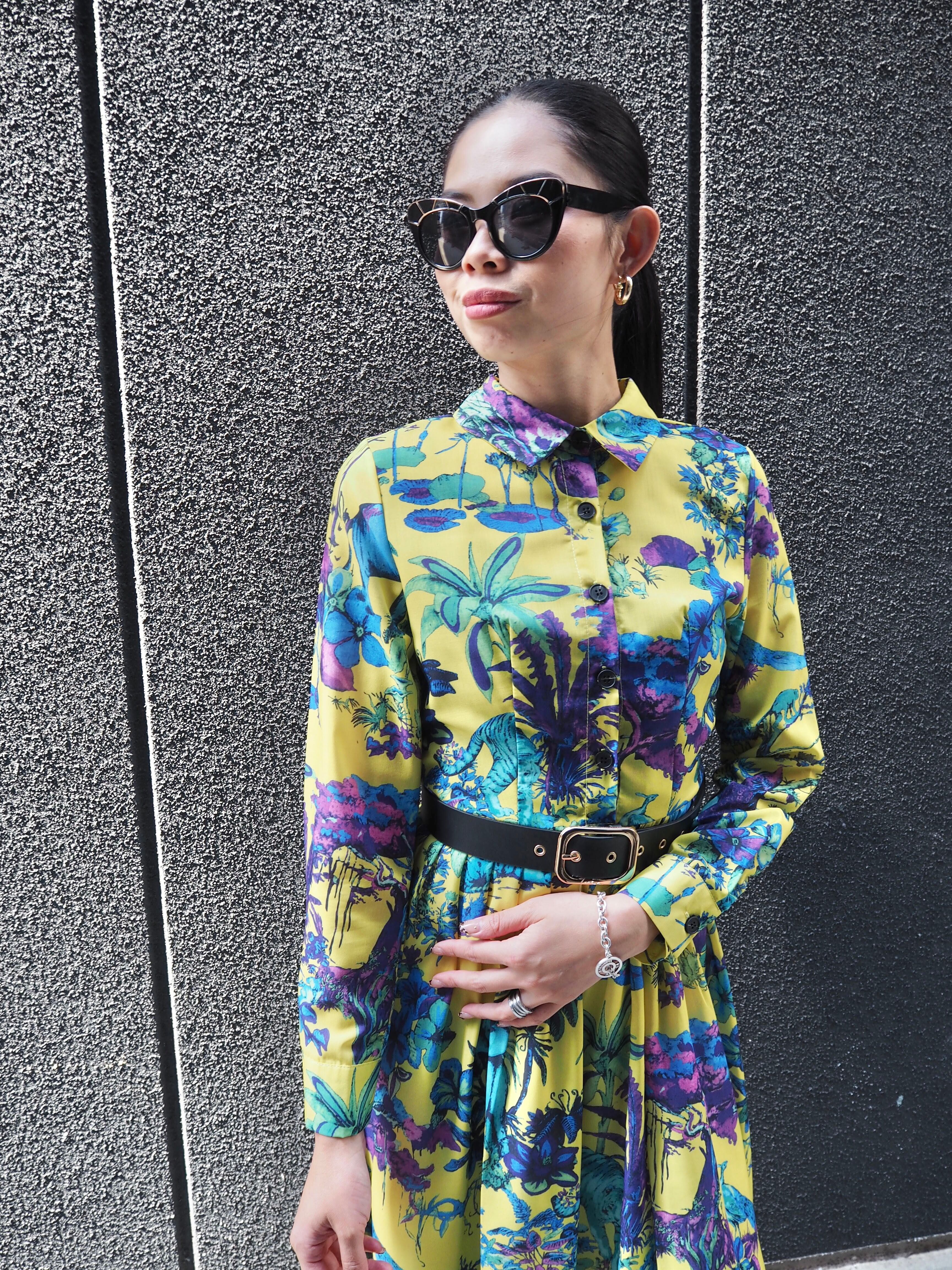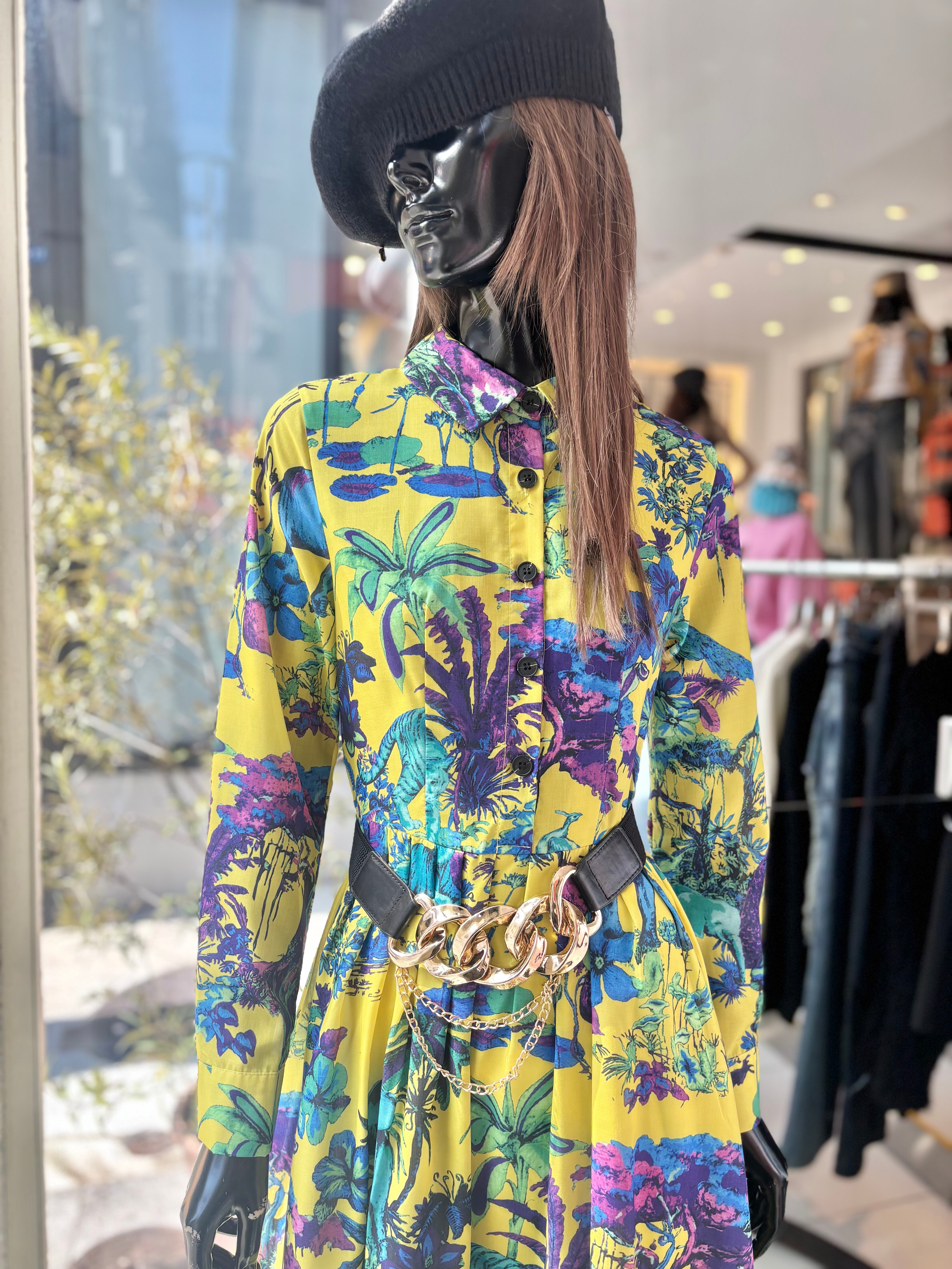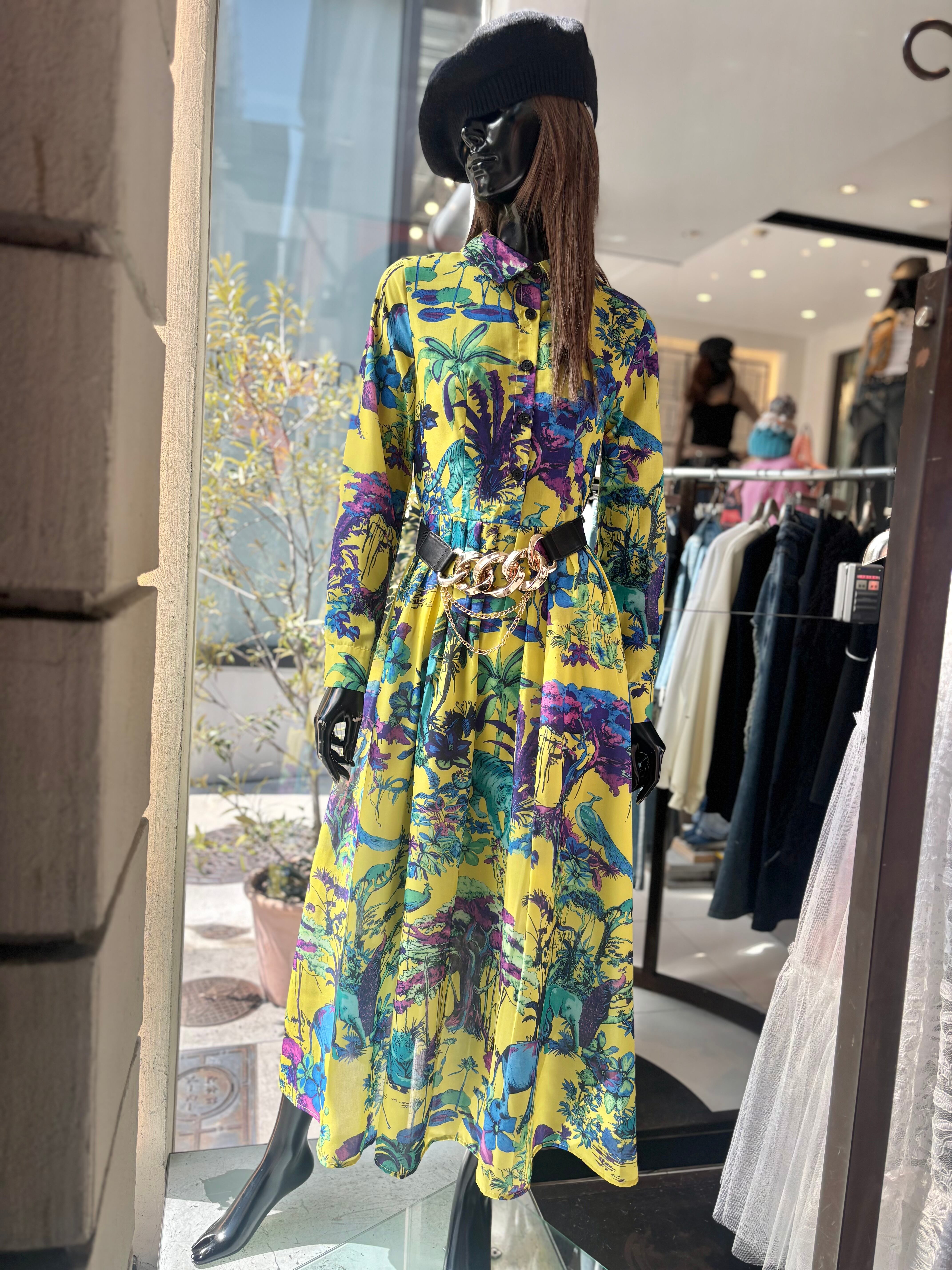 jungle print long one-piece ワンピース 柄ワンピ 襟付き アニマル フラワー ボタニカル ジャングル ベルト付き