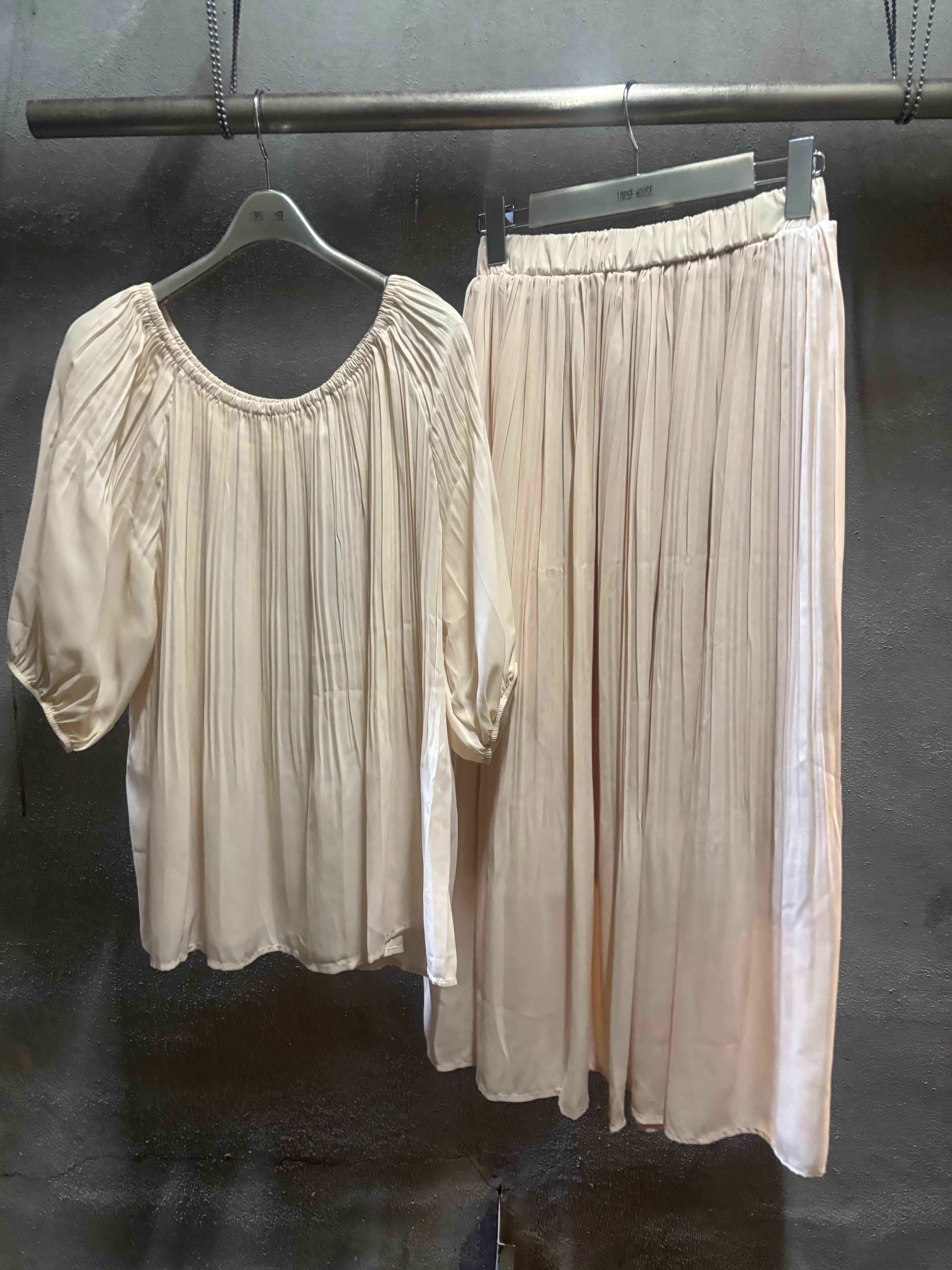 gradation pleats off shoulder tops × skirt set up 2P セットアップ トップス オフショルダー スカート プリーツ シフォン