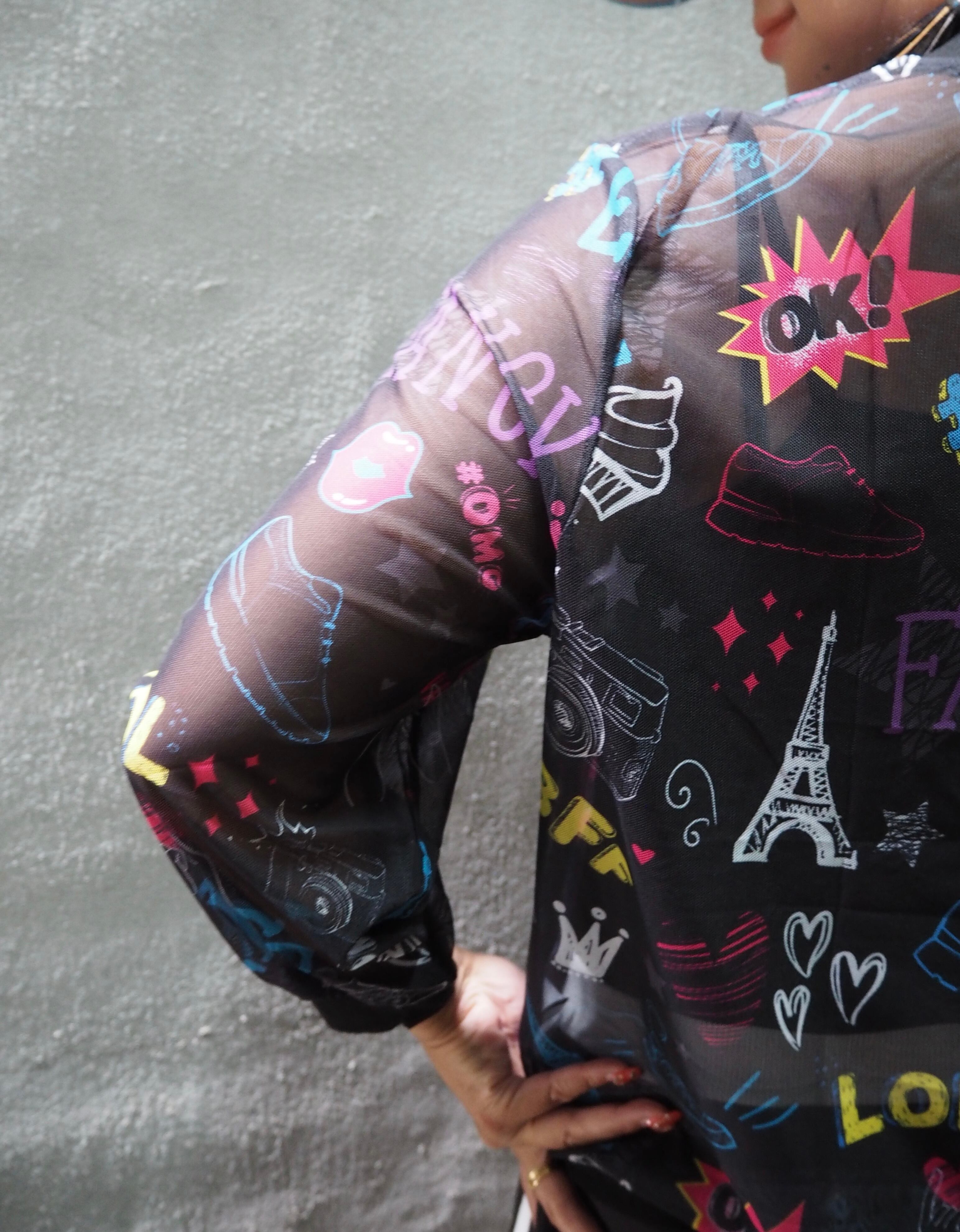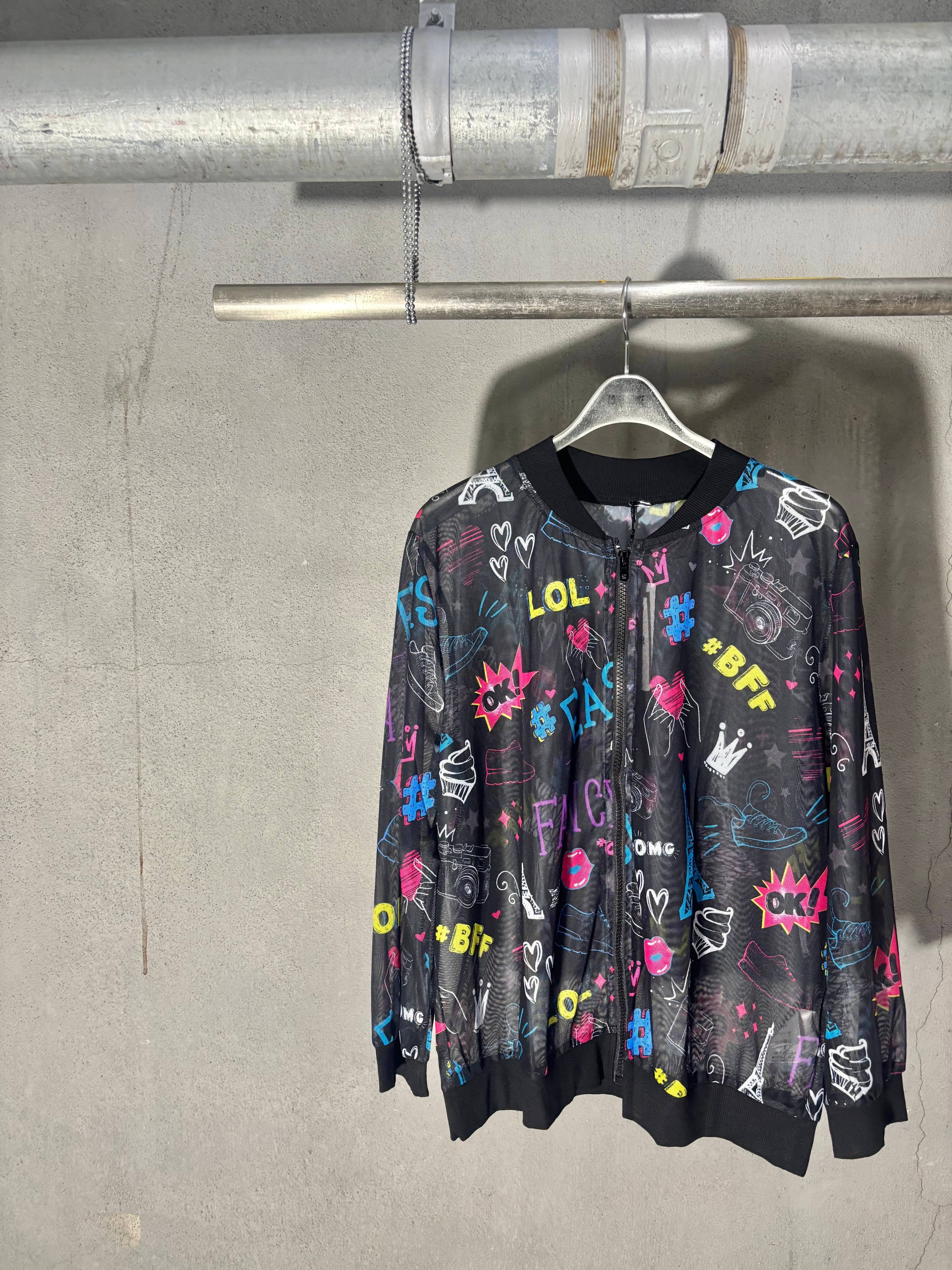stretch mesh net mix print blouson ブルゾン メッシュ ネット プリント シースルー 羽織り