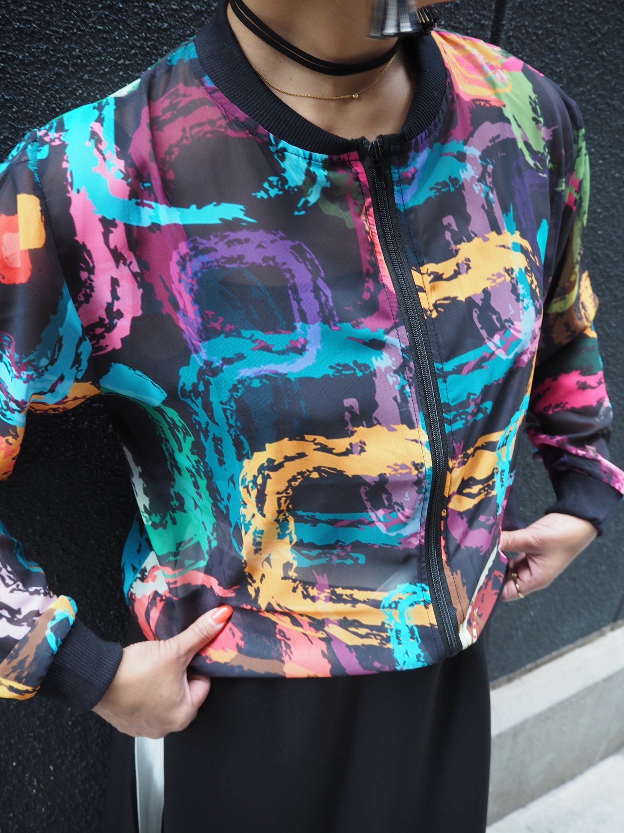 chiffon print blouson ブルゾン シフォン プリント 羽織り