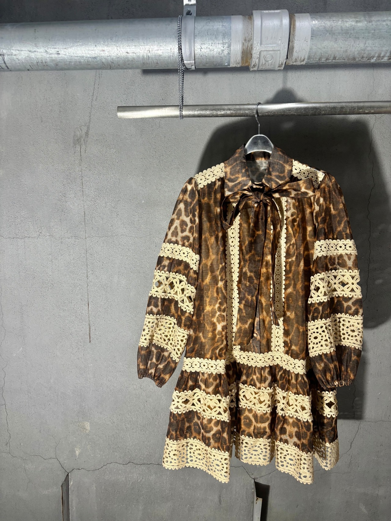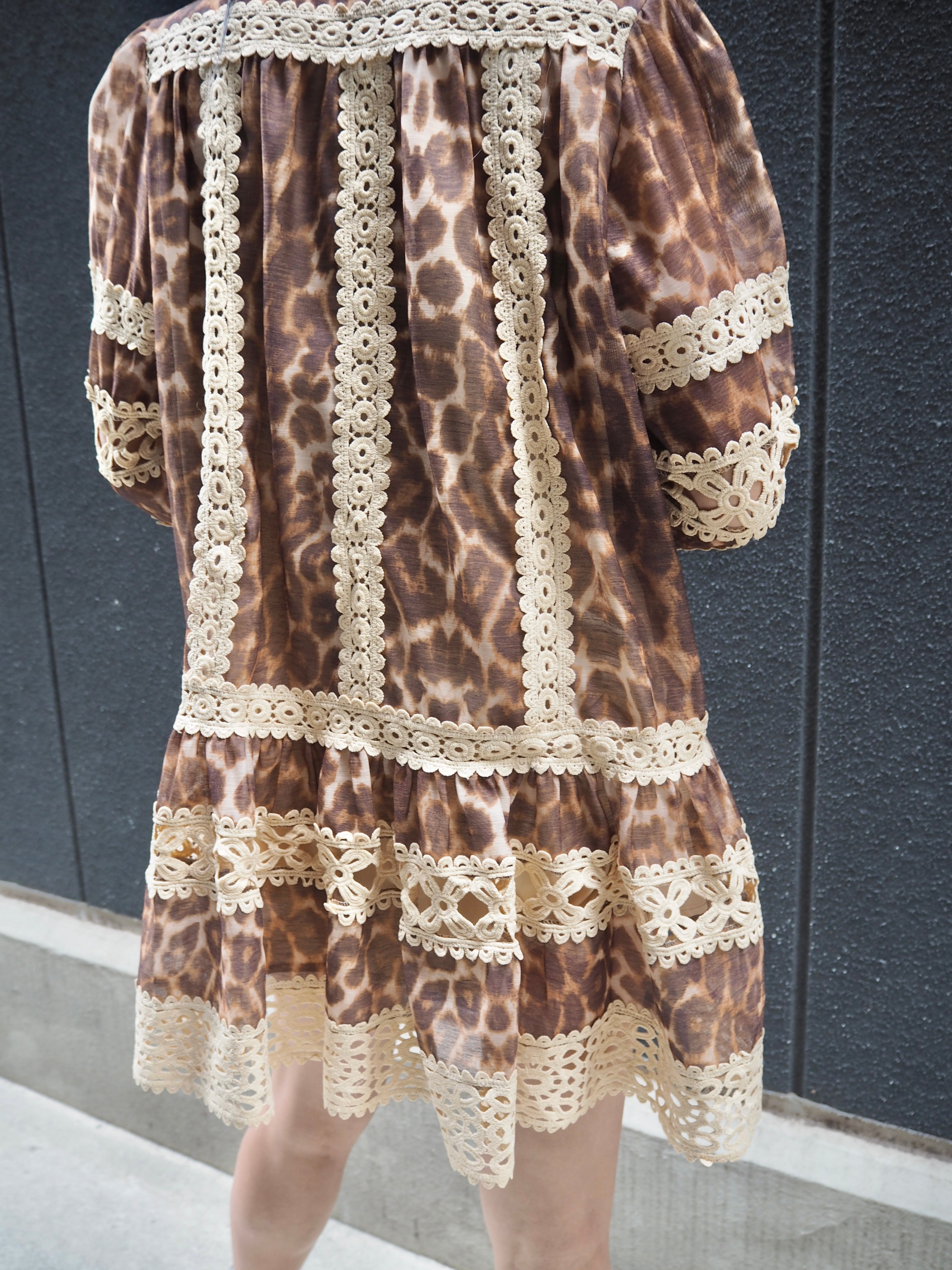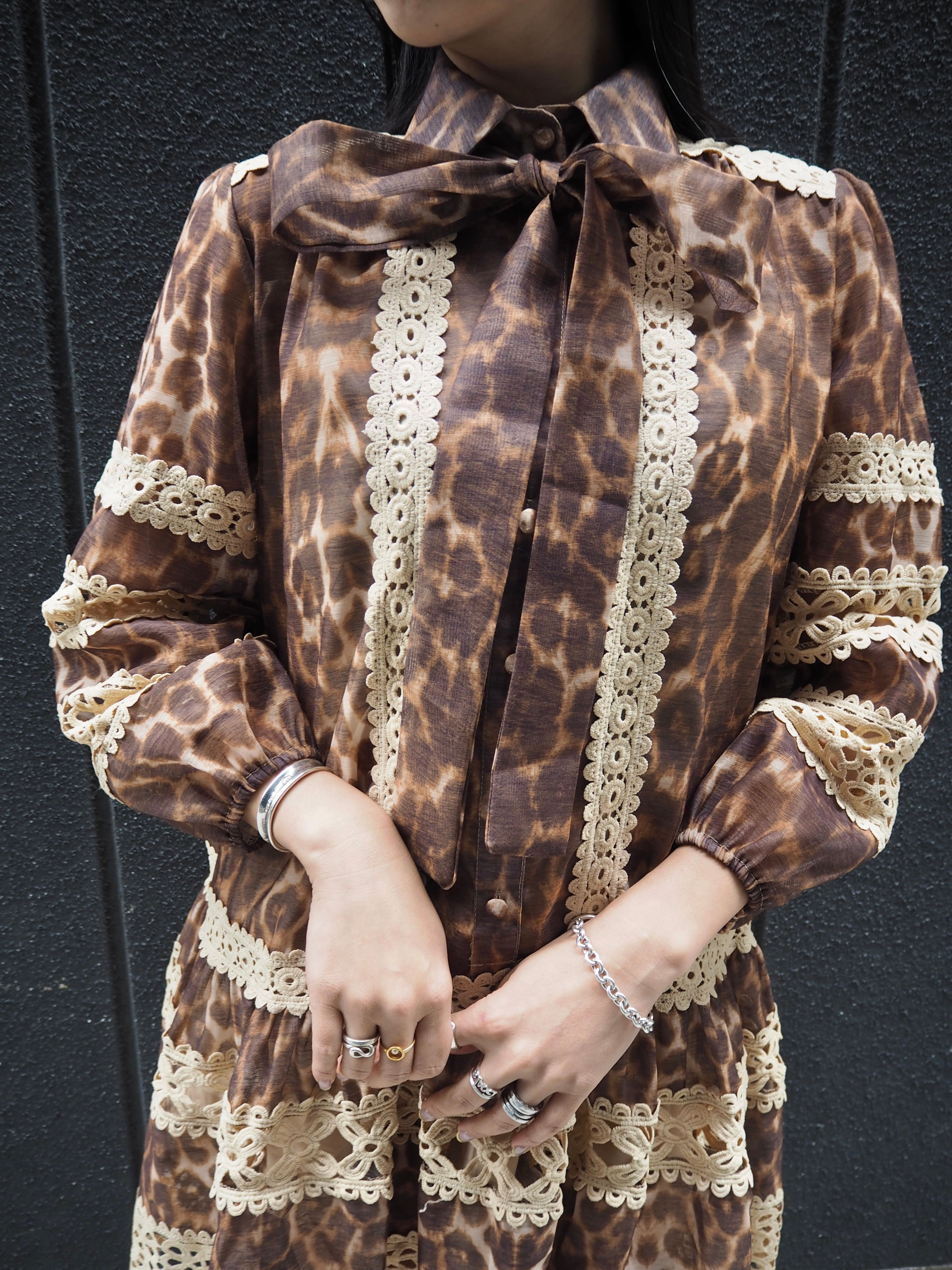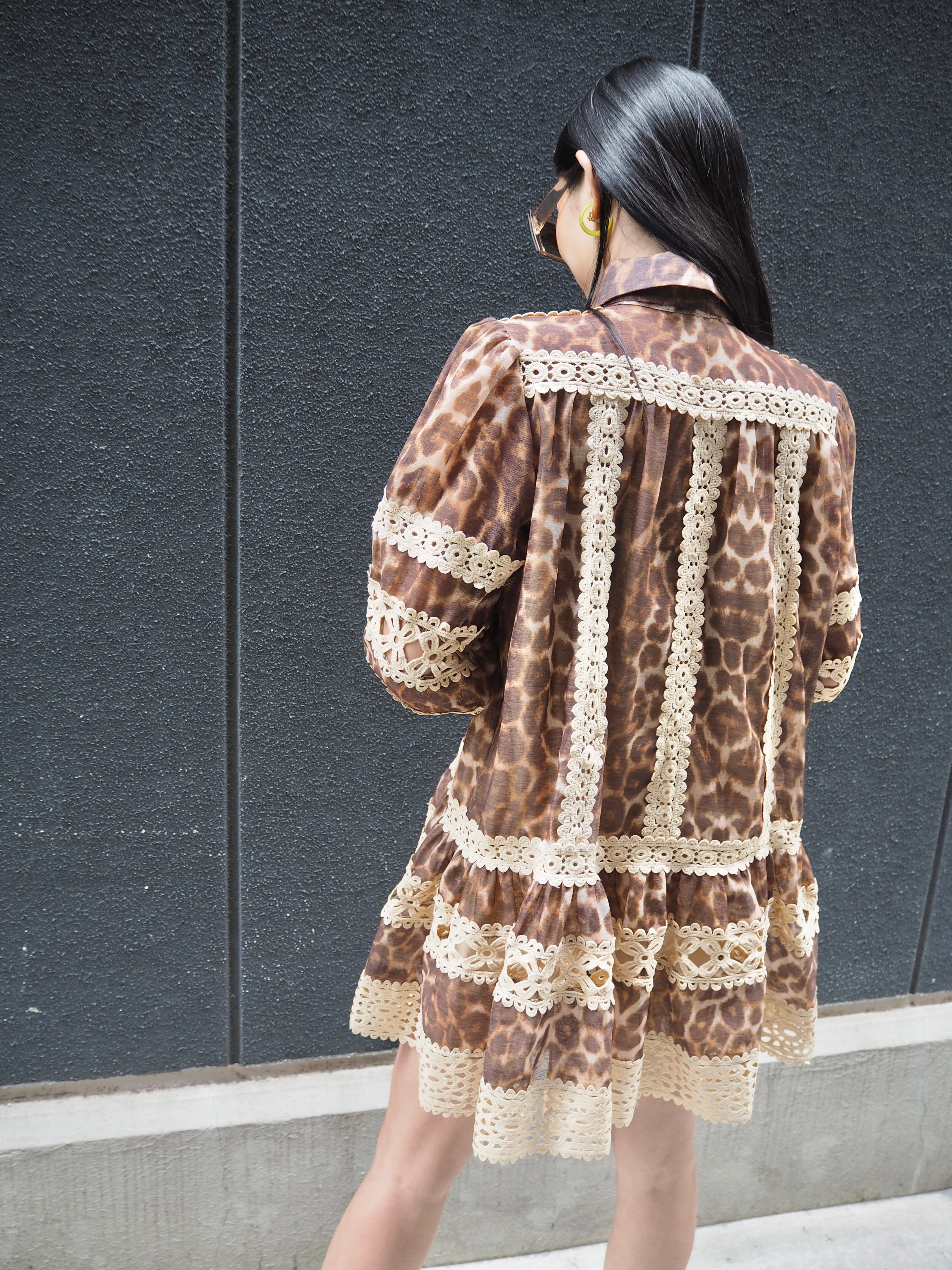 leopard × lace change design mini one-piece ワンピース ミニワンピ レオパード 豹柄 ひょう レース ボウタイ リボン