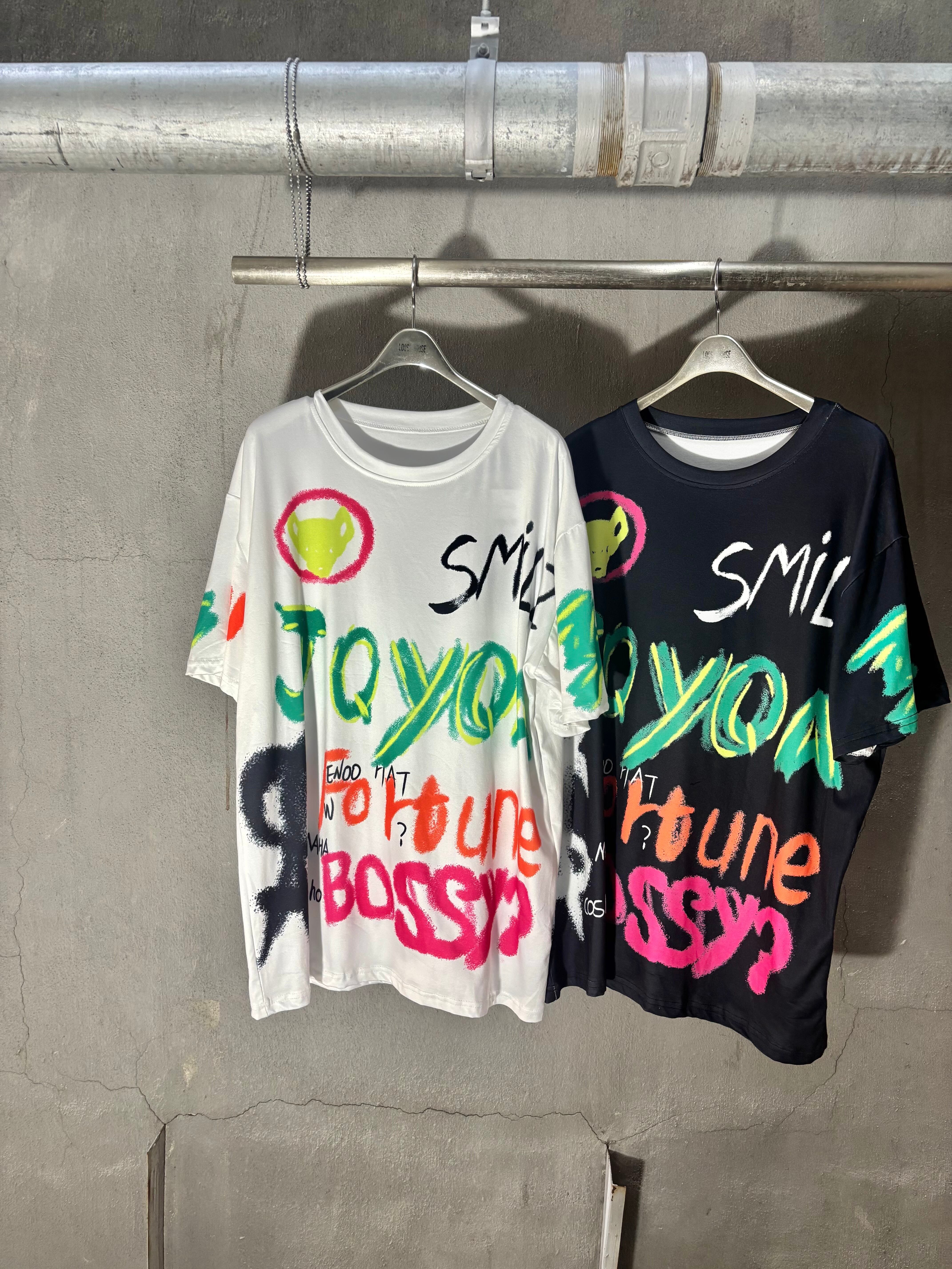 soft ester colorful text print T-shirt Tシャツ トップス プリント カラフル エステル