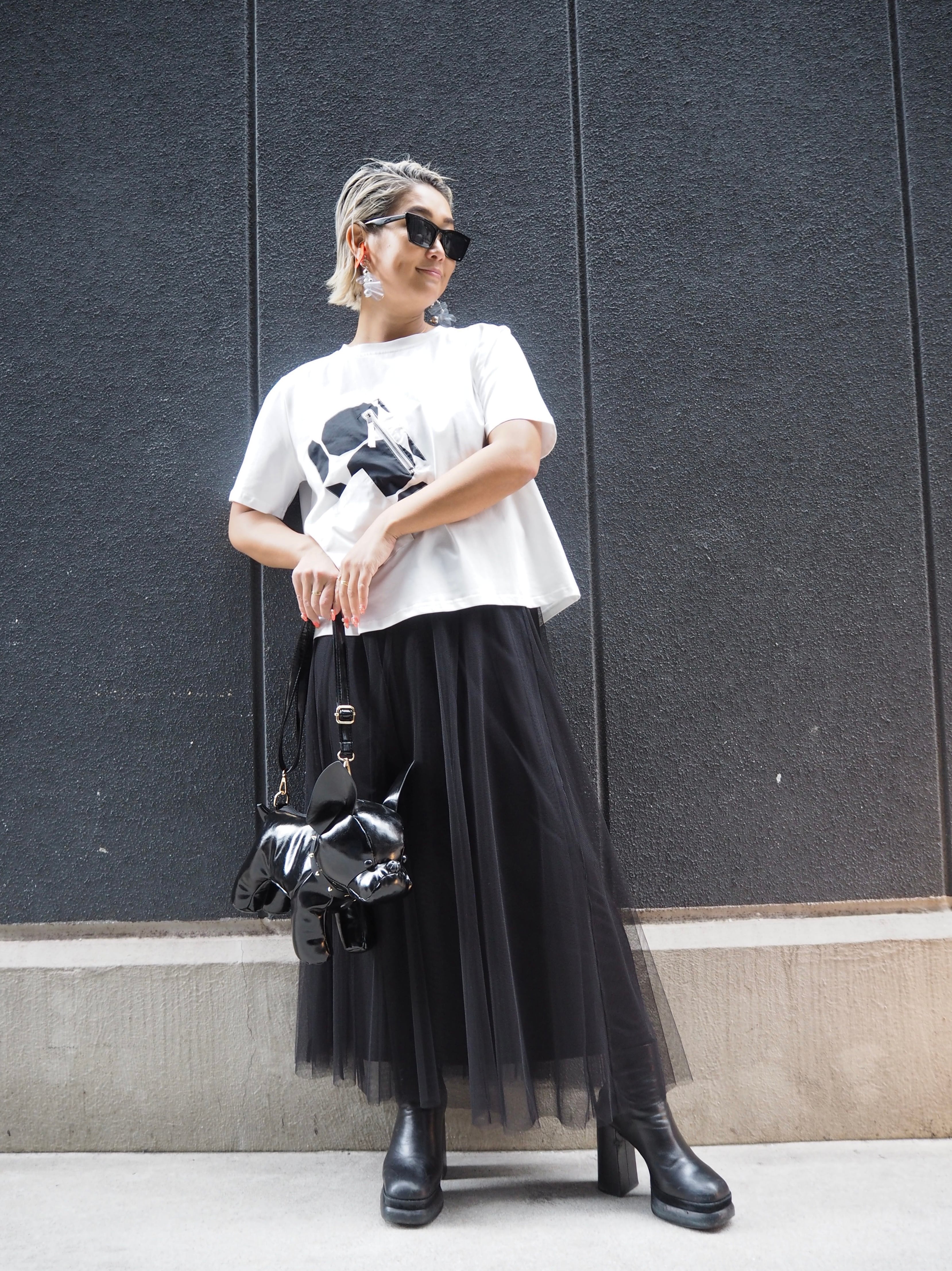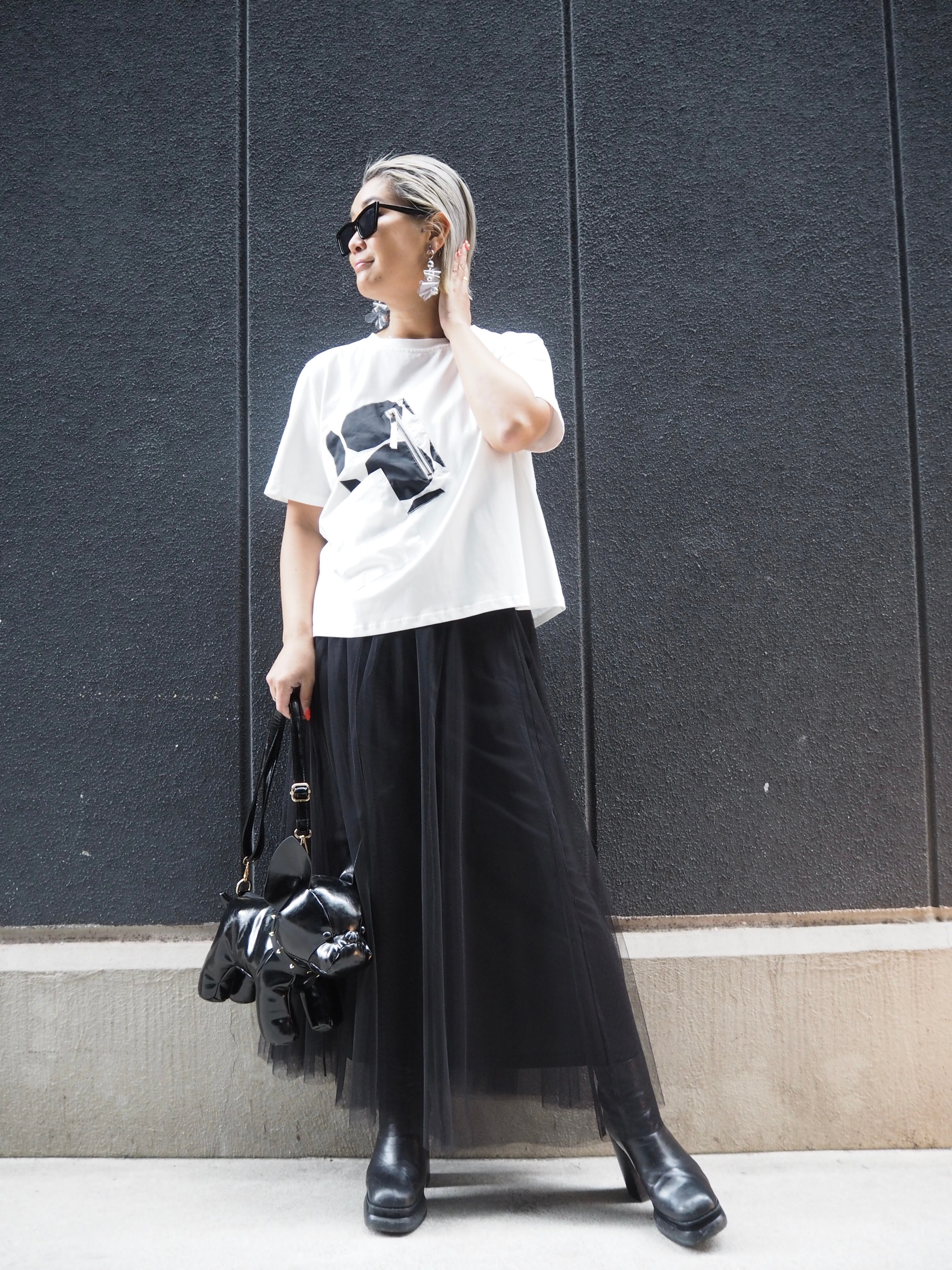 シンプルなボトムスと合わせるだけで、バランスの取れたスタイリングに仕上がります。