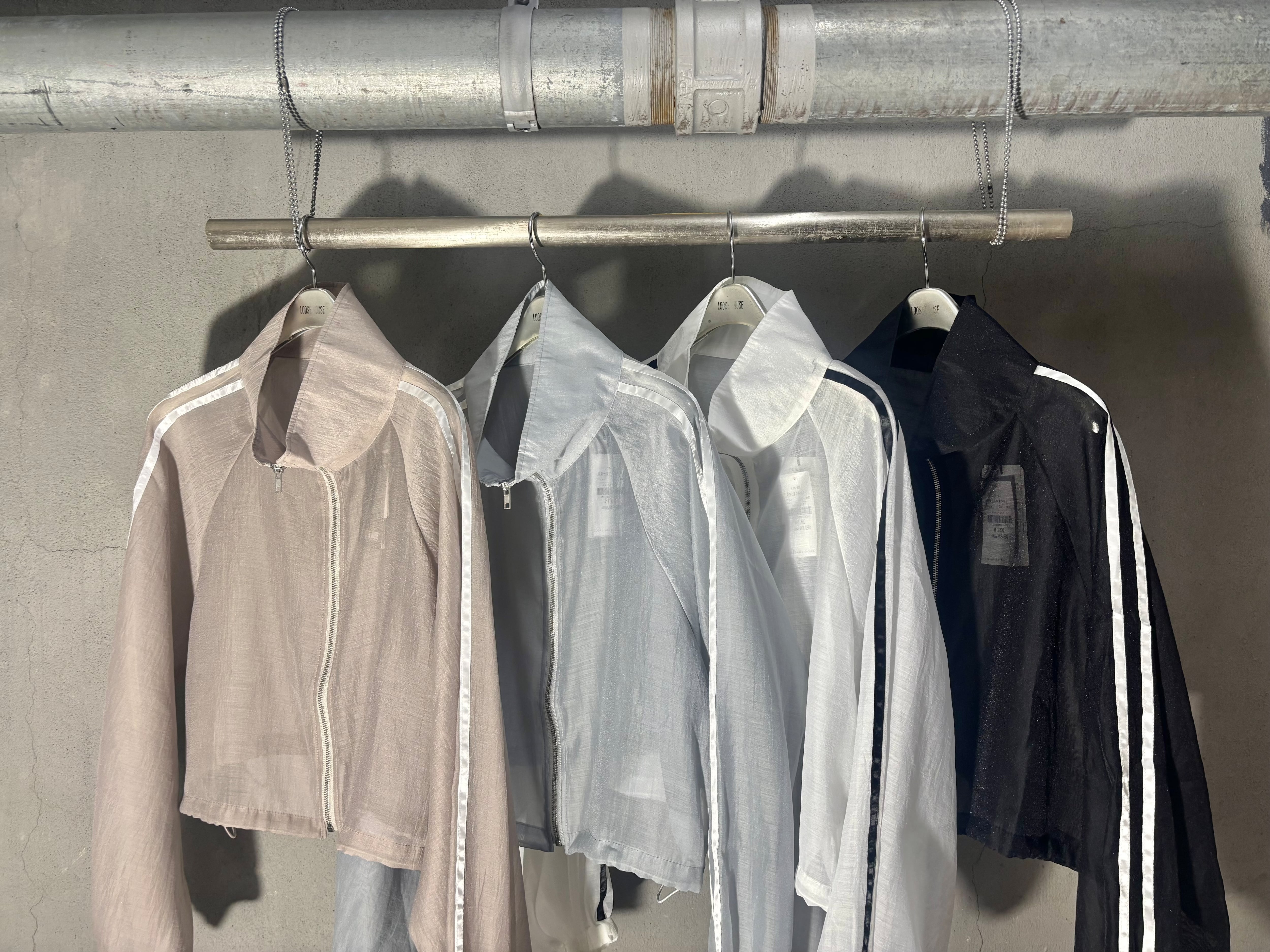 sheer 3line stand neck design blouson ブルゾン シアー ライン入り スタンドネック ジップアップ アウター