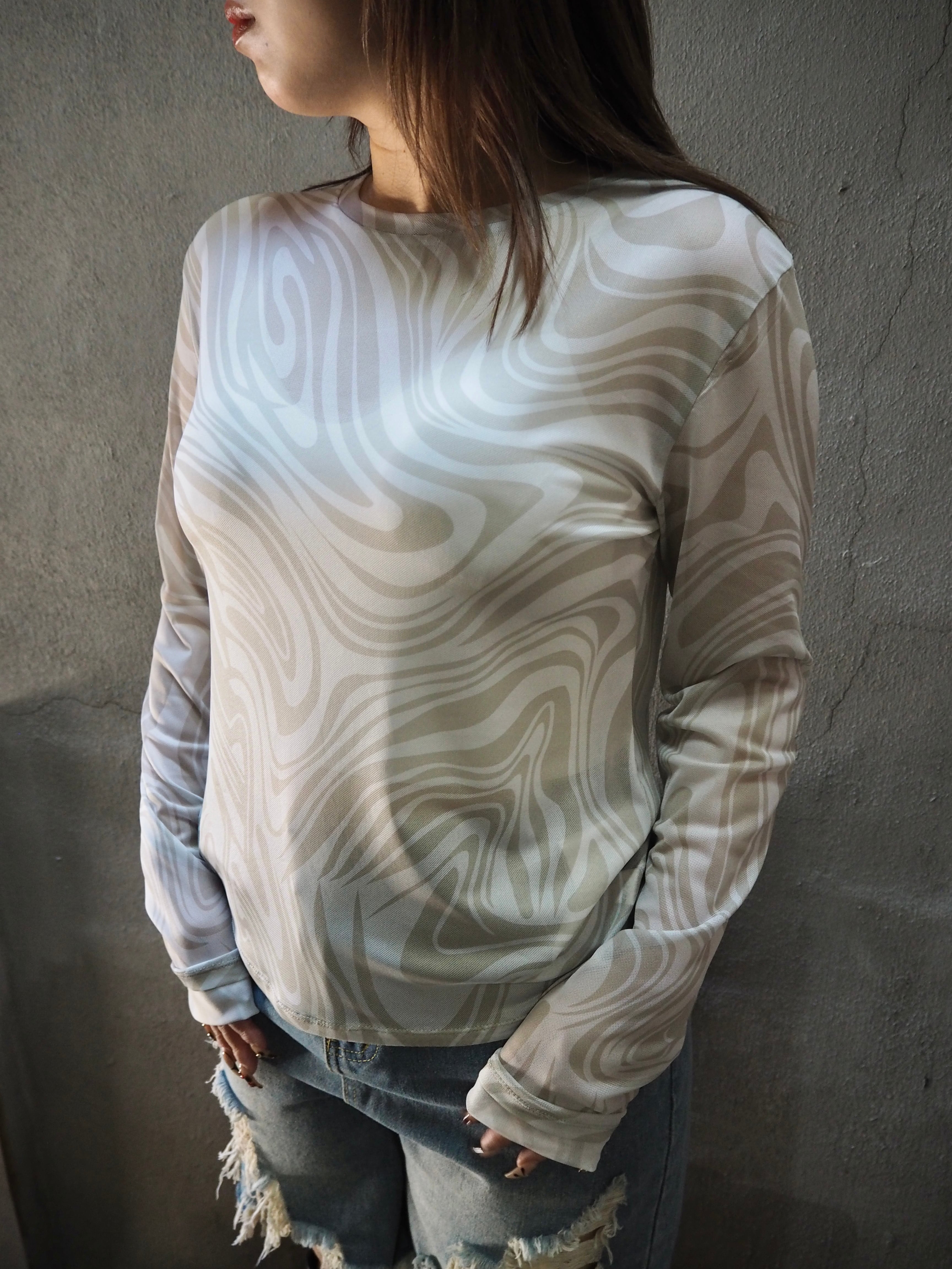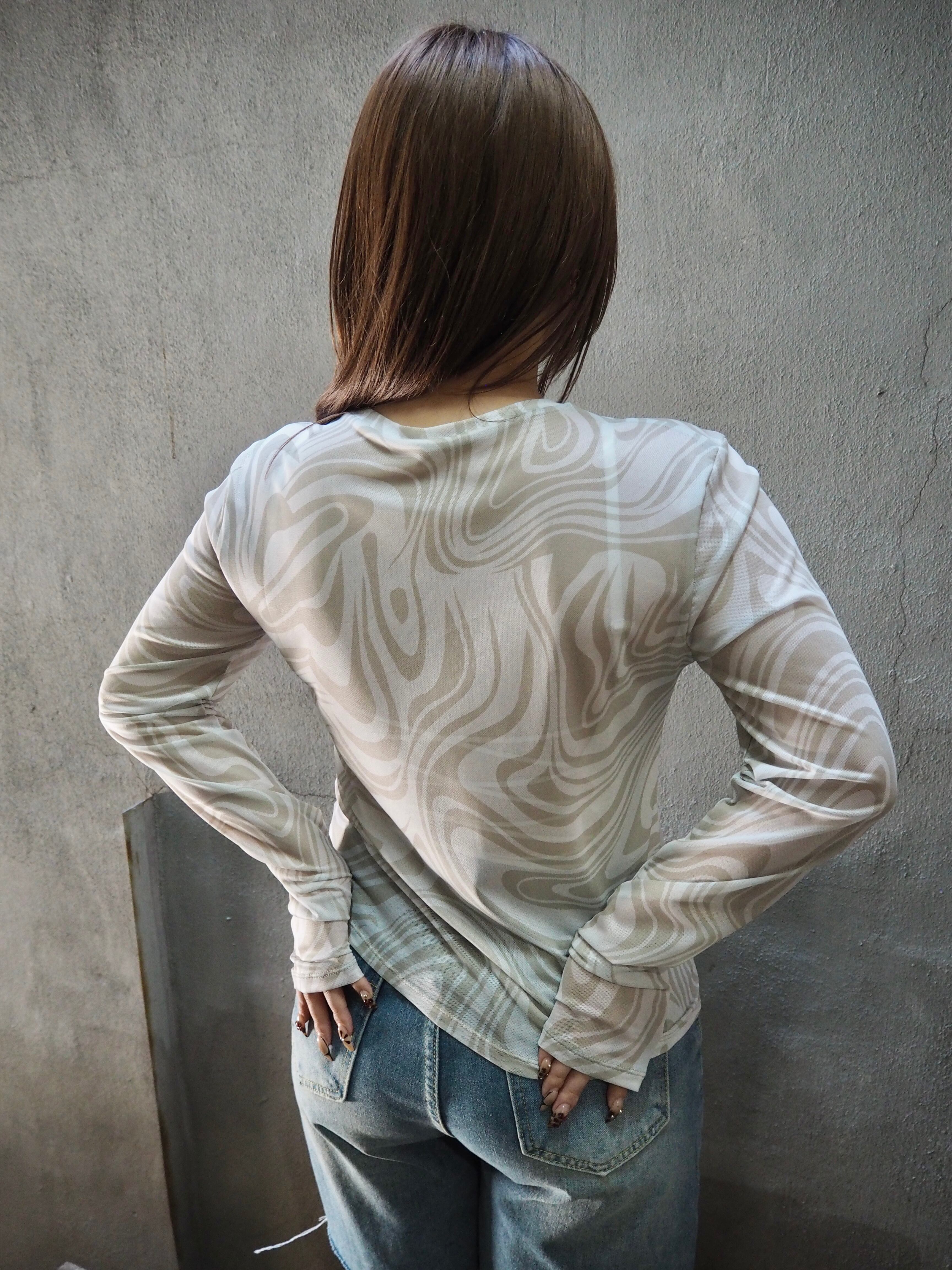 marble zebra print stretch mesh tops トップス メッシュ ストレッチ マーブル ゼブラ 重ね着