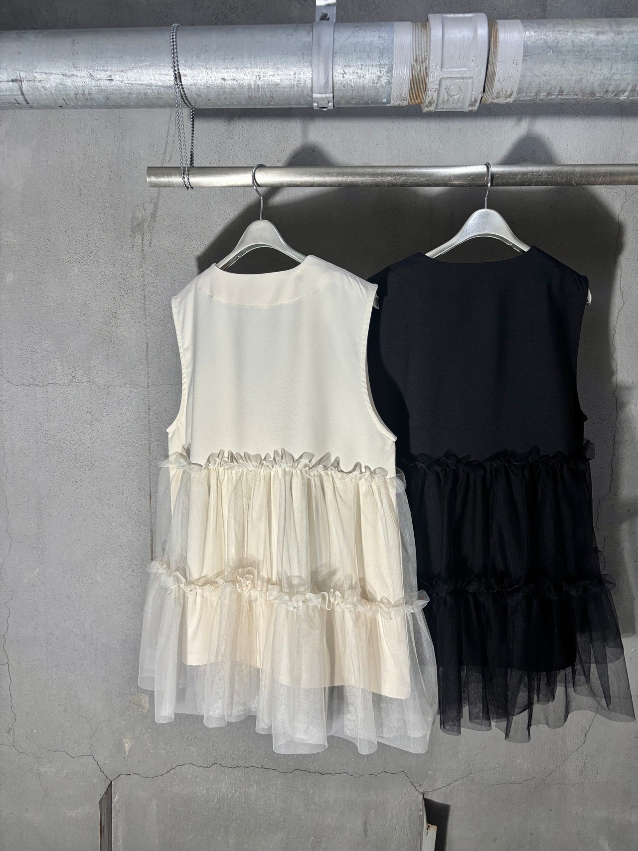 tulle cover A-line silhouette vest ジレ ベスト チュール カバー ティアード 重ね着