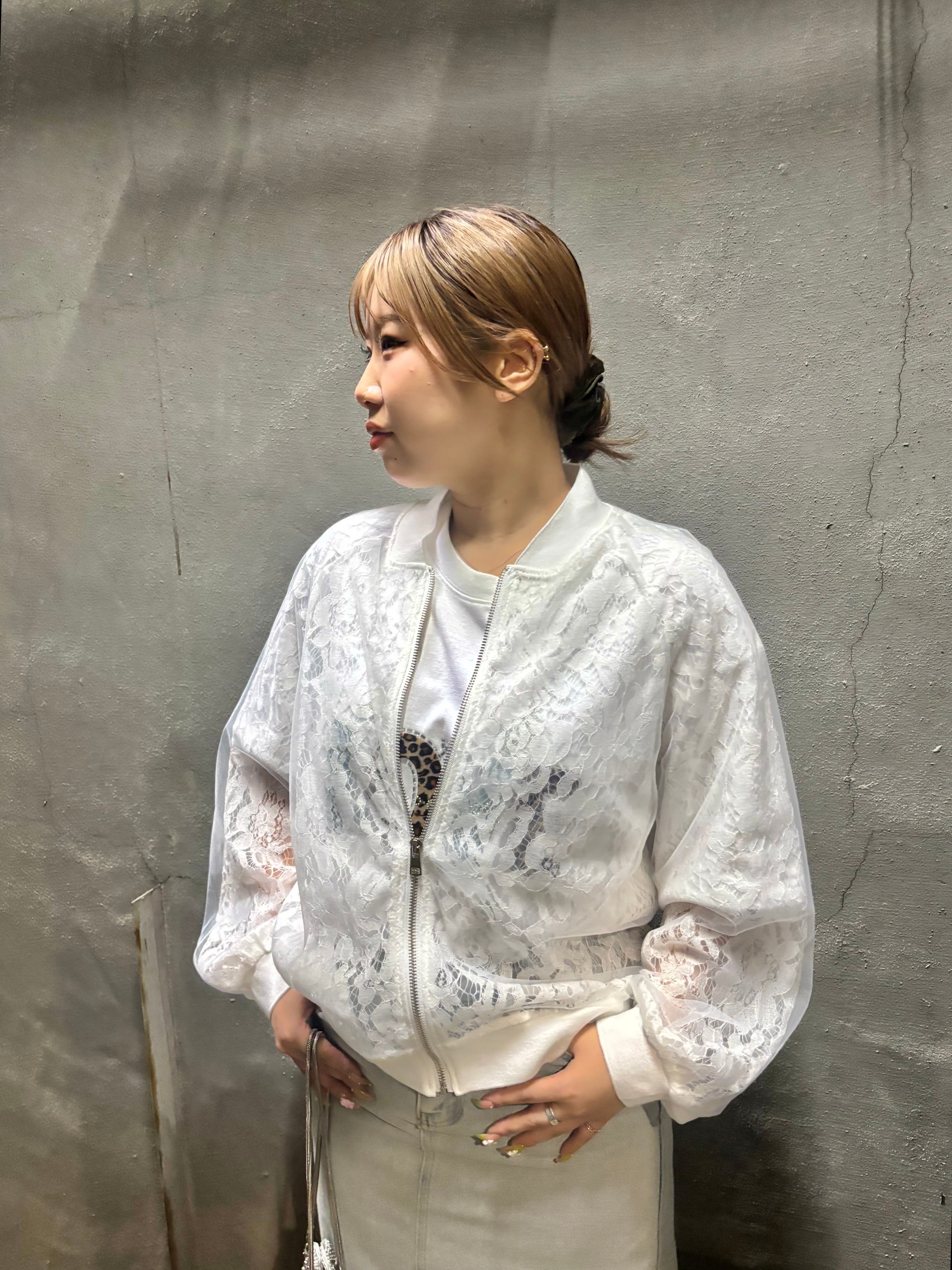 chiffon cover lace zip up blouson ブルゾン レース シフォン カバー ジップアップ