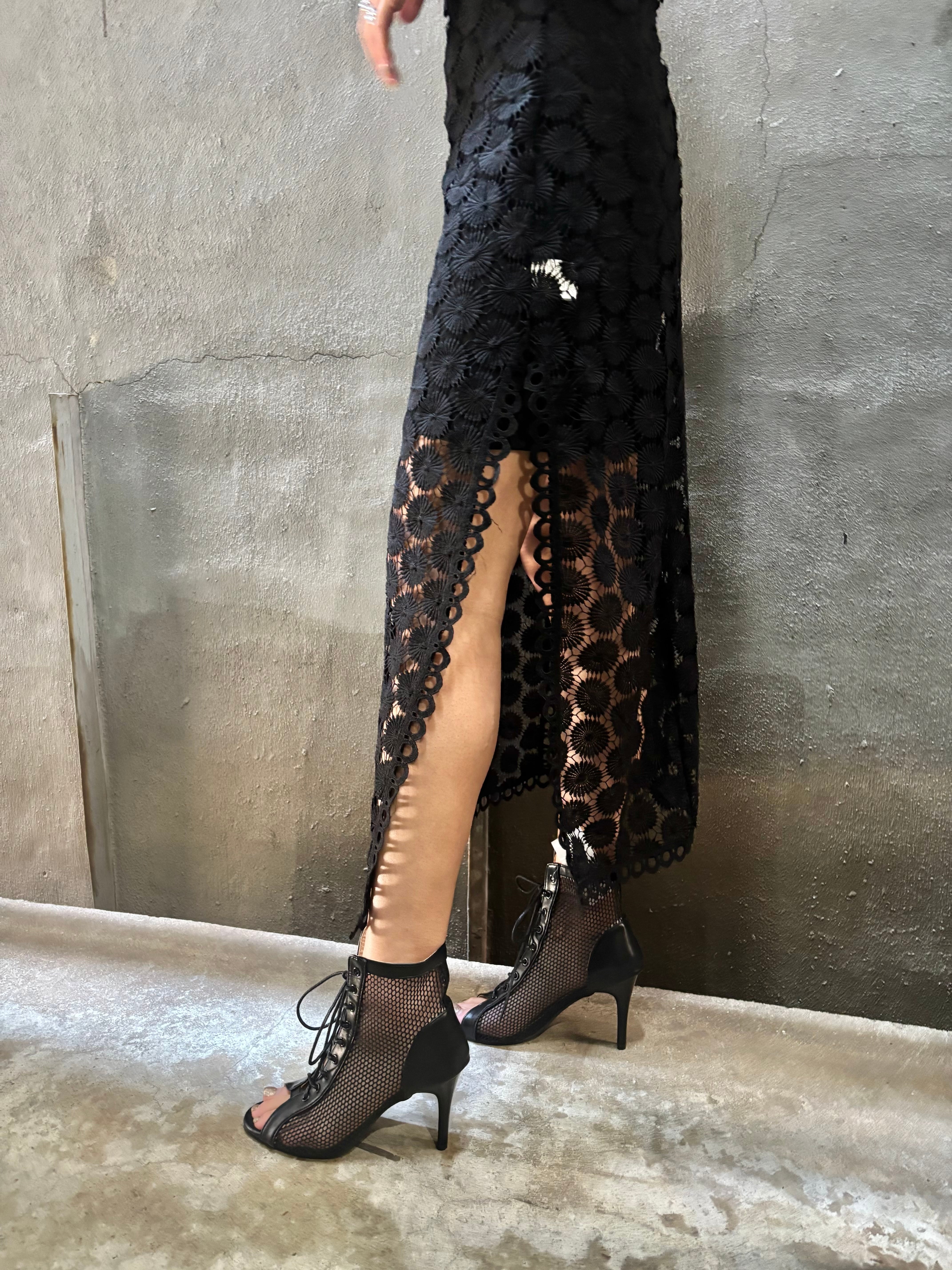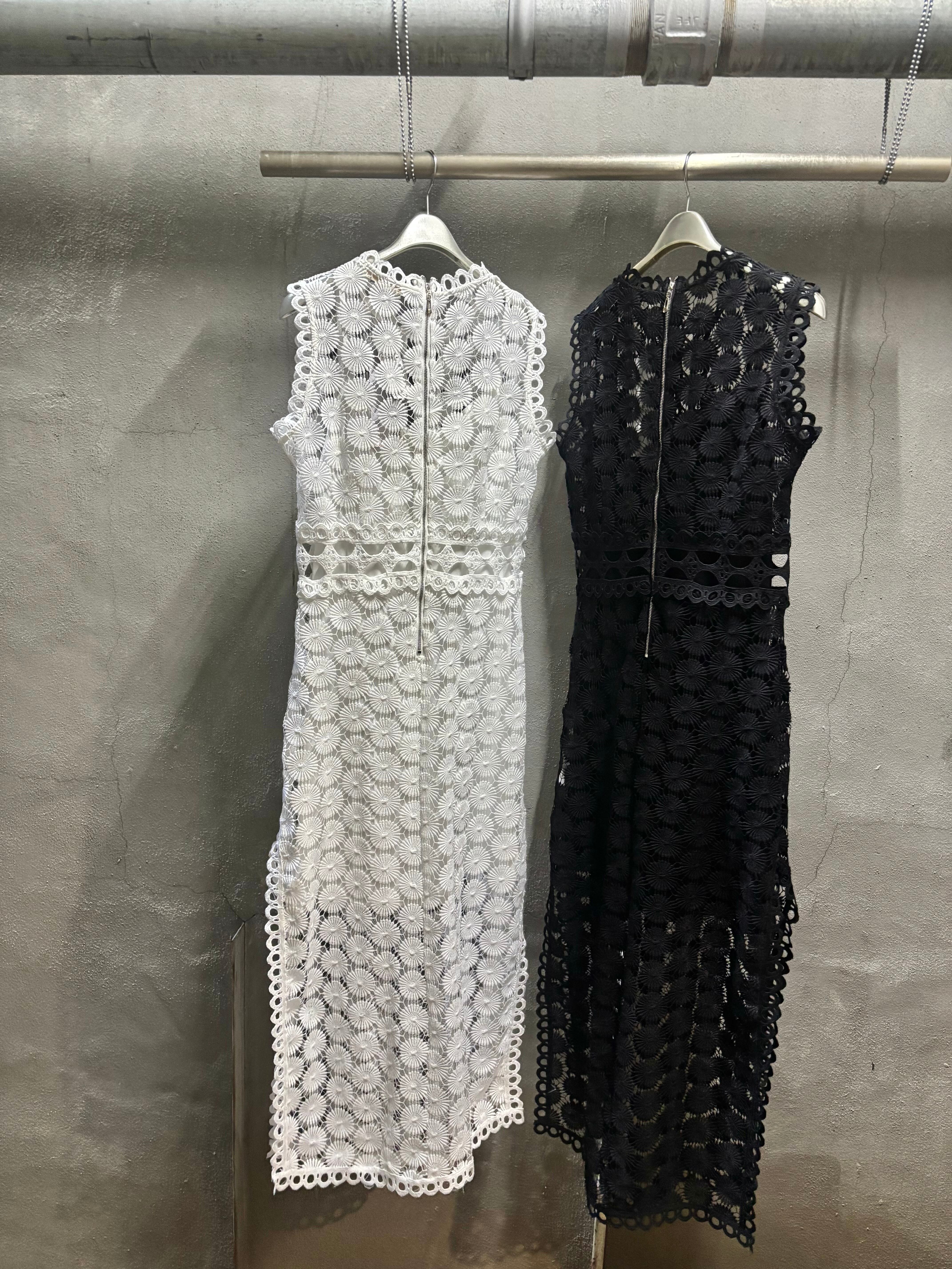 chemical lace sleeveless long one-piece ワンピース ロングワンピ ノースリーブ レース インナー キャミワンピ 2点セット ブラック 黒 ドレス