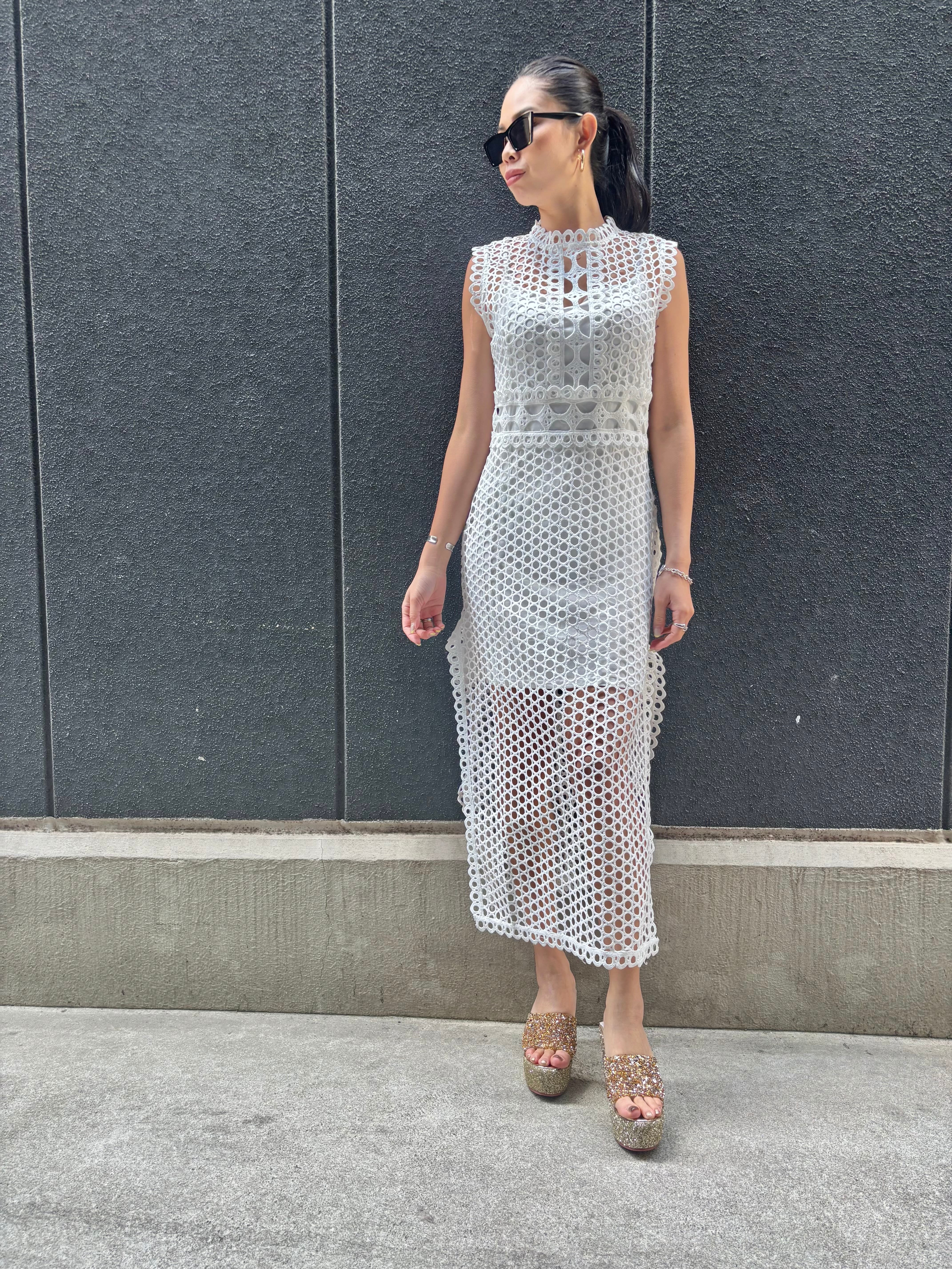 chemical lace sleeveless long one-piece ワンピース ロングワンピ ノースリーブ レース インナー キャミワンピ 2点セット ホワイト 白 ドレス
