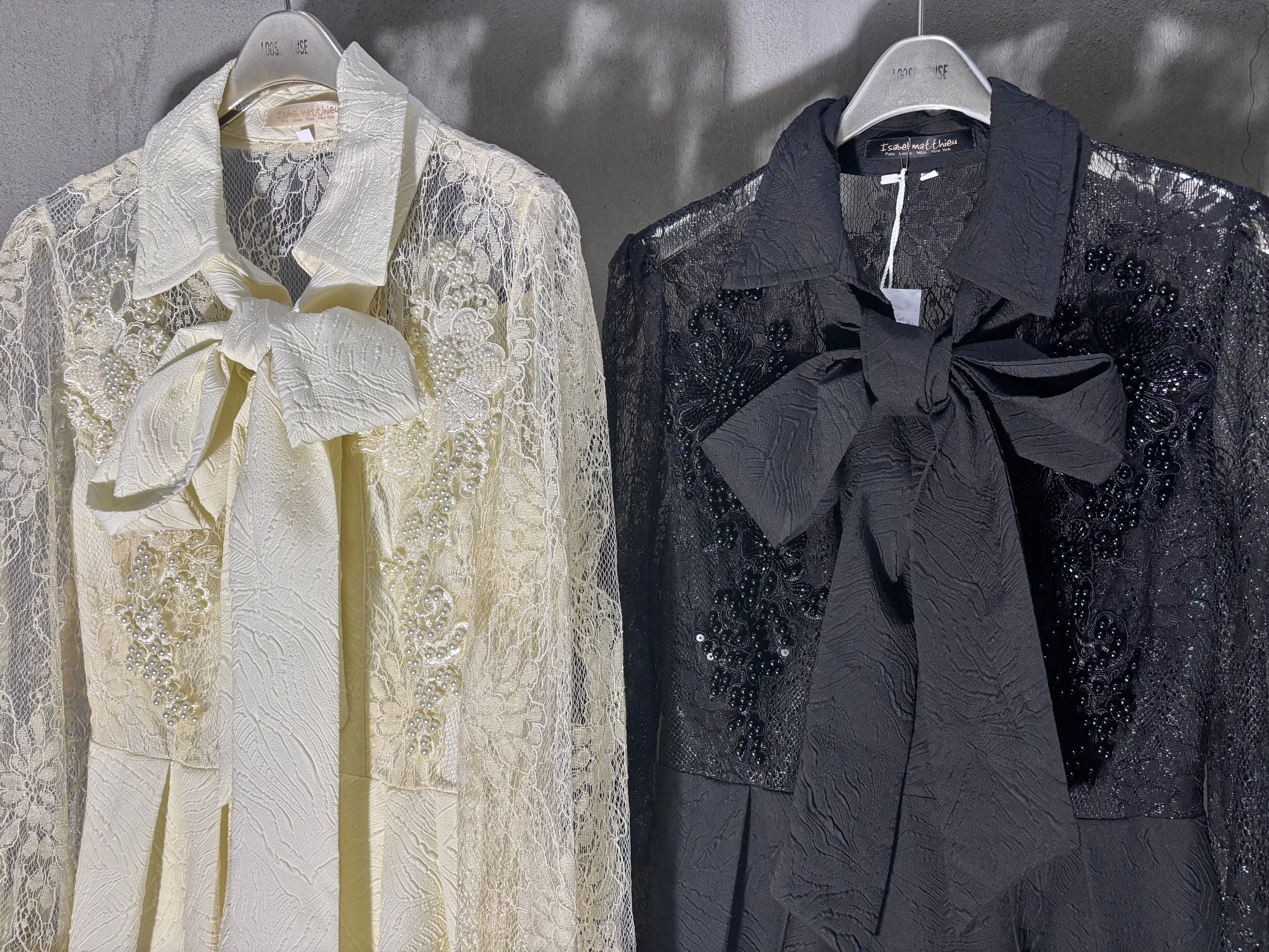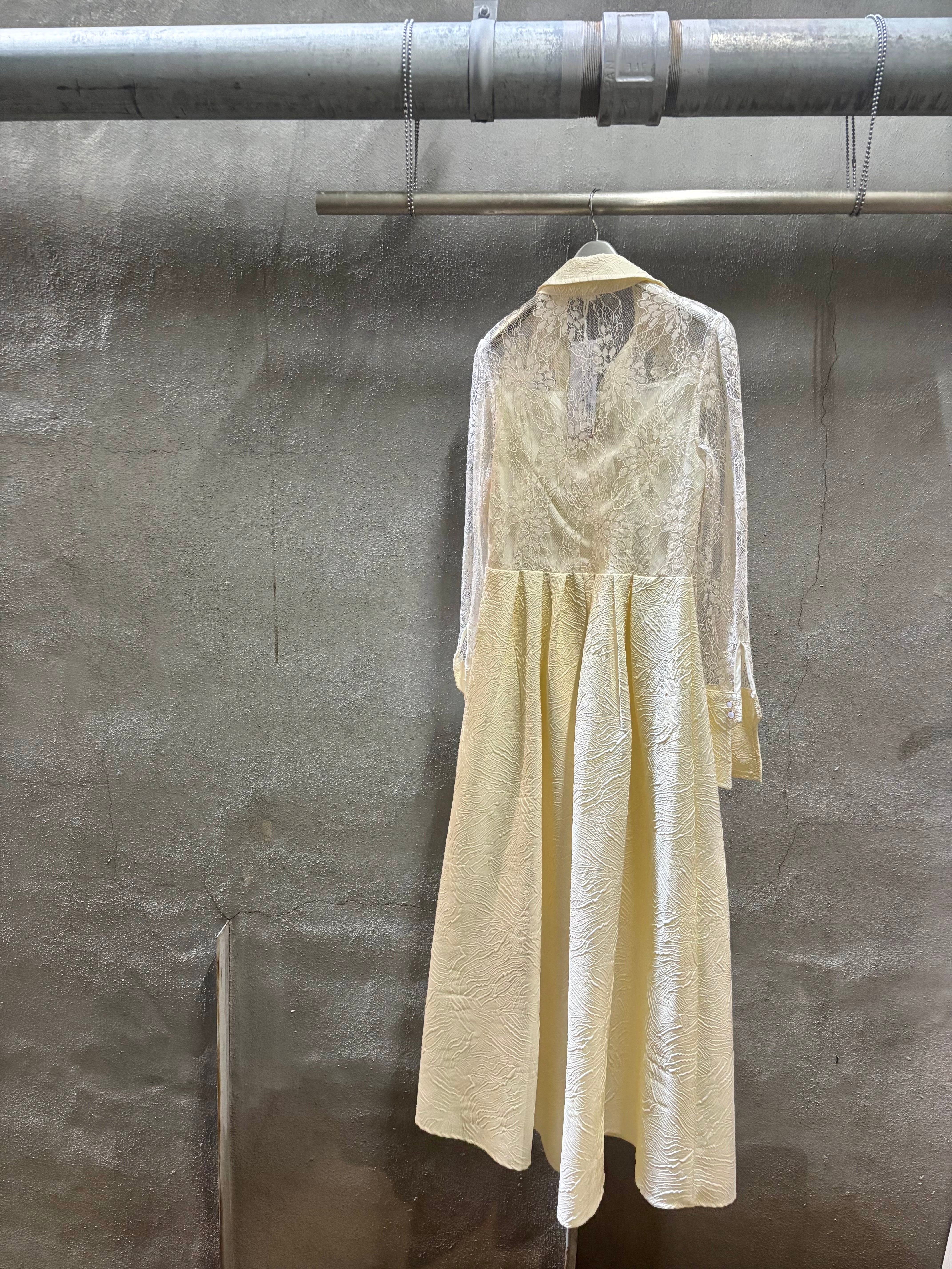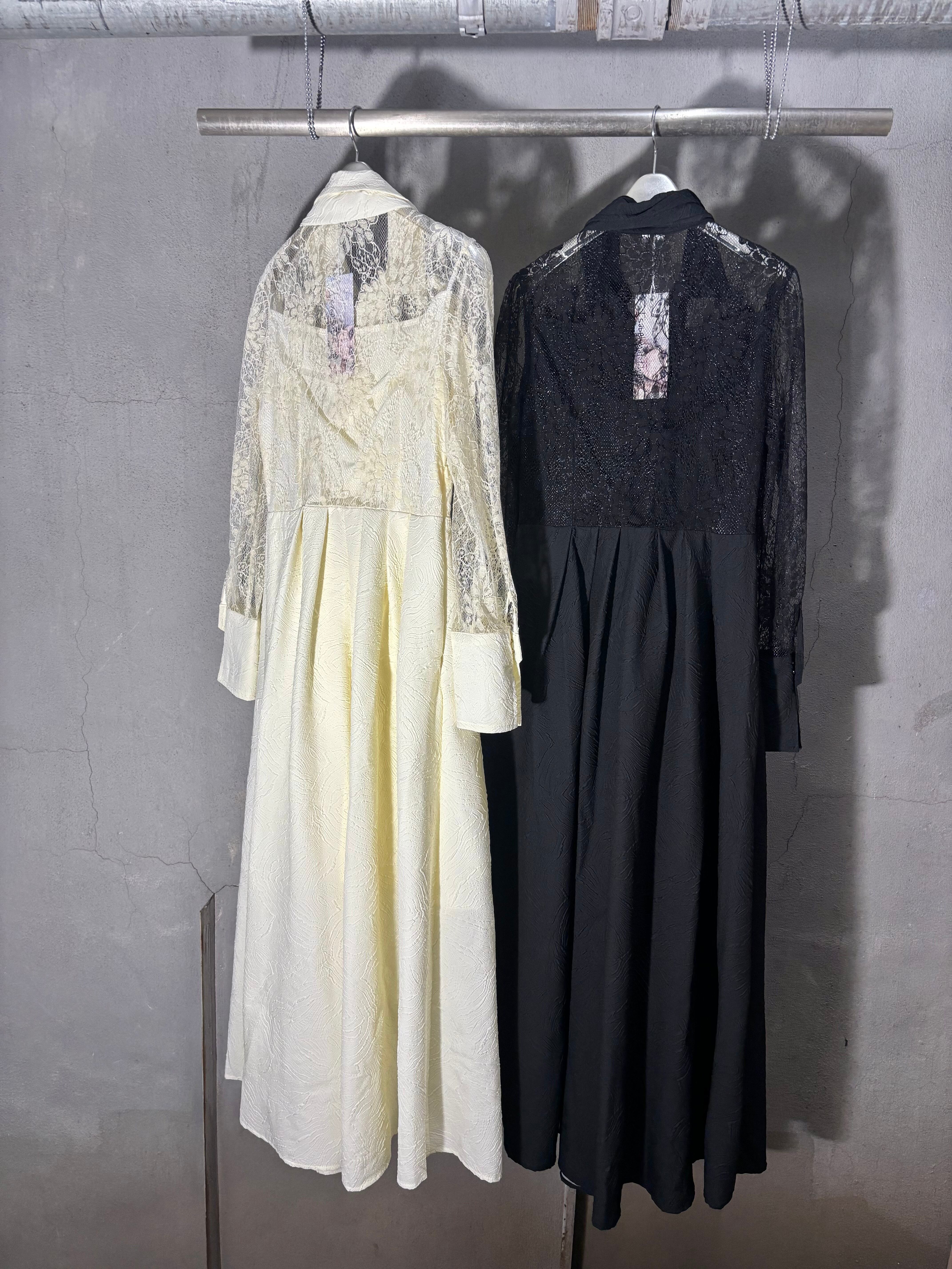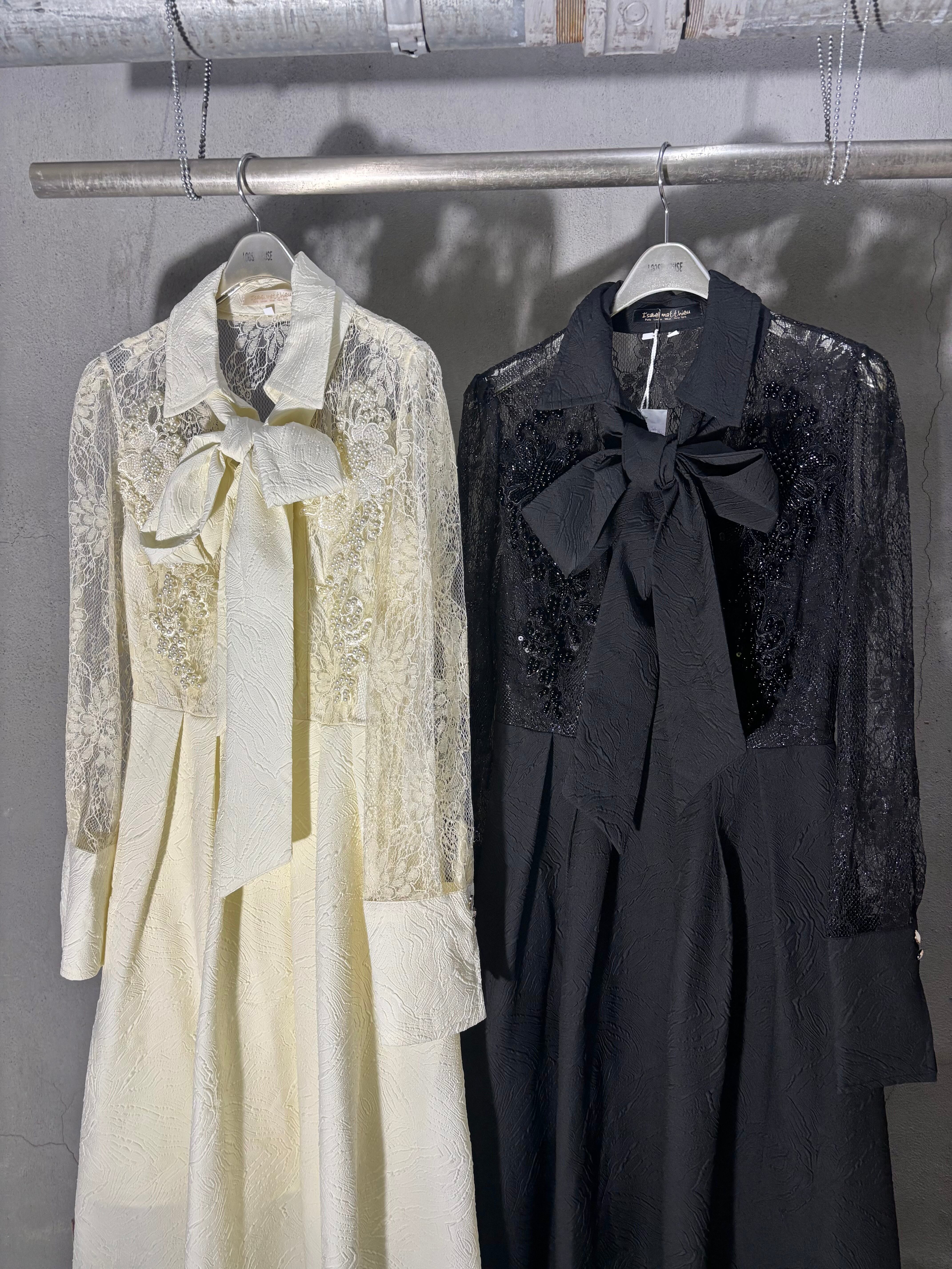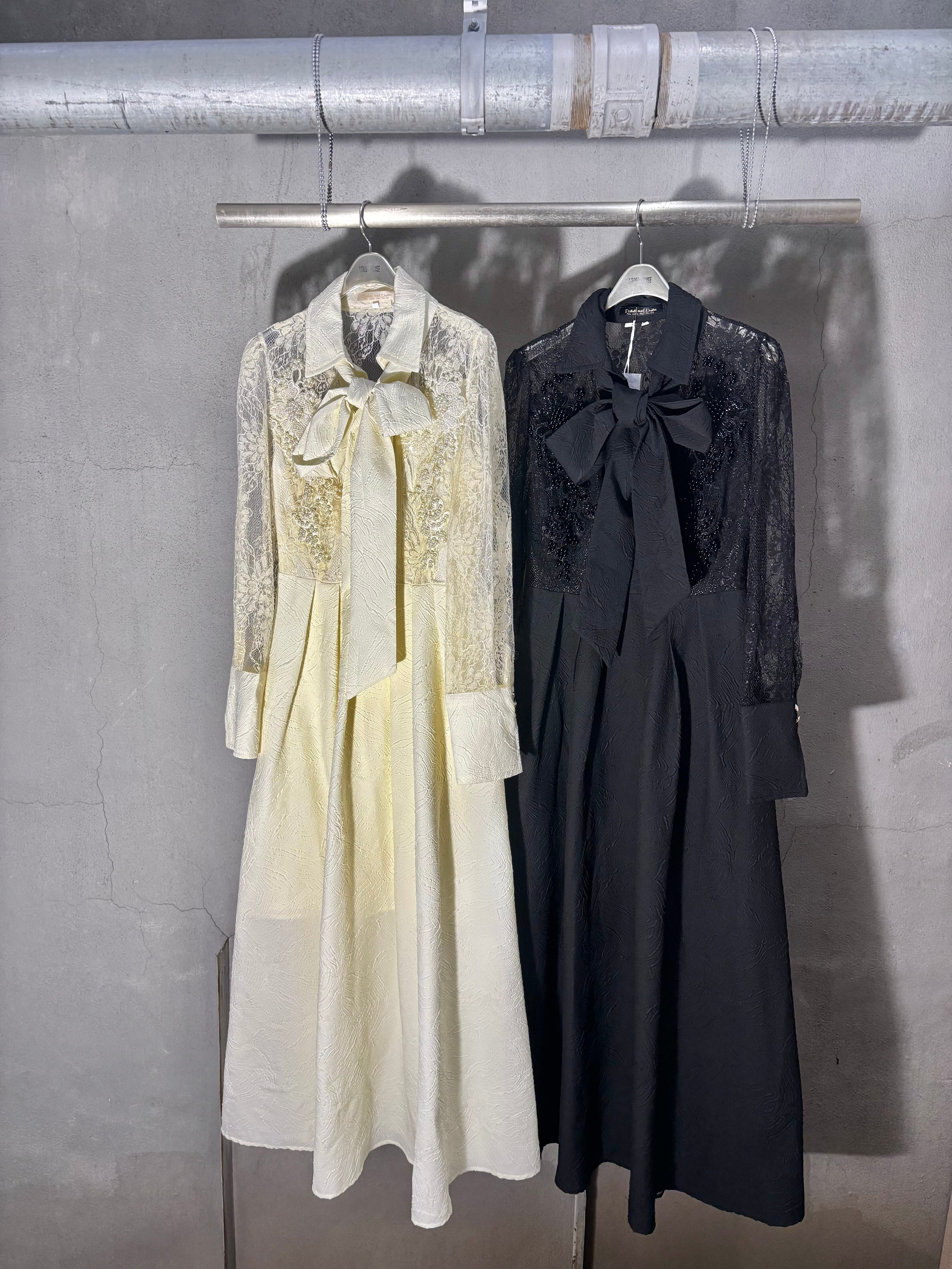lace sleeve shirt collar design long one-piece ワンピース ロングワンピ レース パール 刺繍 リボンベルト ドレス