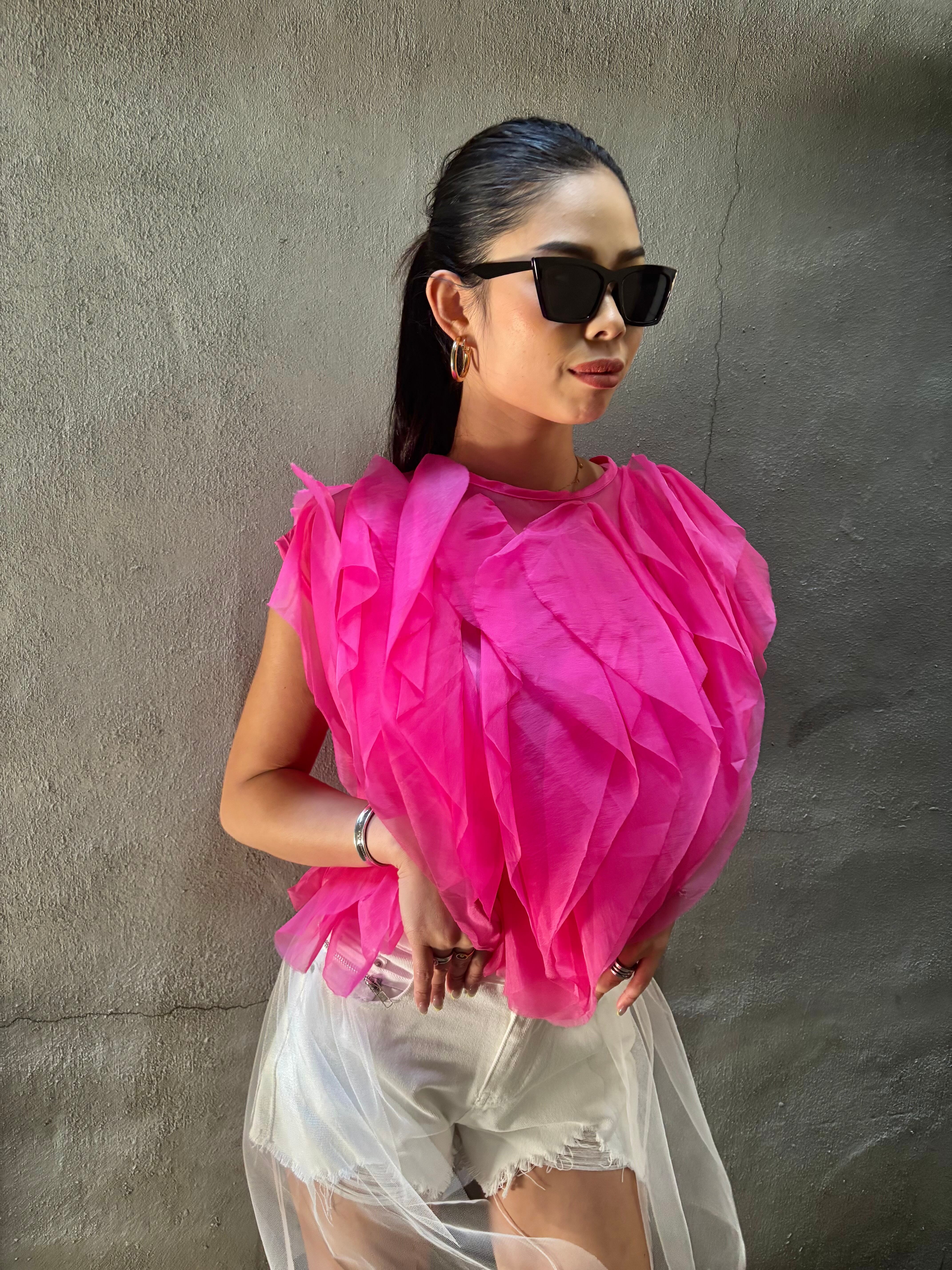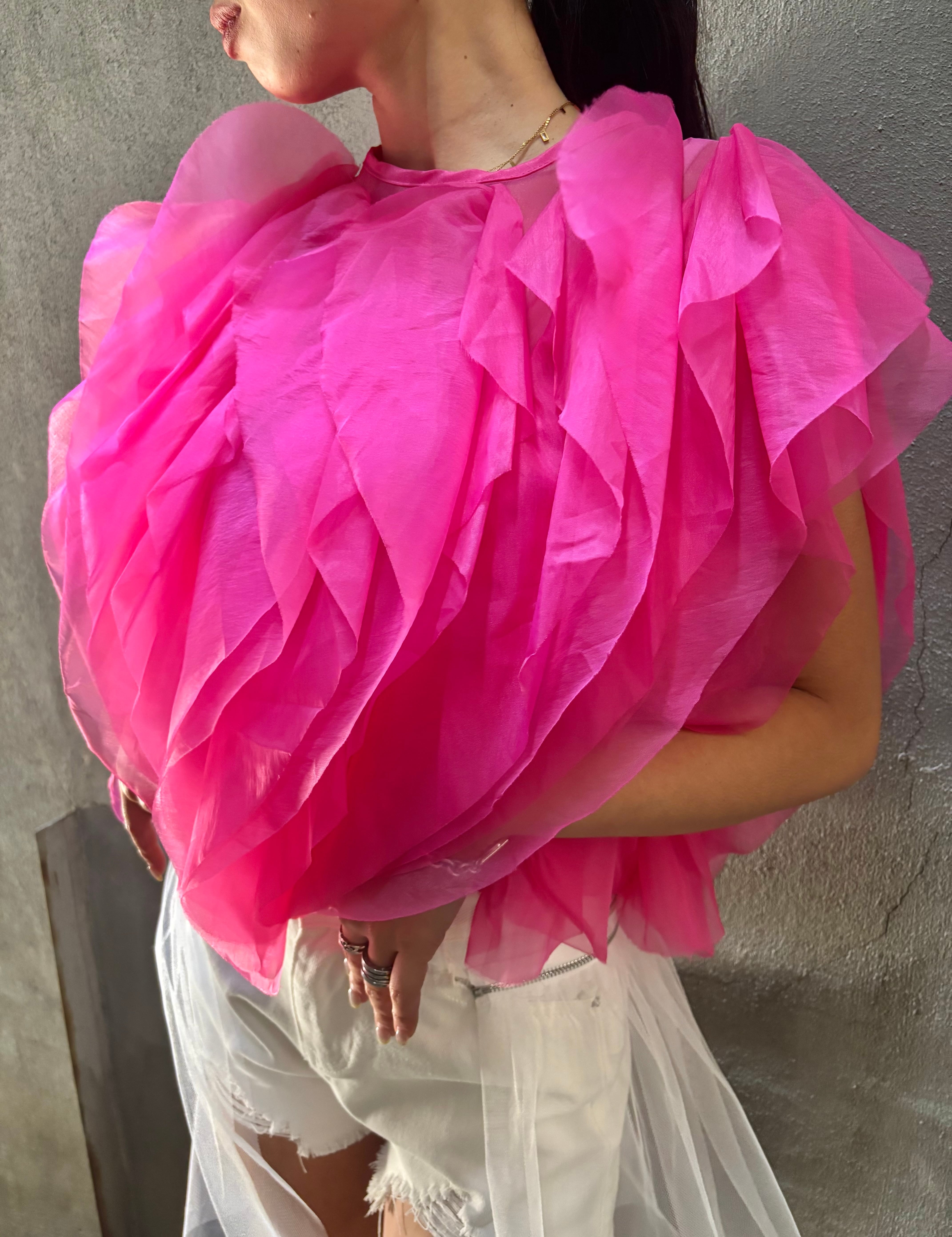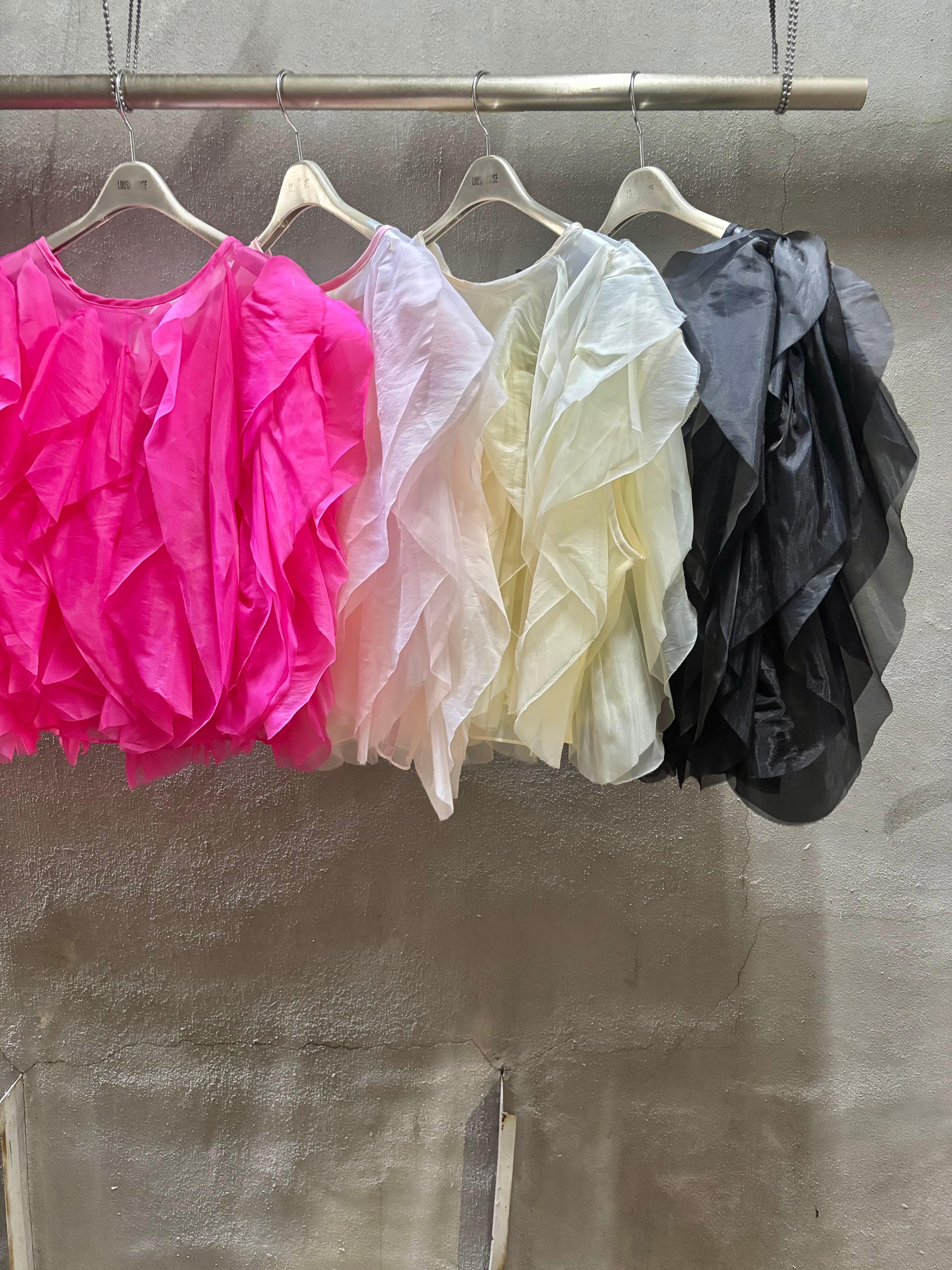 女性らしさを引き立てるフリルデザインが絶妙で、カジュアルからPARTYシーンまで幅広いスタイルに対応可能です。