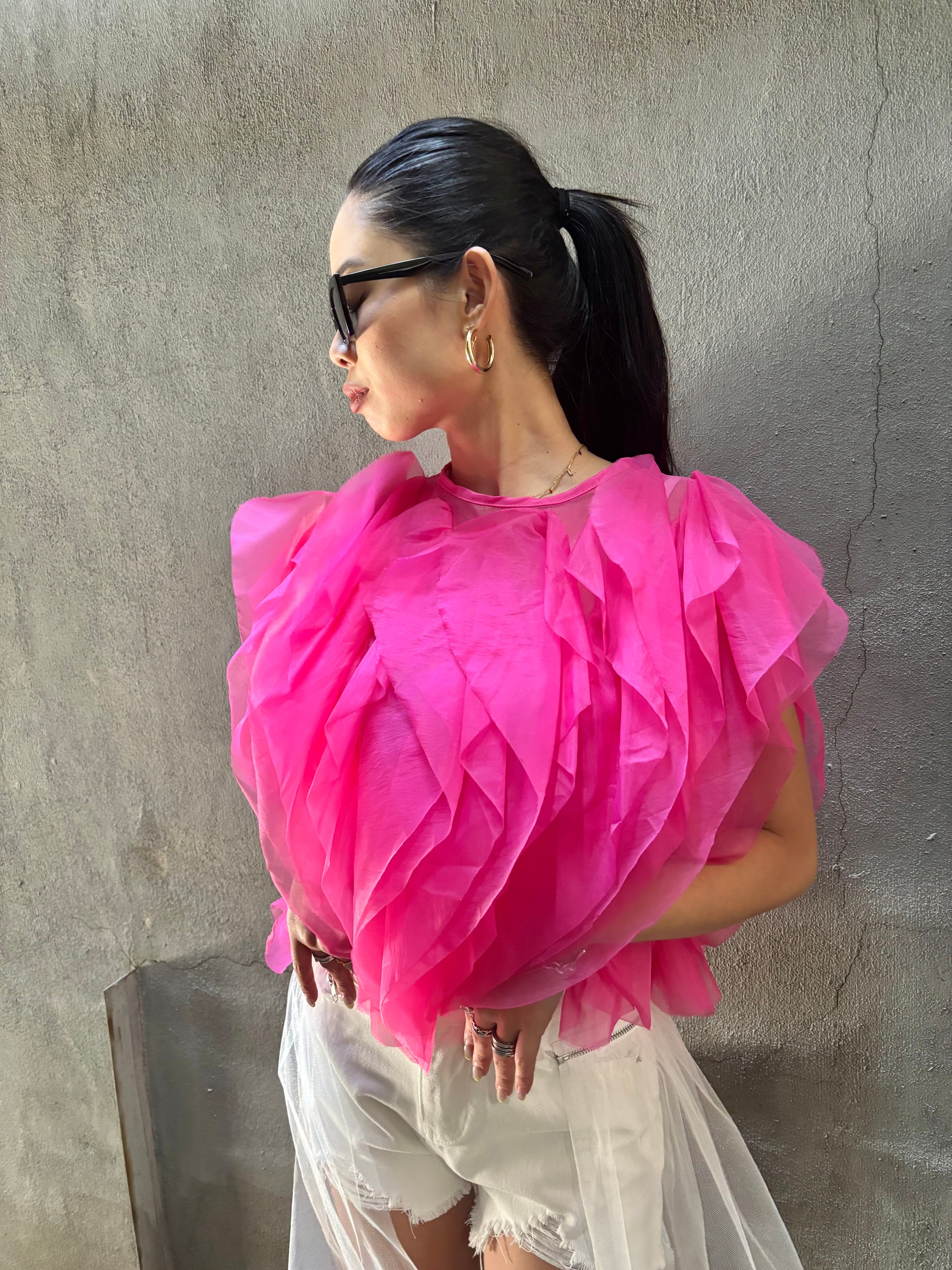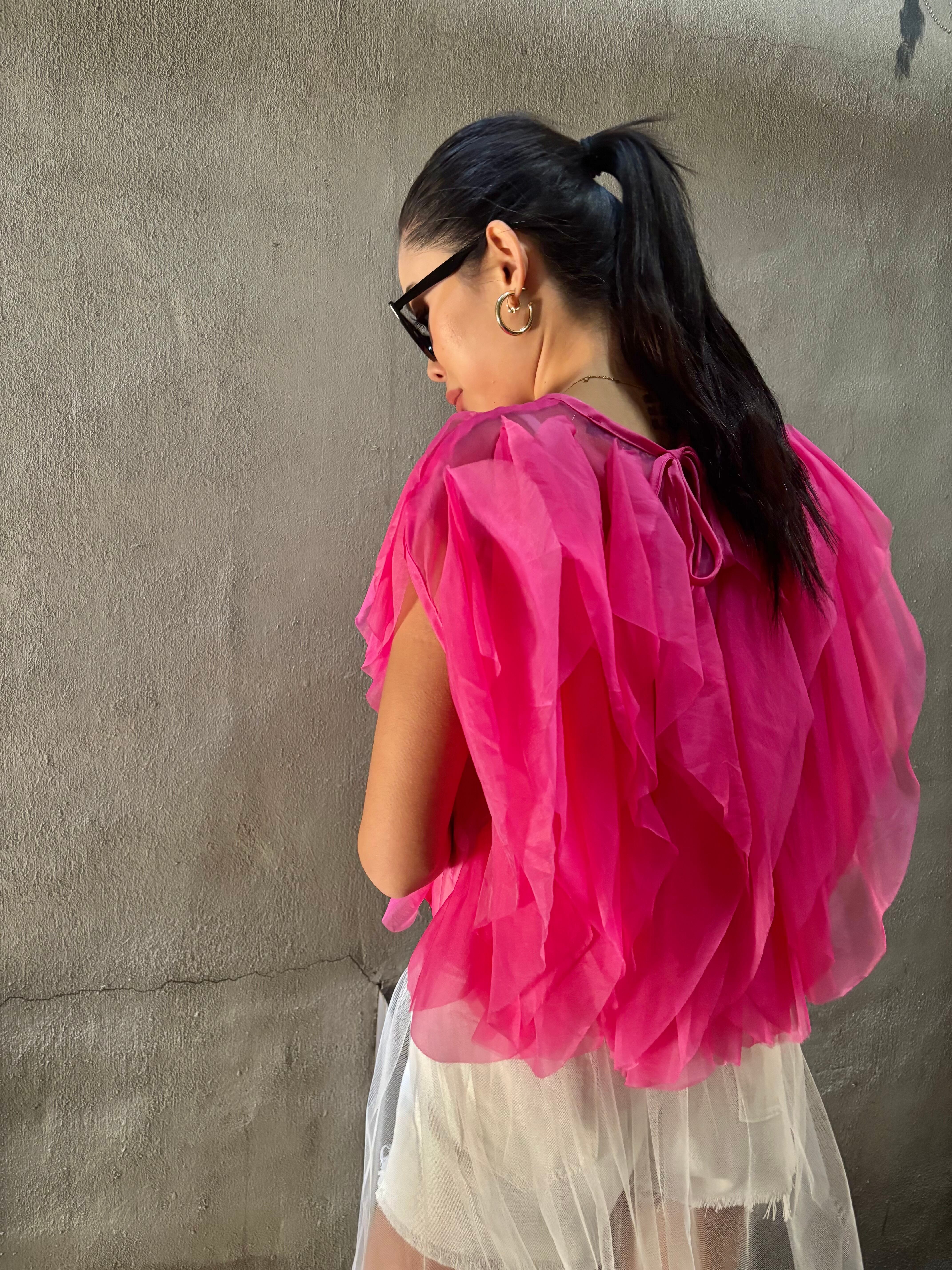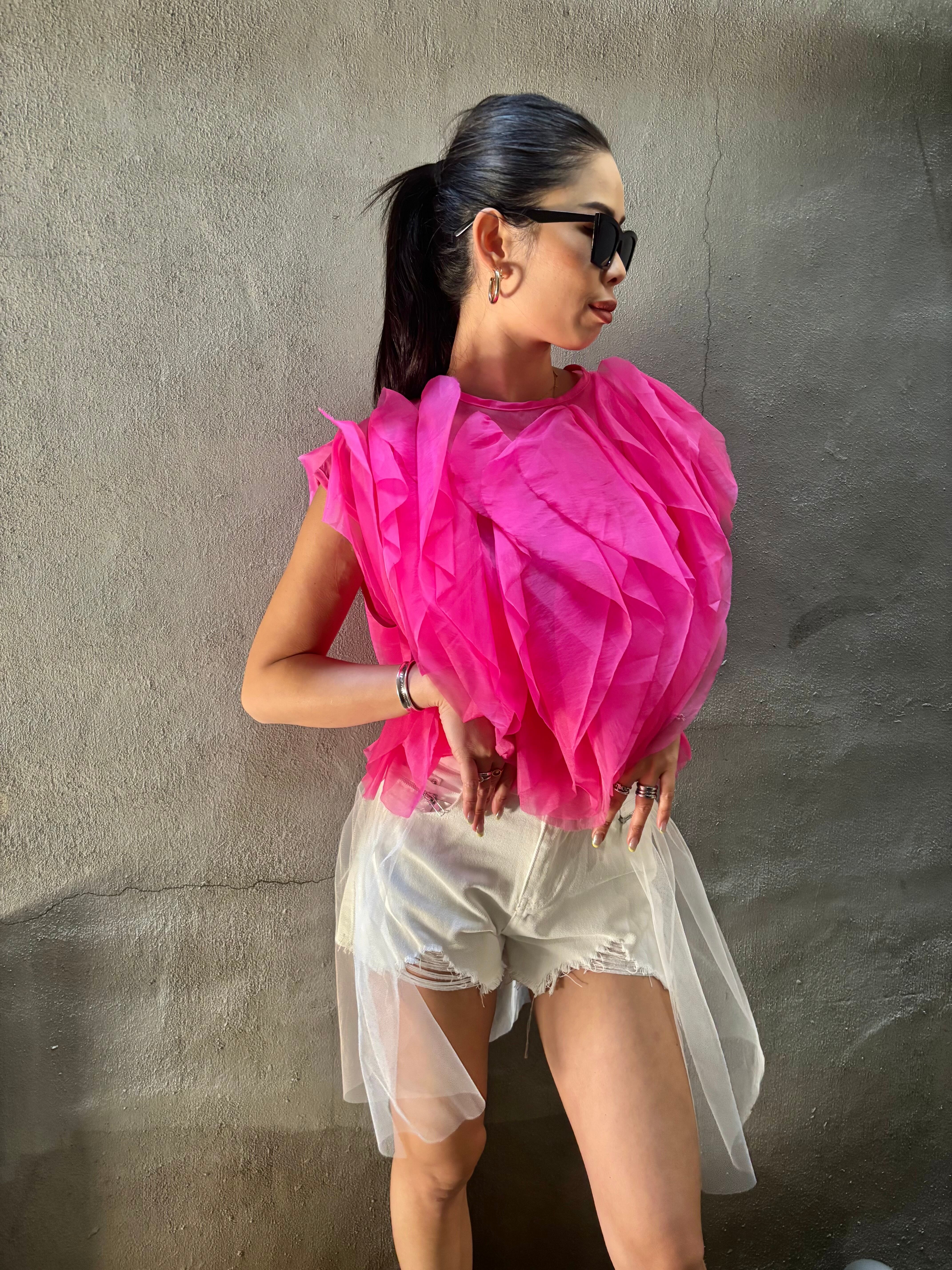 女性らしさを引き立てるフリルデザインが絶妙で、カジュアルからPARTYシーンまで幅広いスタイルに対応可能です。