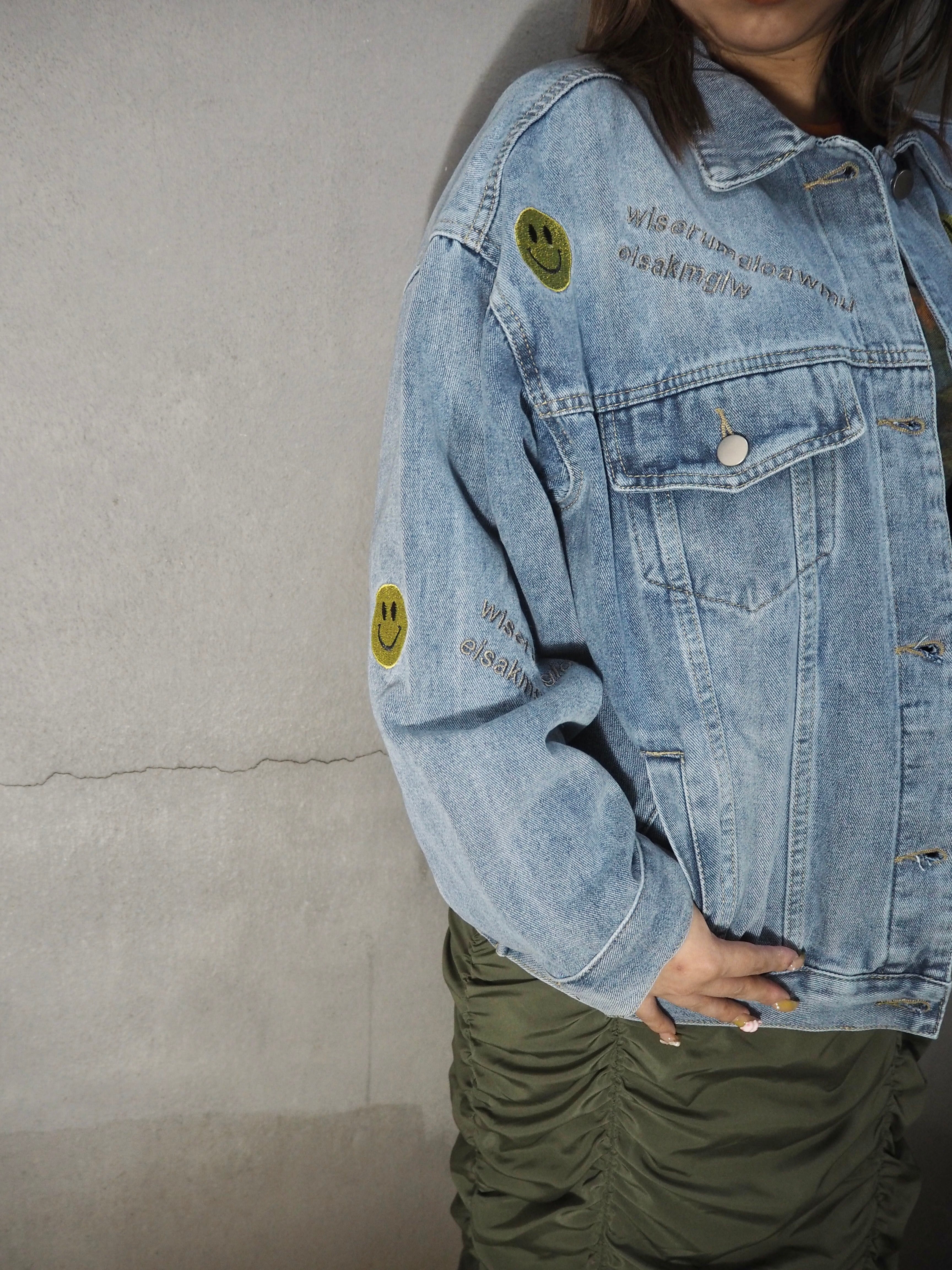 smiley embroidery design denim jacket デニム ジャケット スマイリー ニコちゃん 刺繍