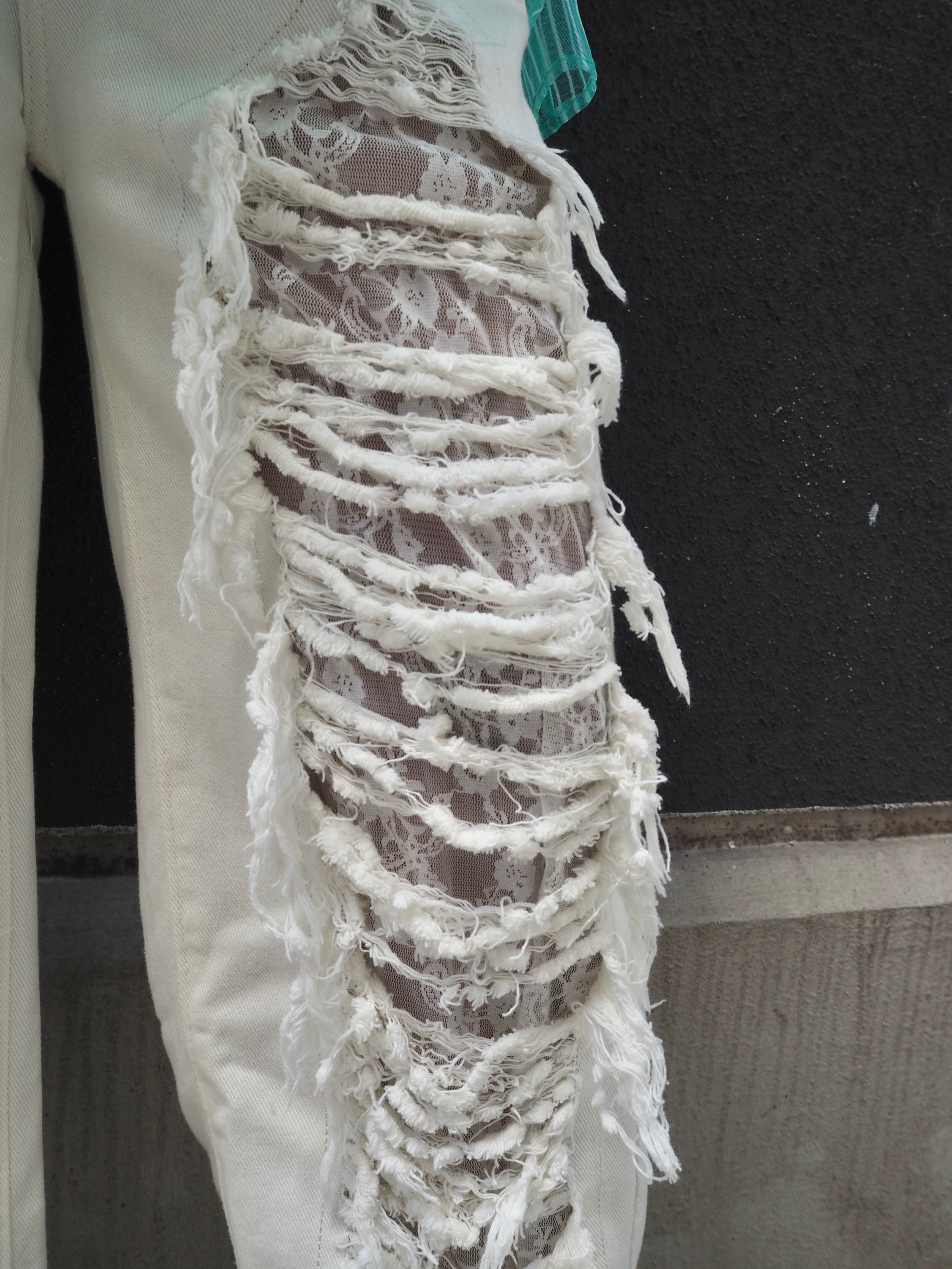 damage × lace design white denim pants デニム パンツ ダメージ レース ホワイトデニム 白