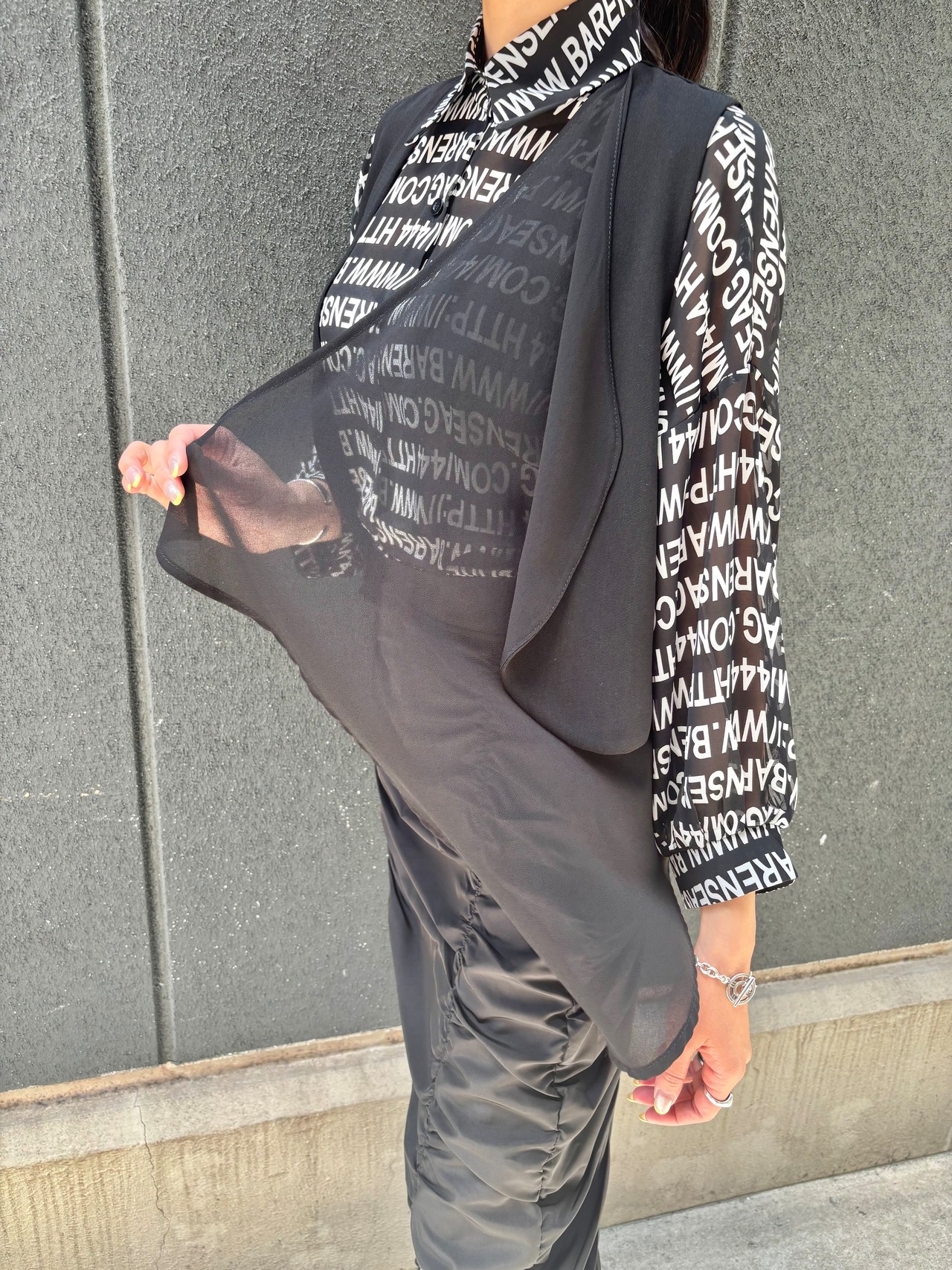 chiffon layerd design vest ジレ ベスト シフォン 重ね着 レイヤード