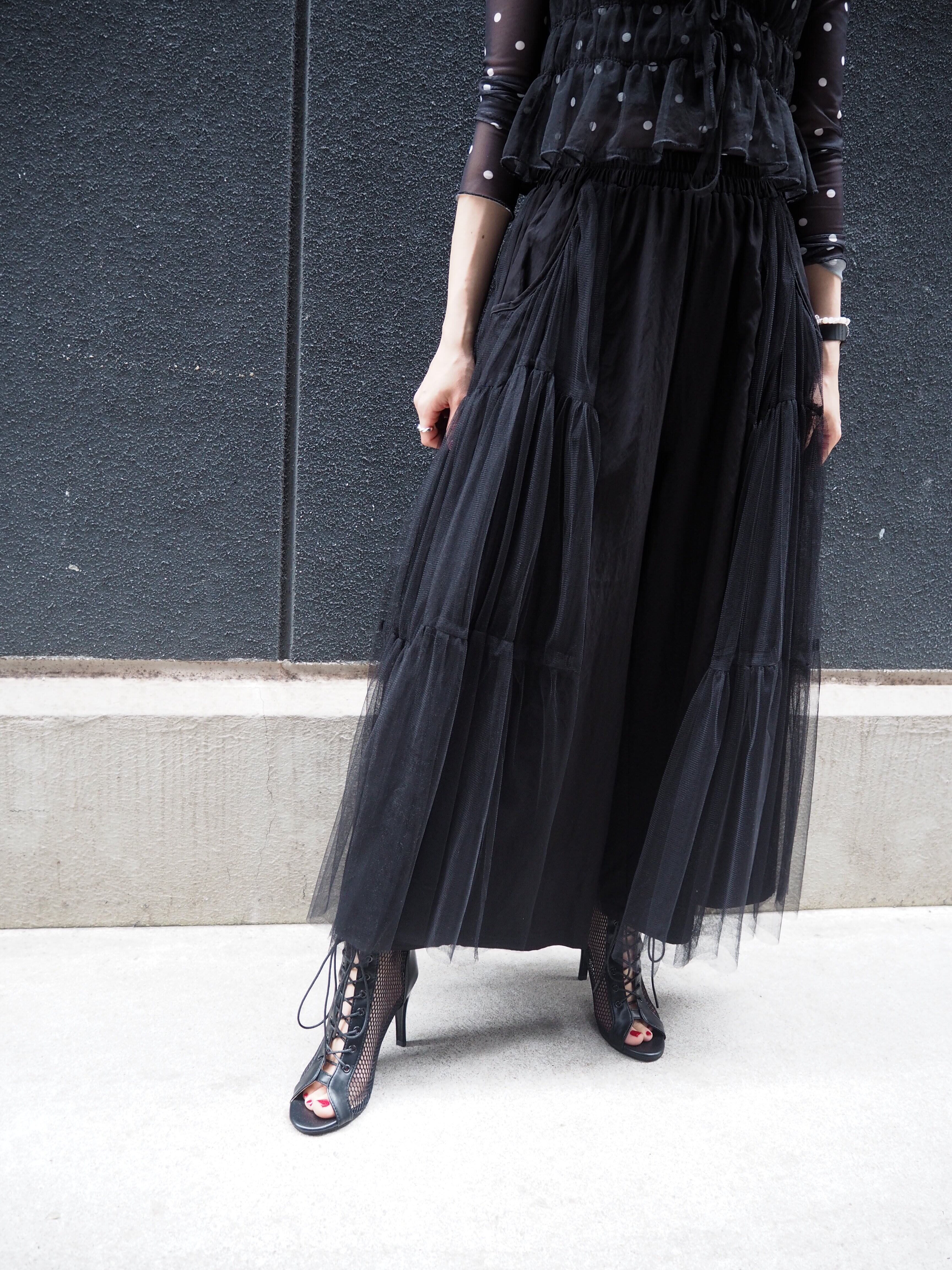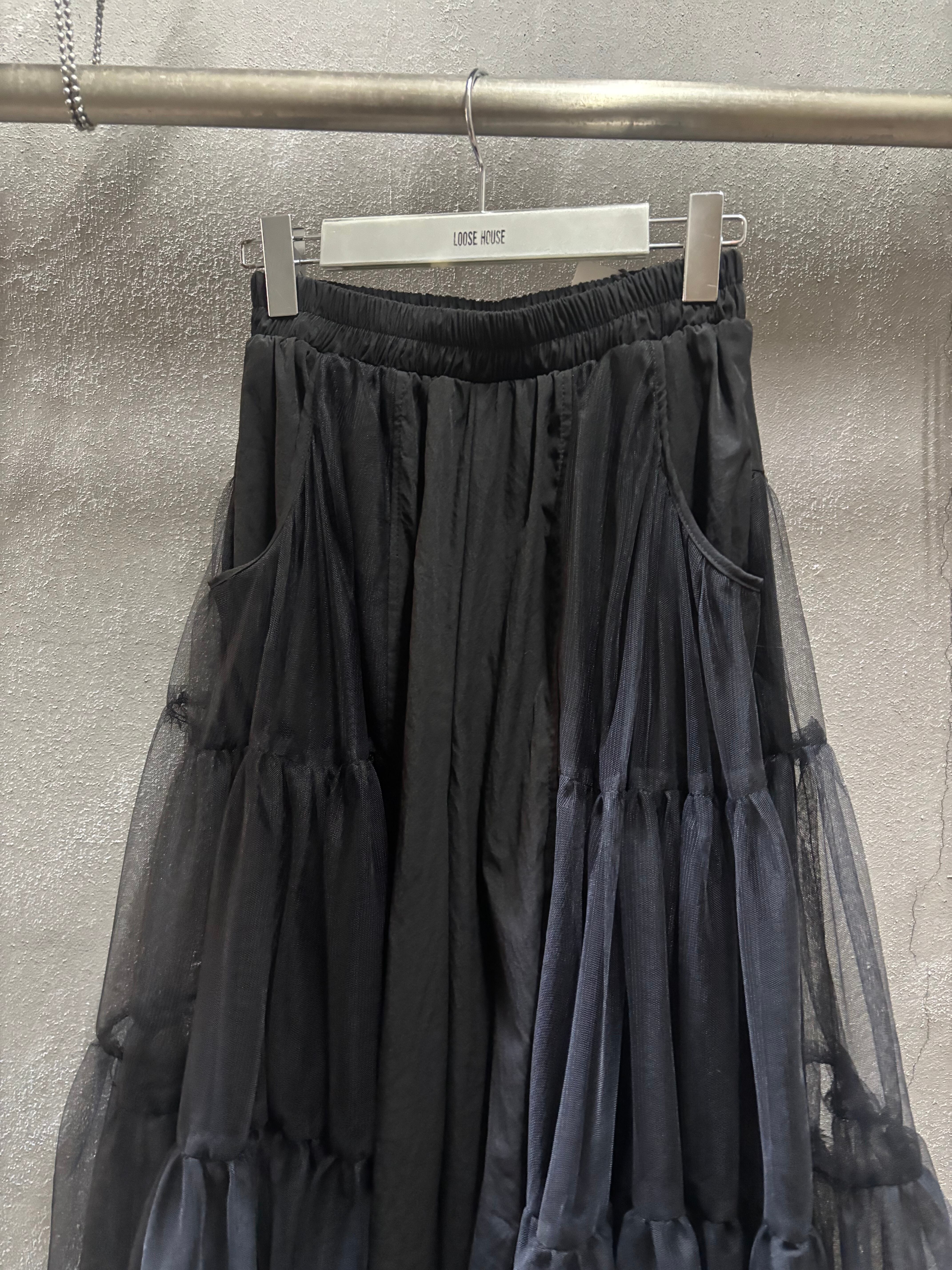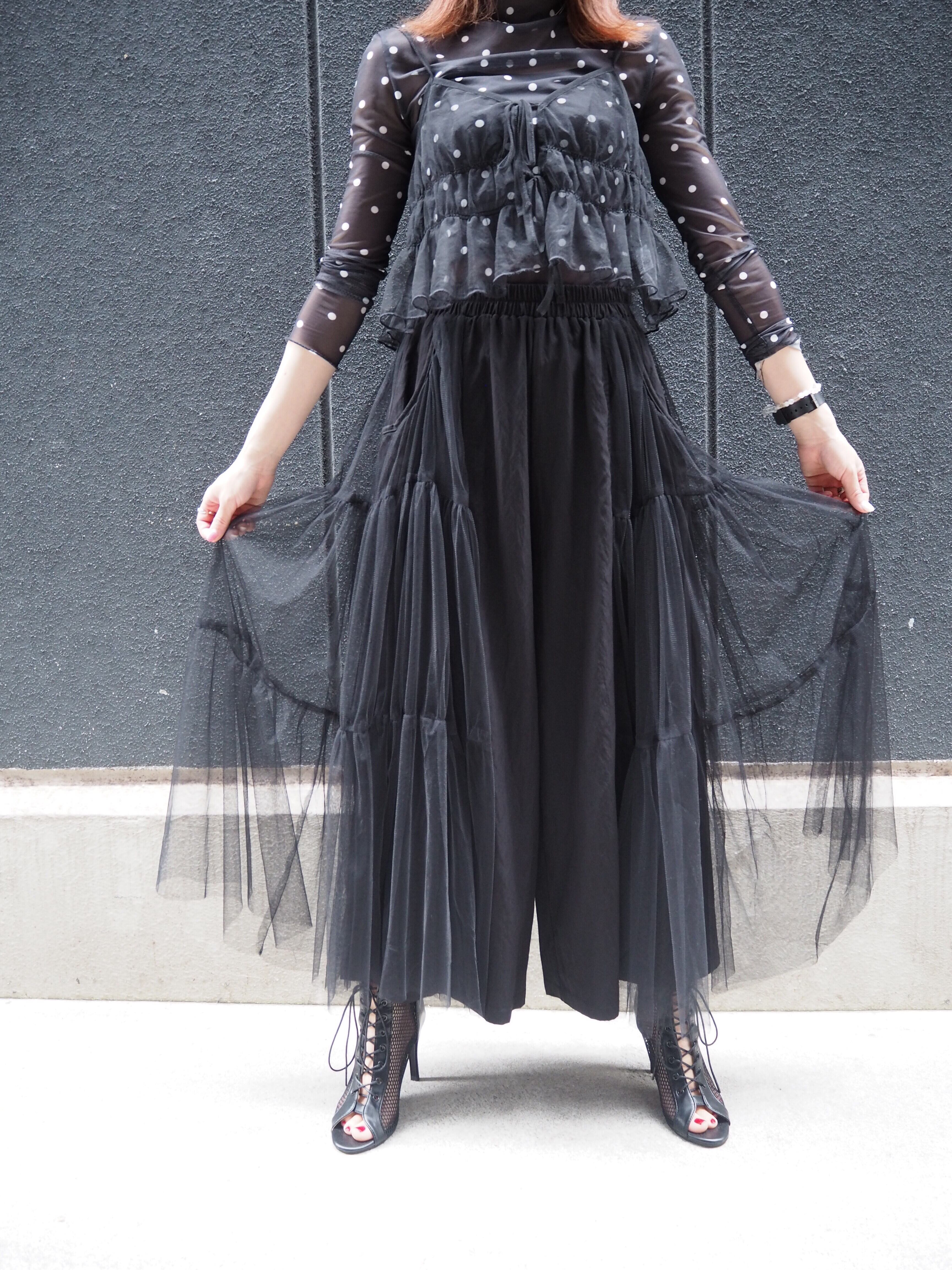 tulle cover wide pants パンツ チュール カバー ゴムウエスト カプリ丈 ブラック 黒