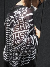 stretch mesh × monotone print design blouson ブルゾン メッシュ ストレッチ 羽織 バイカラー 白黒