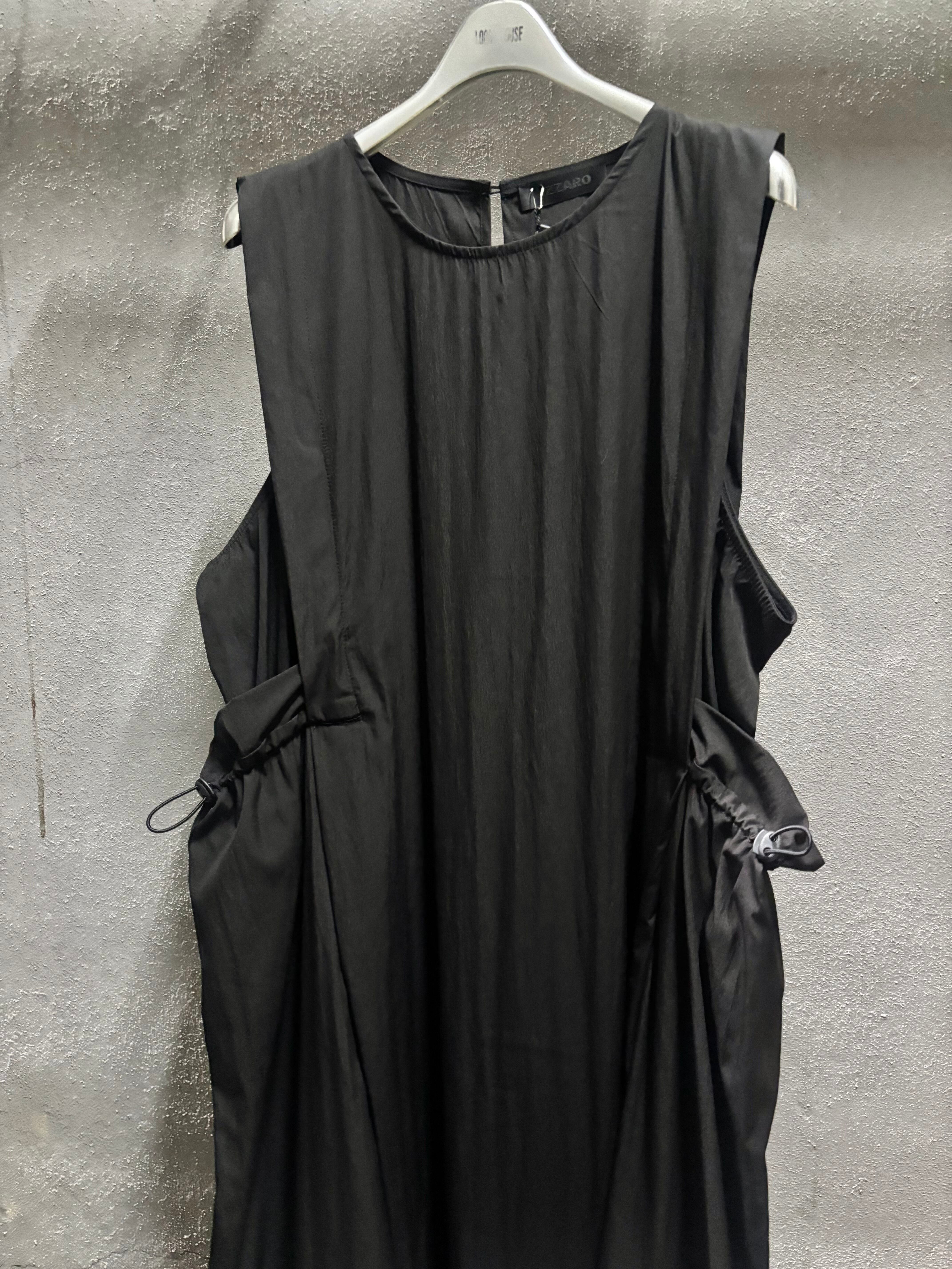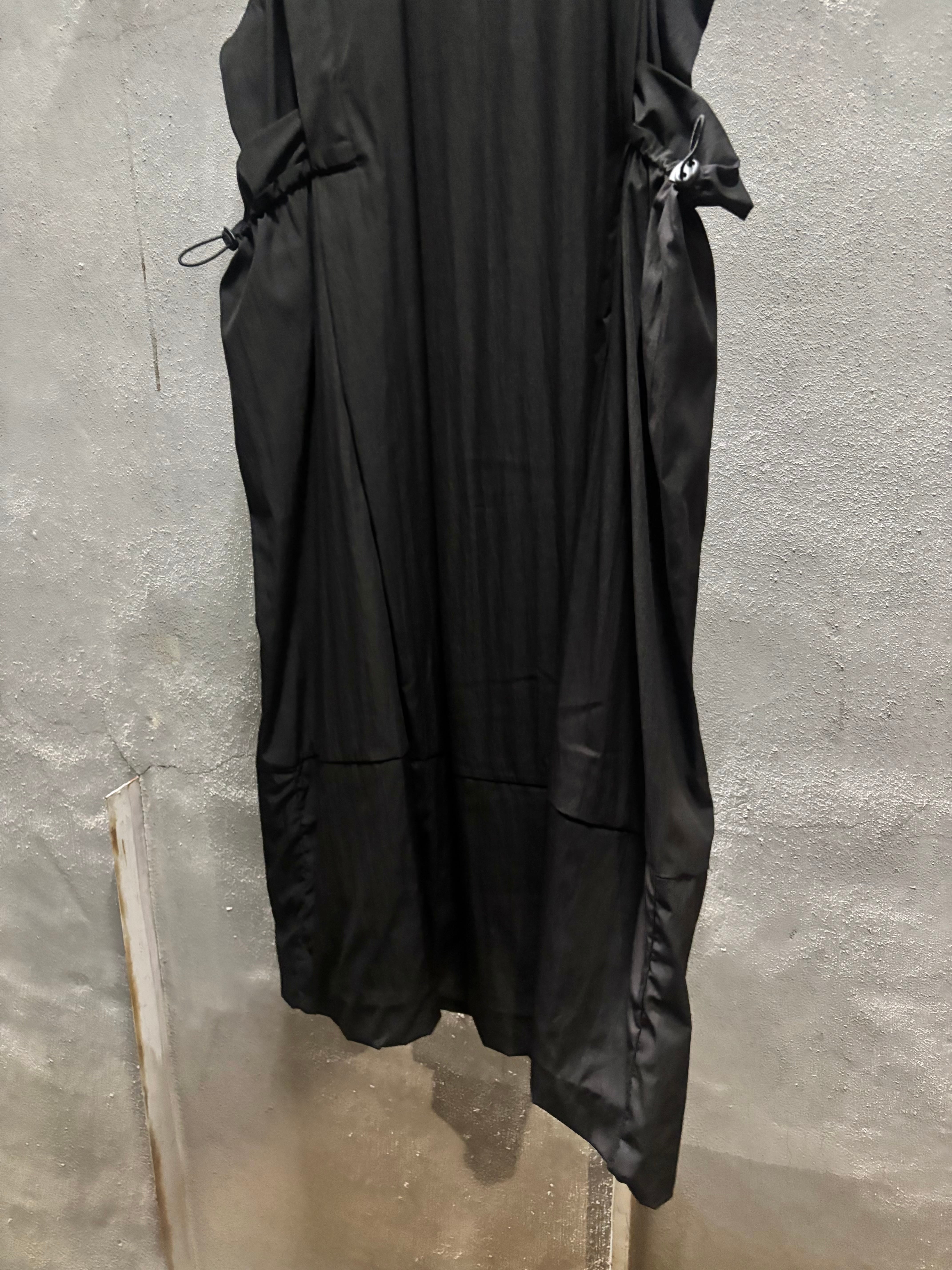 big pocket × drawstrings code design long one-piece ワンピース ロングワンピ ノースリーブ ポケット ドローコード ブラック 黒