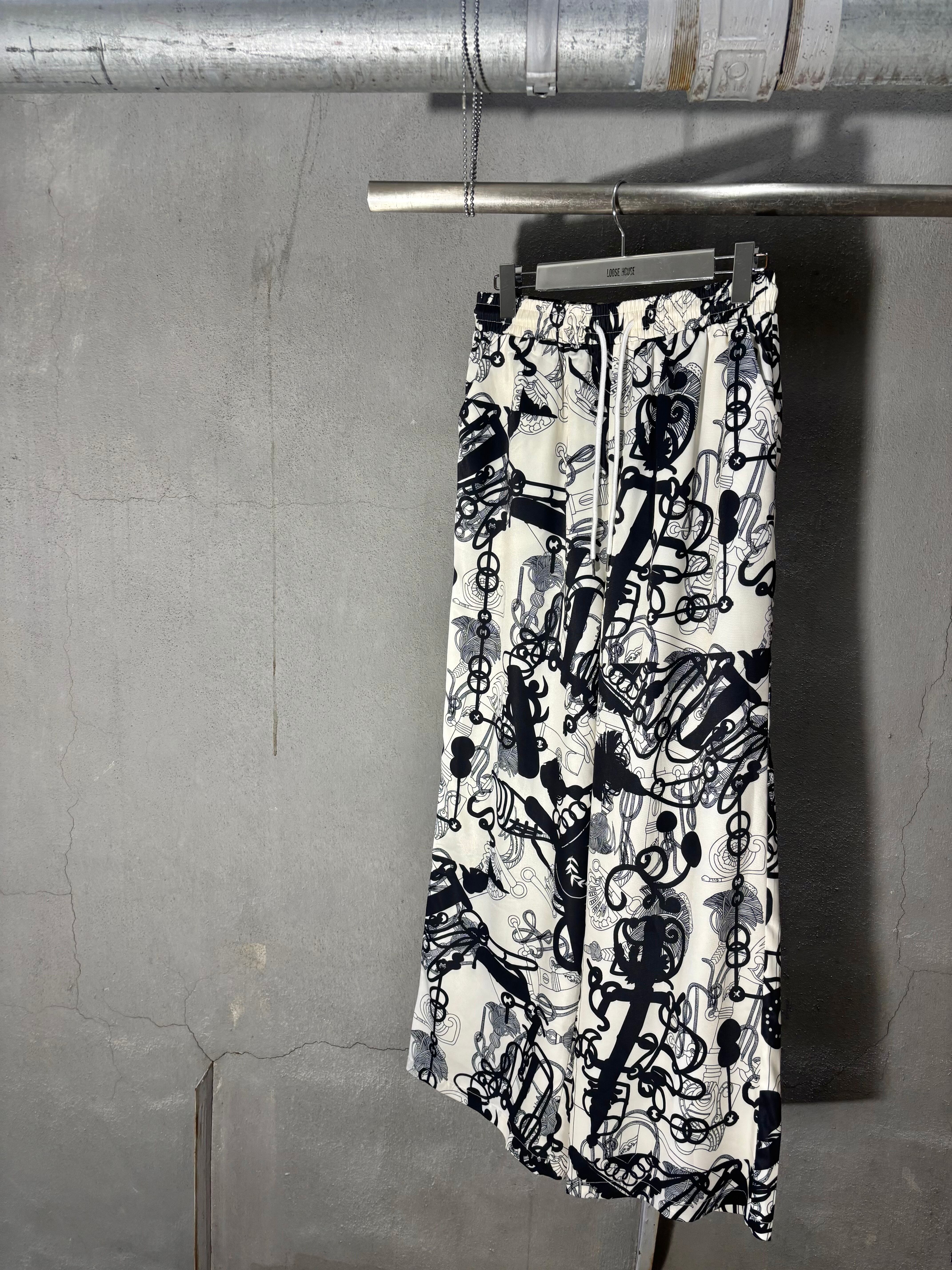 ester monochrome print long wide pants パンツ ロングパンツ ワイドパンツ モノクロ 柄パンツ ゴムウエスト