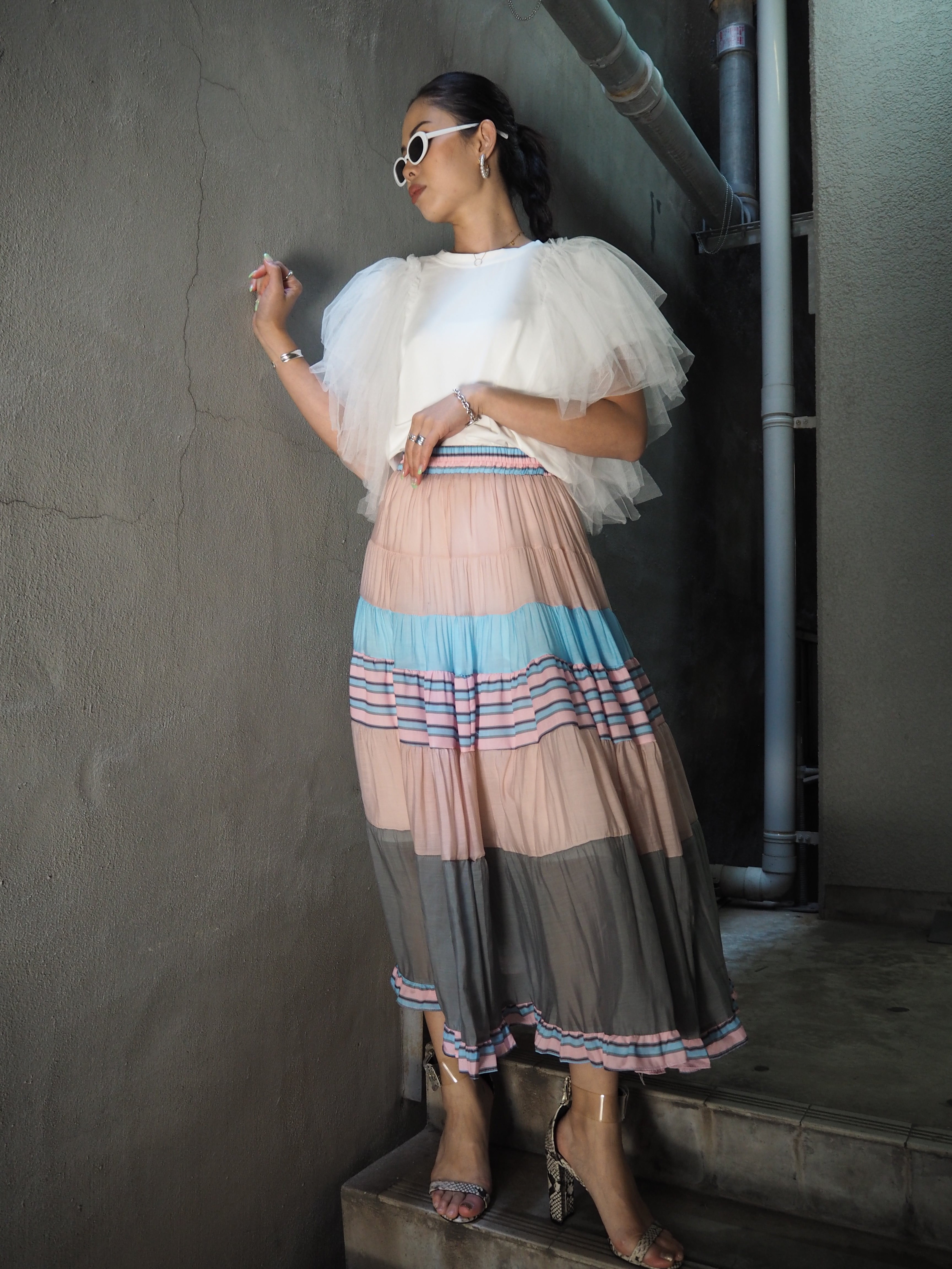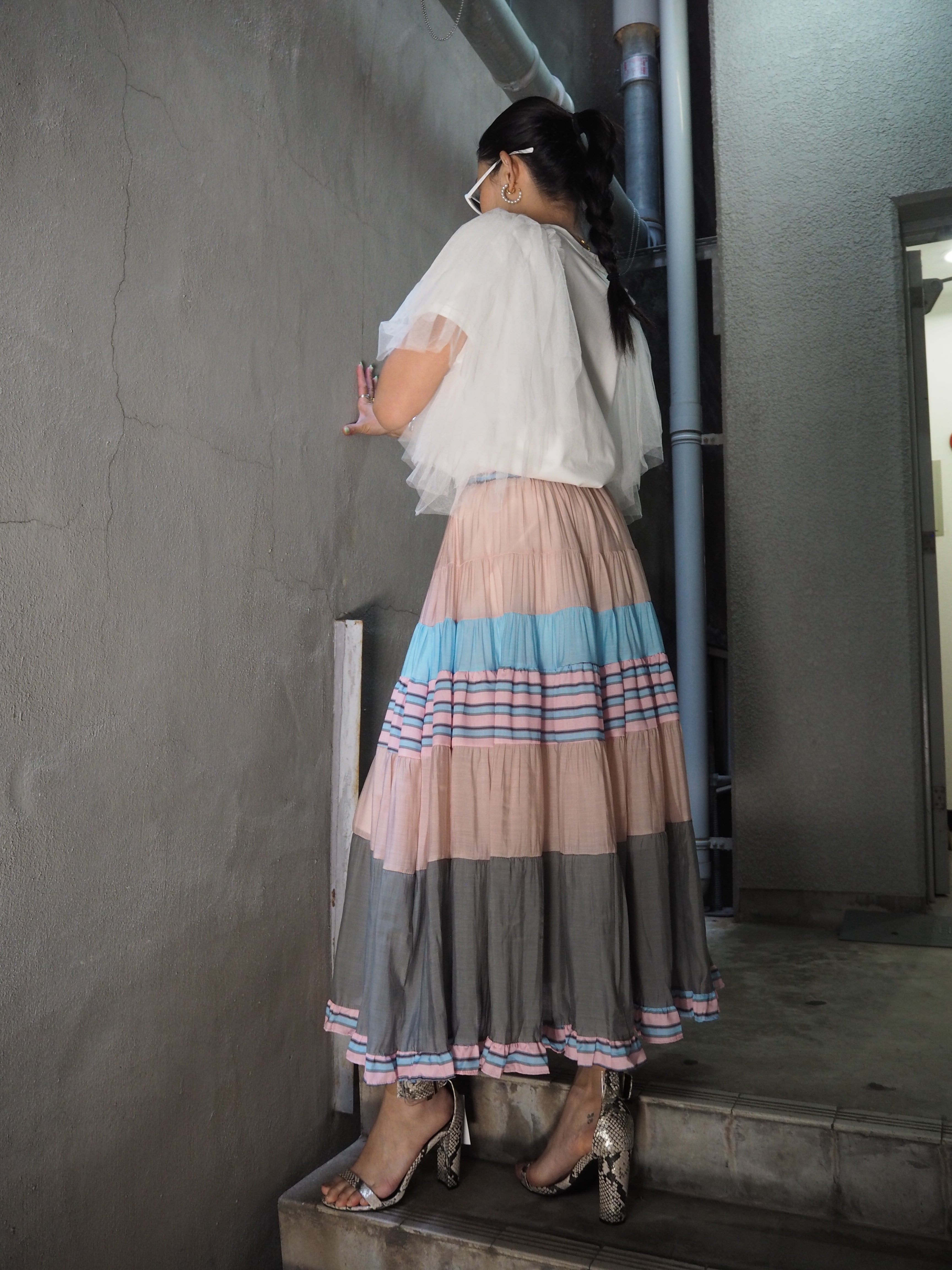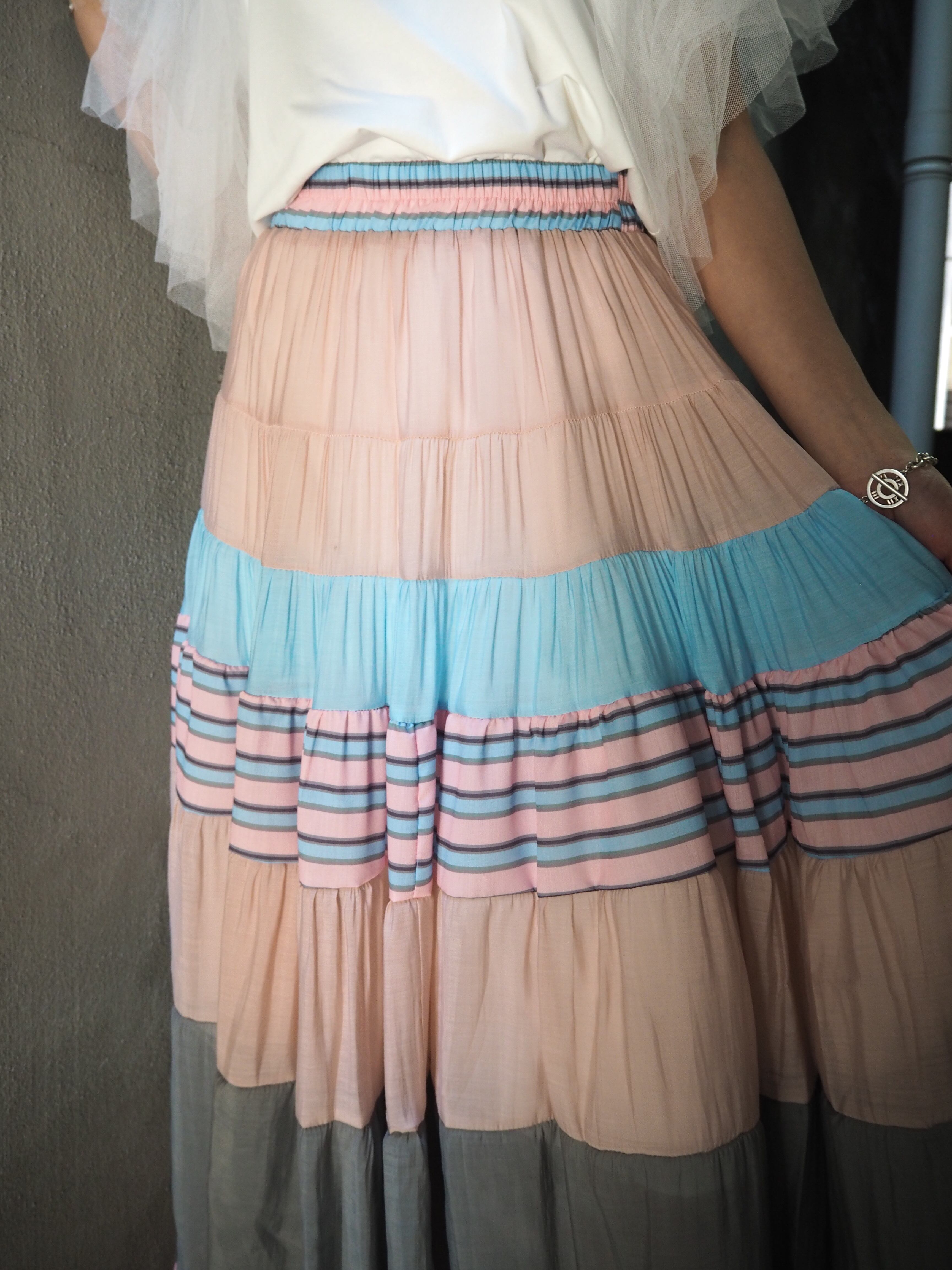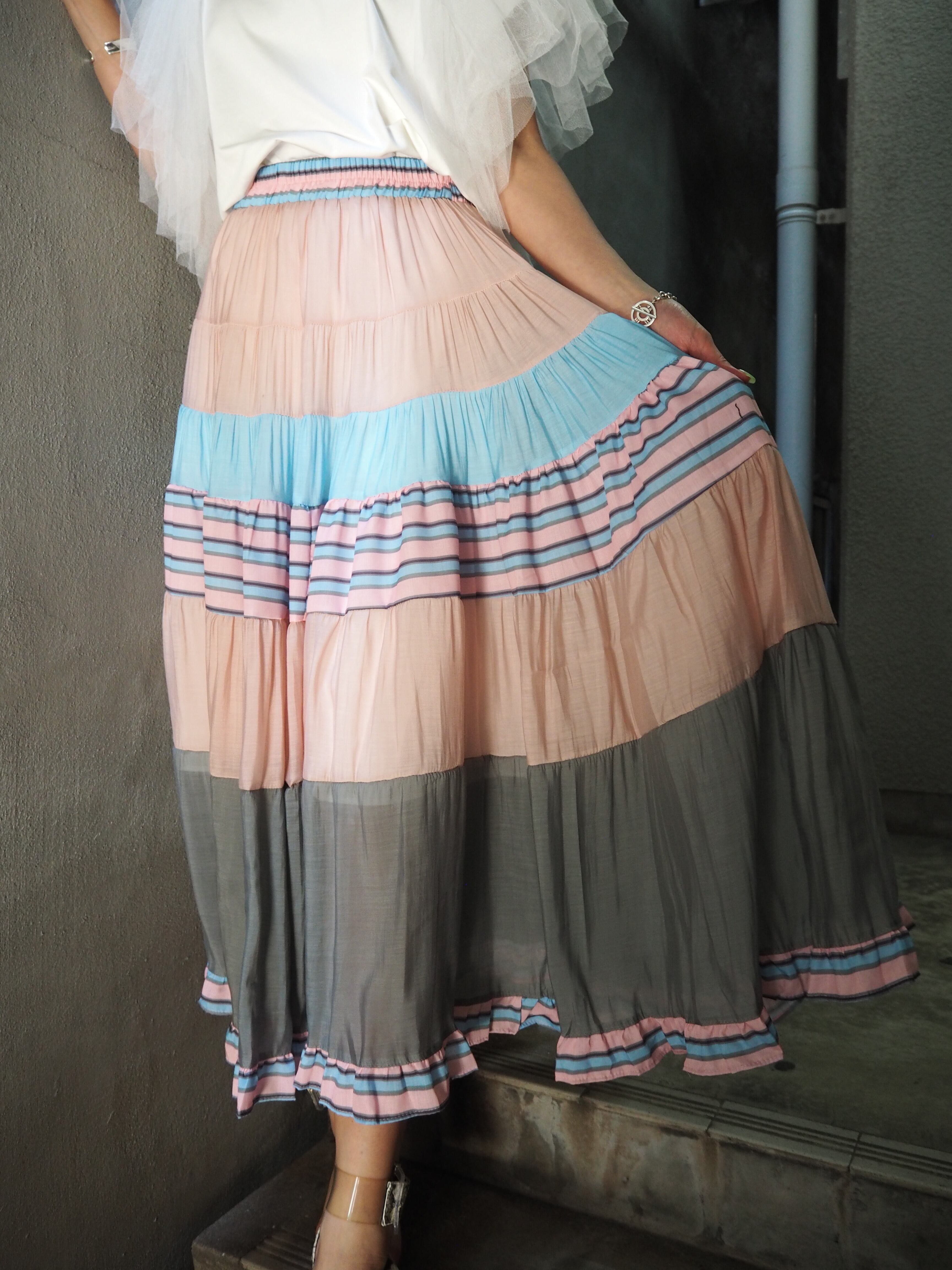 mix color change design gather skirt スカート ギャザー 切替デザイン ピンク