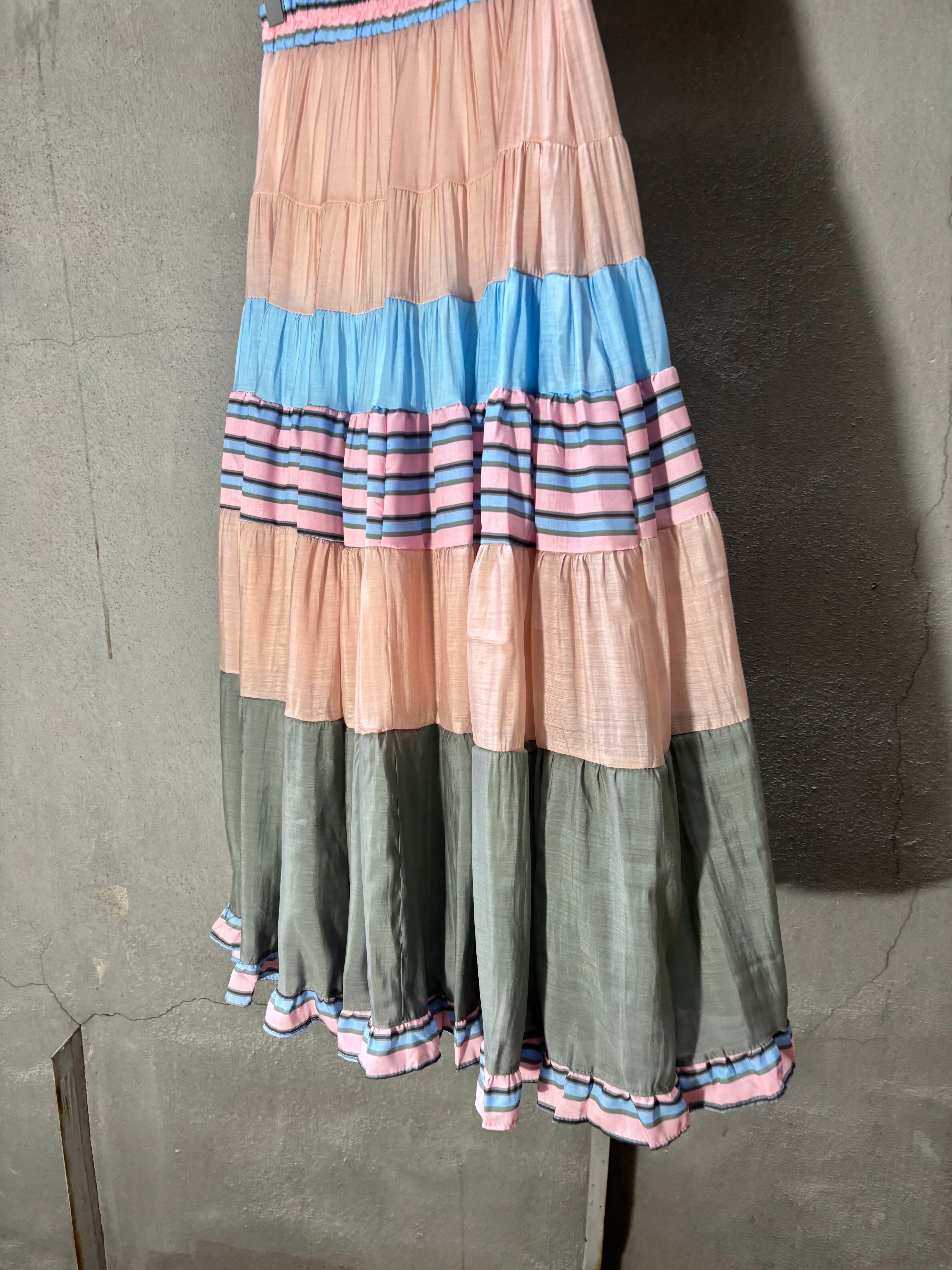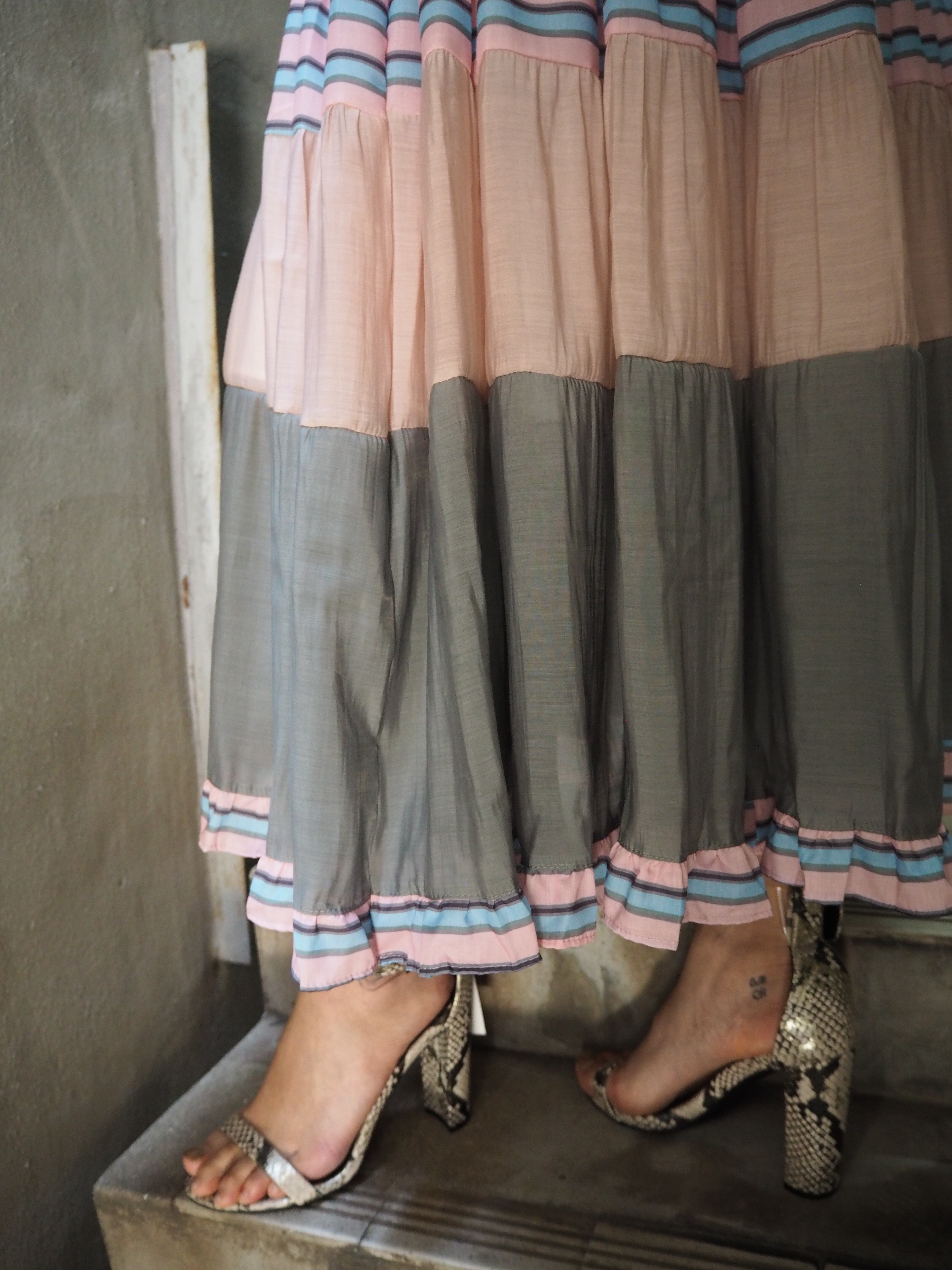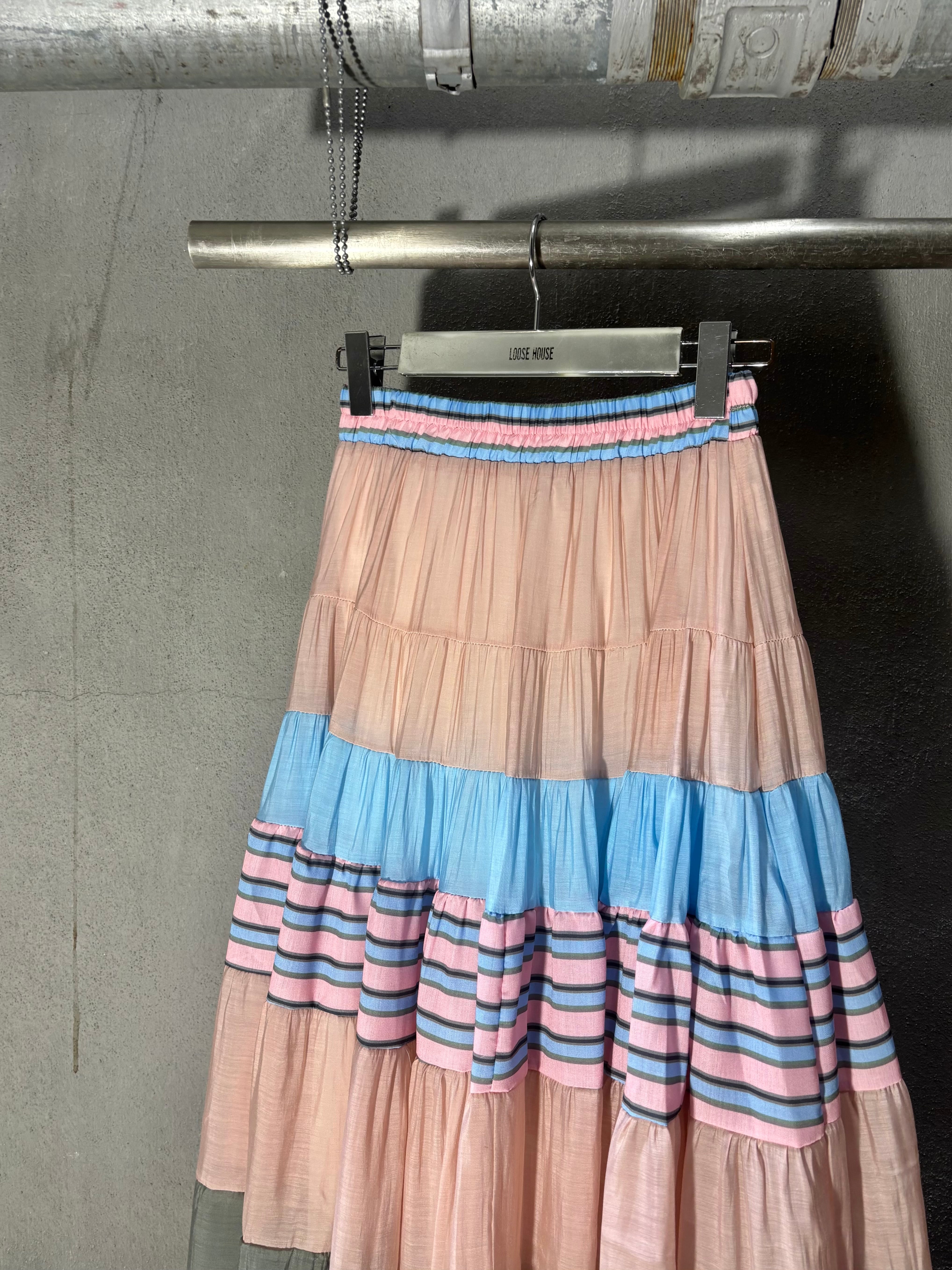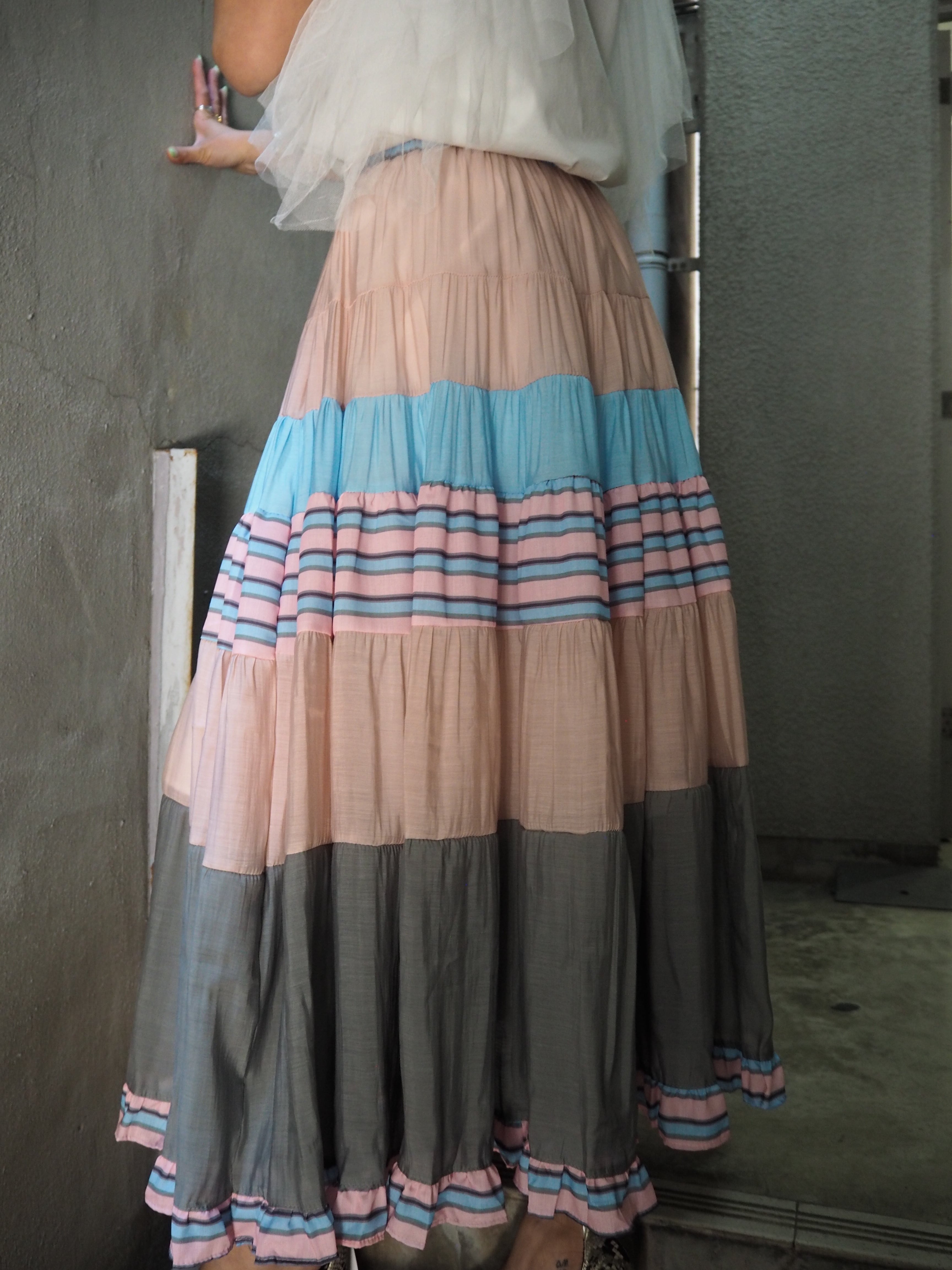 mix color change design gather skirt スカート ギャザー 切替デザイン ピンク