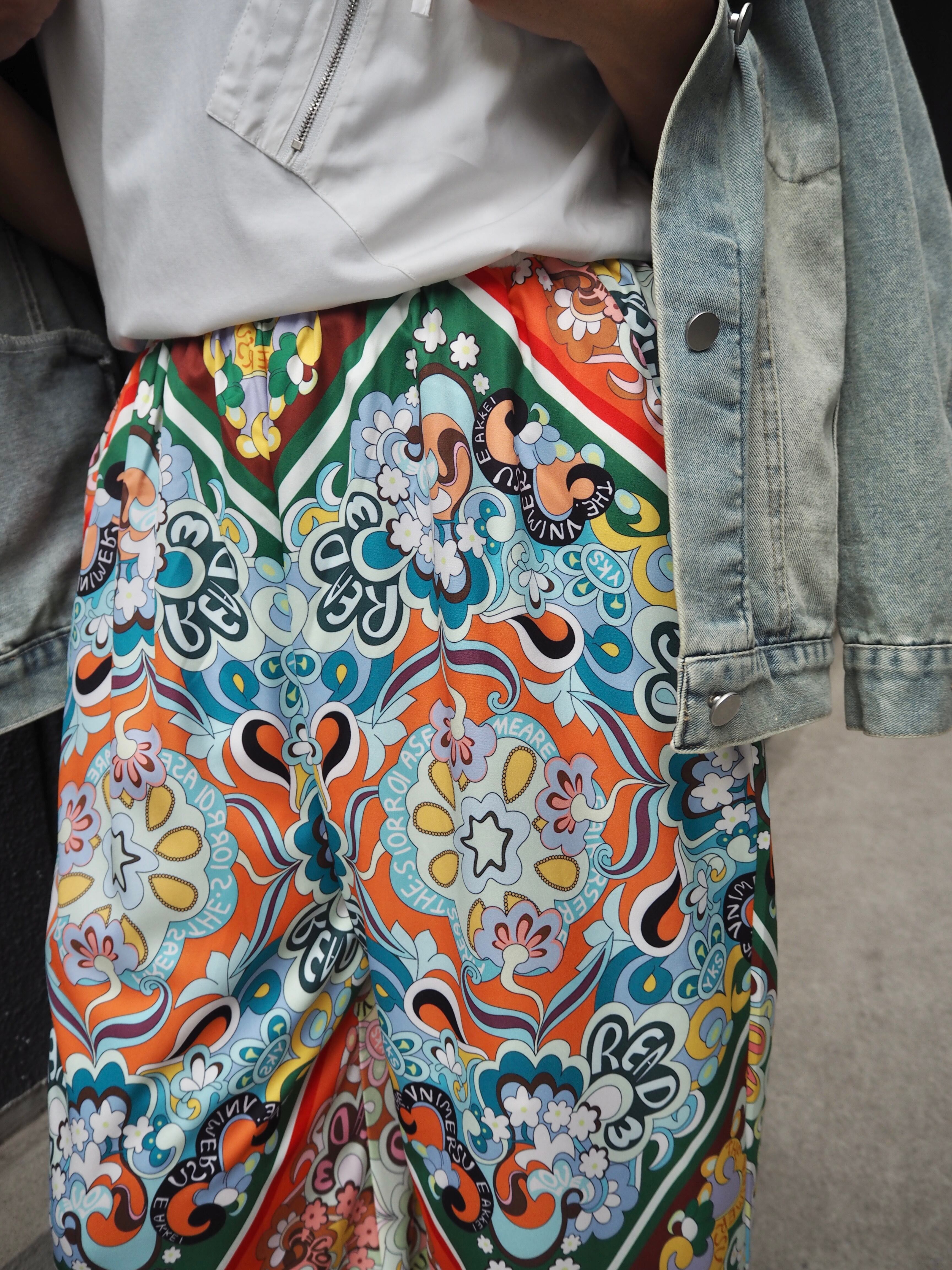 satin mix print wide pants パンツ ワイドパンツ 柄パンツ ゴージャス 派手 ゴムウエスト
