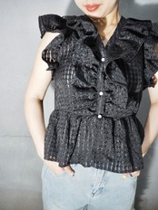 チェック柄が魅力的なフリルデザインのシャツトップスです★