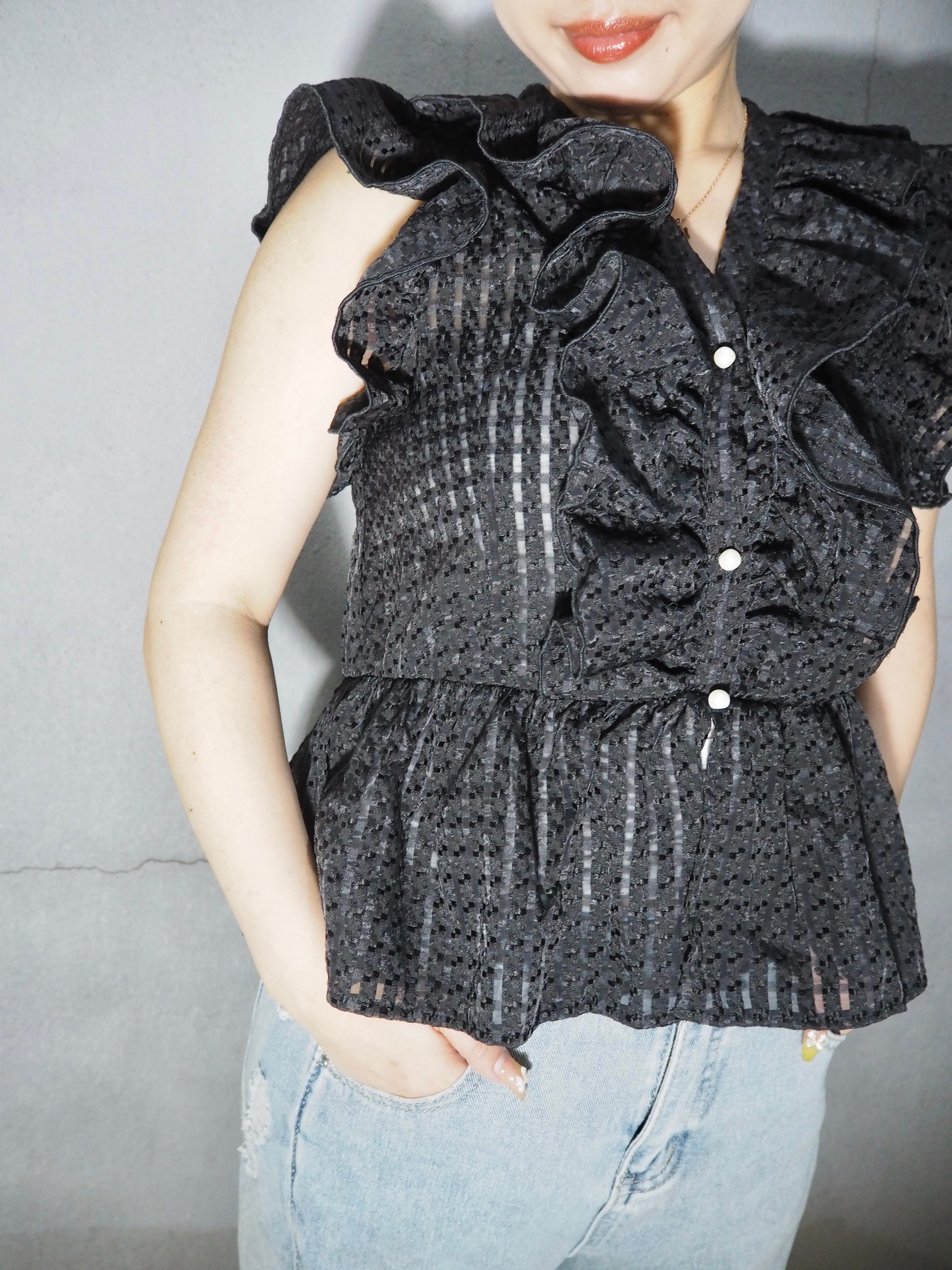 check touch frill design shirt tops トップス シャツ チェック フリル