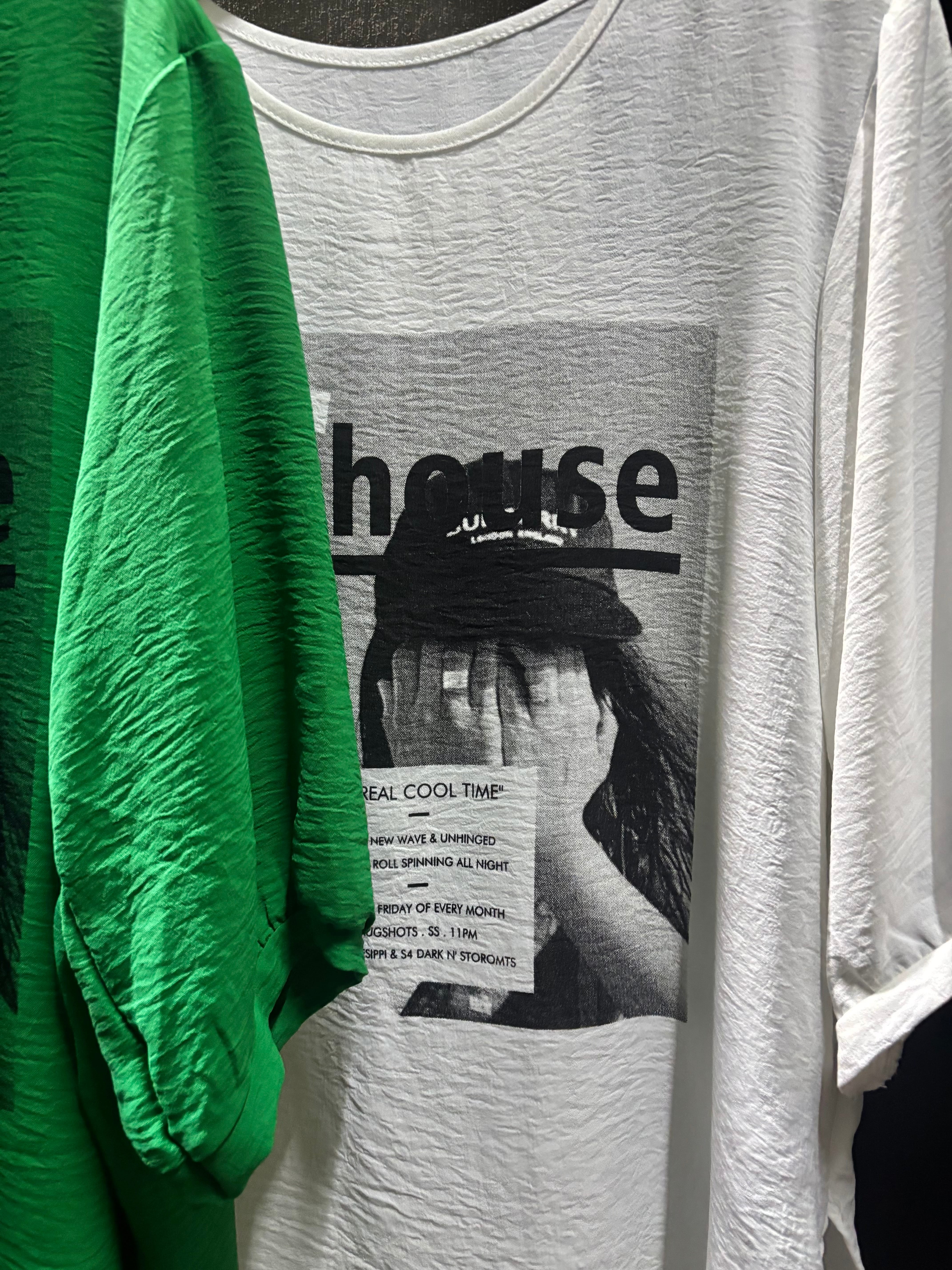 girl print design tops トップス プリント モノクロ クリンクル レーヨン