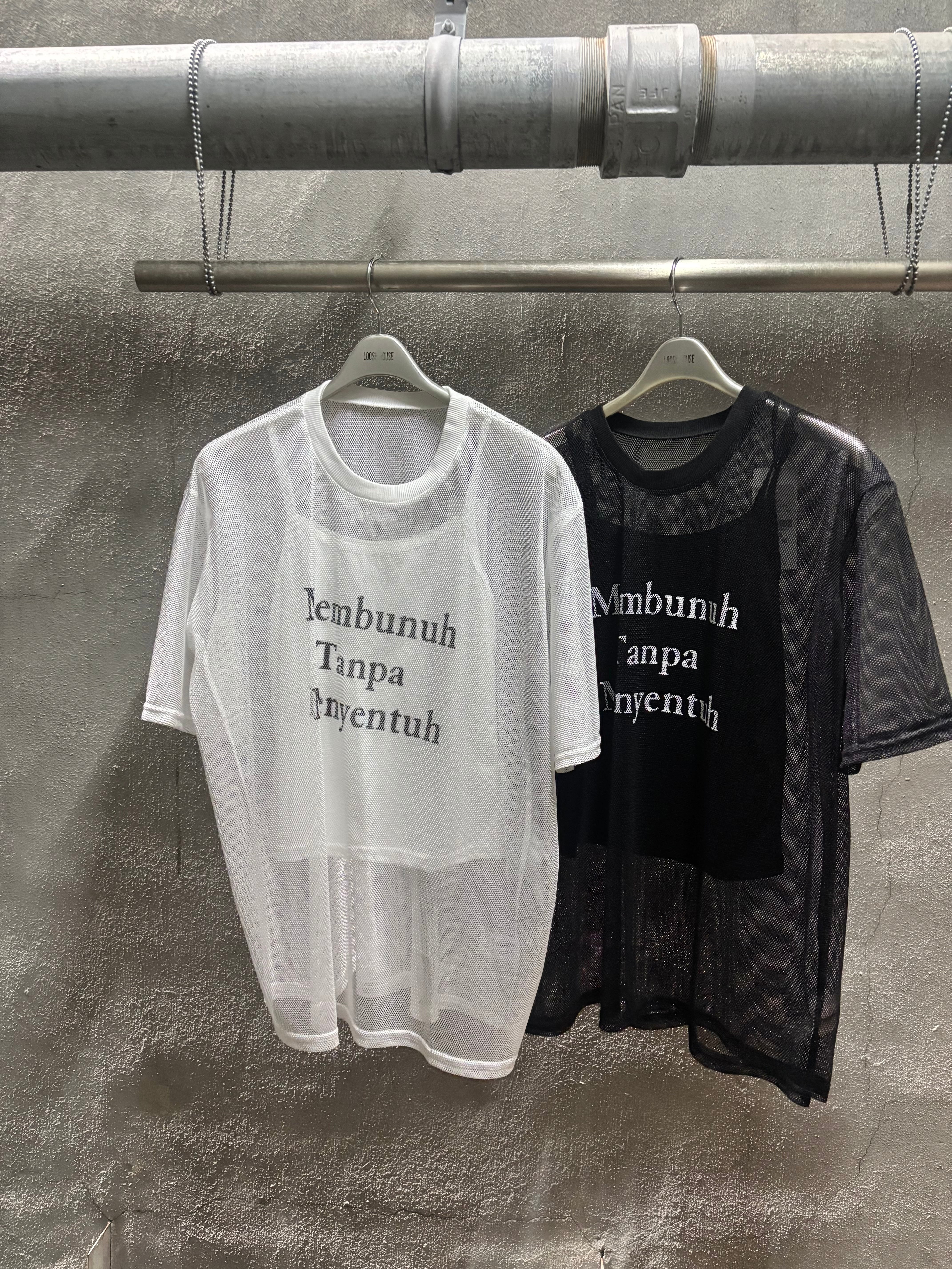 mesh text print tops × camisole set トップス メッシュ プリント キャミソール 2点セット