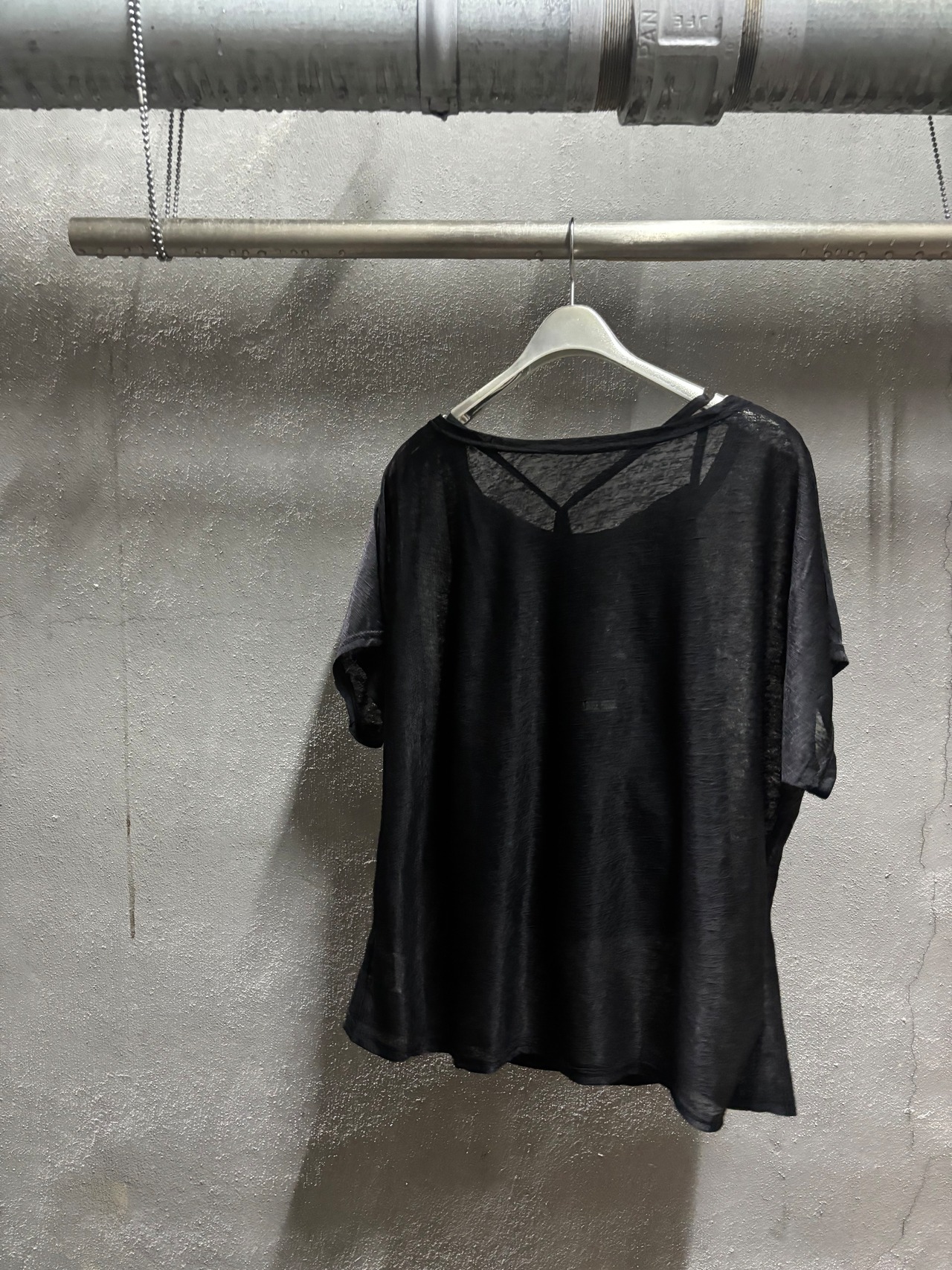 sheer fabrics print tops × camisole 2P トップス キャミソール 2点セット プリント 黒 ブラック