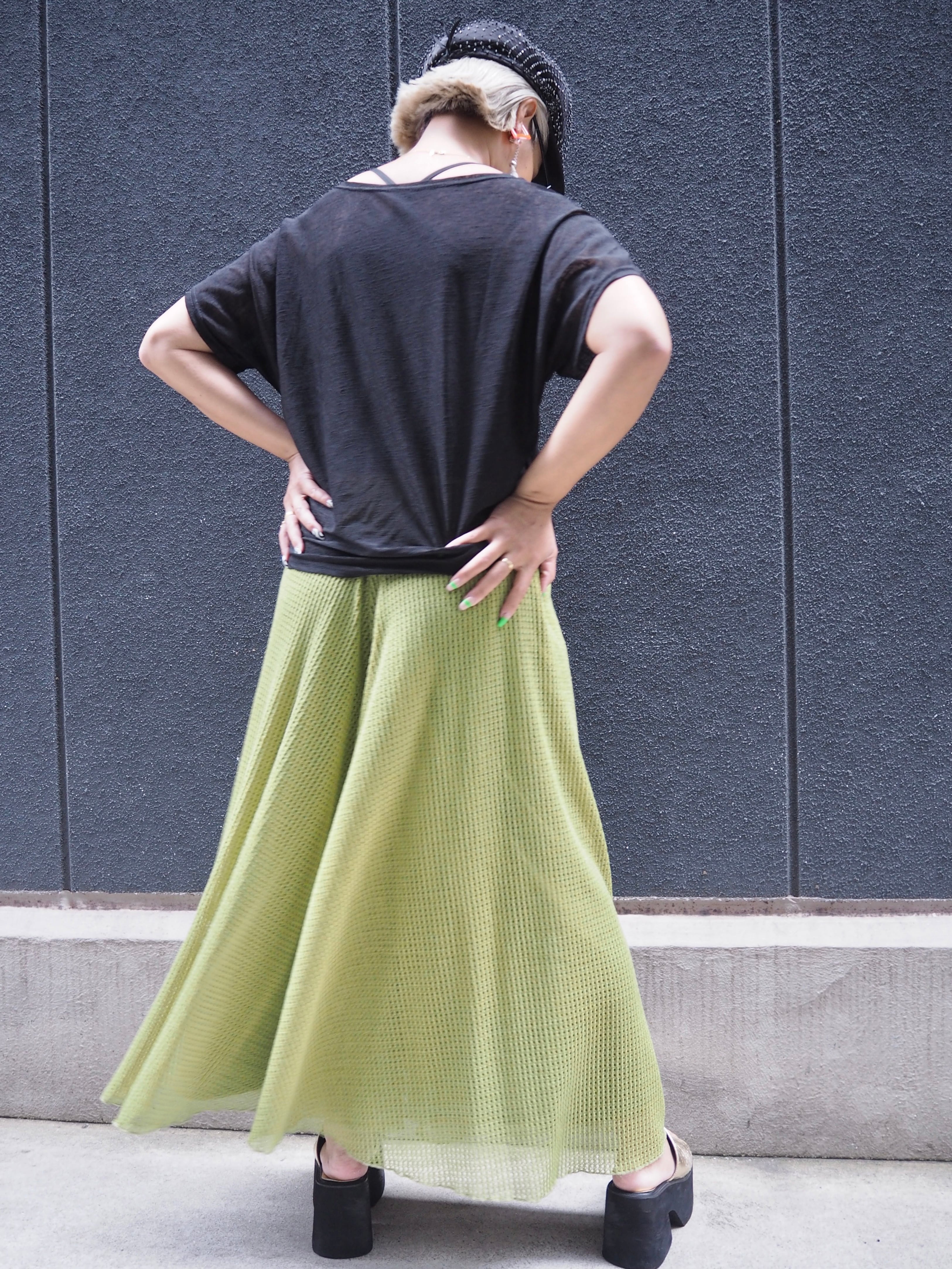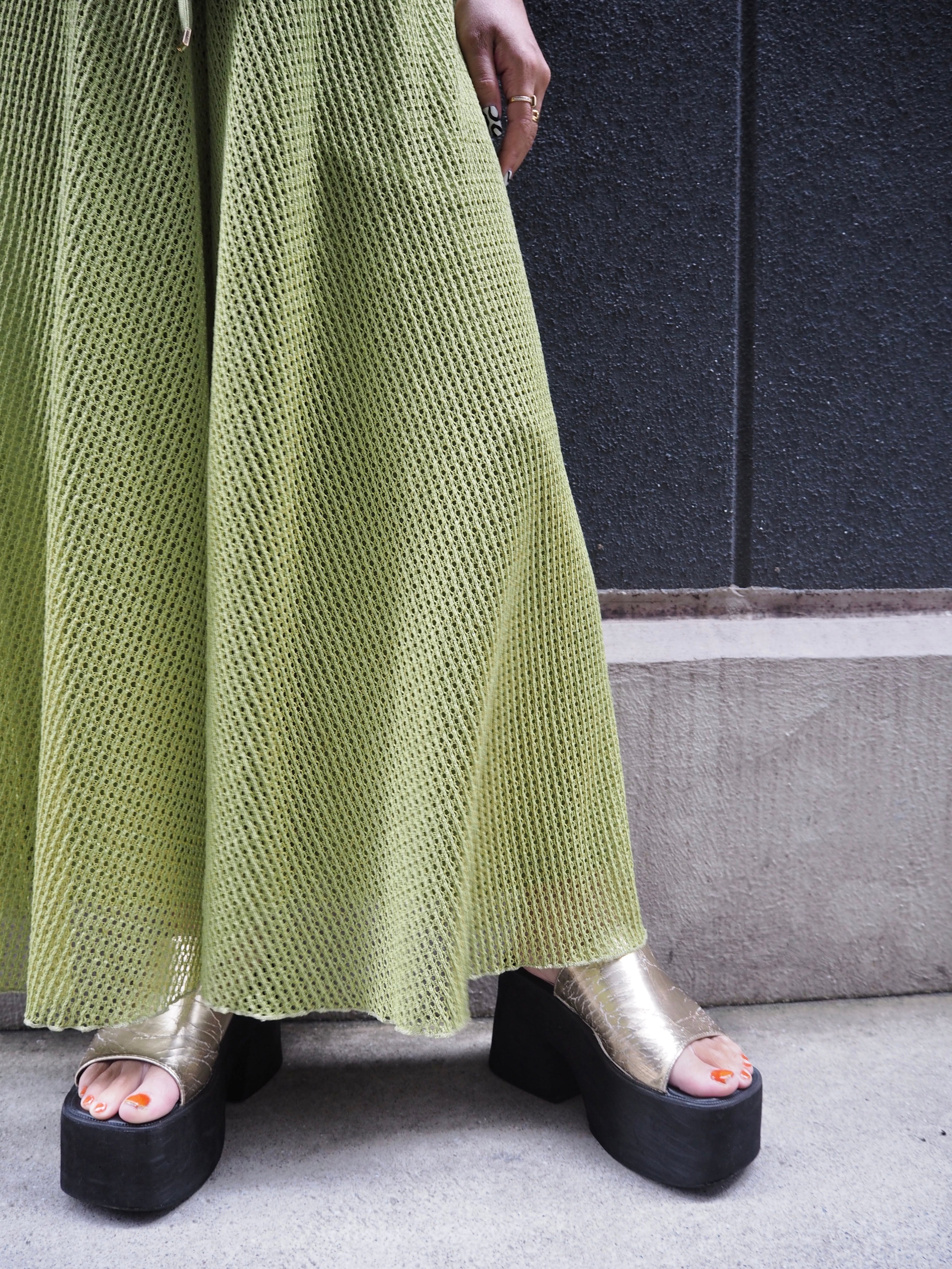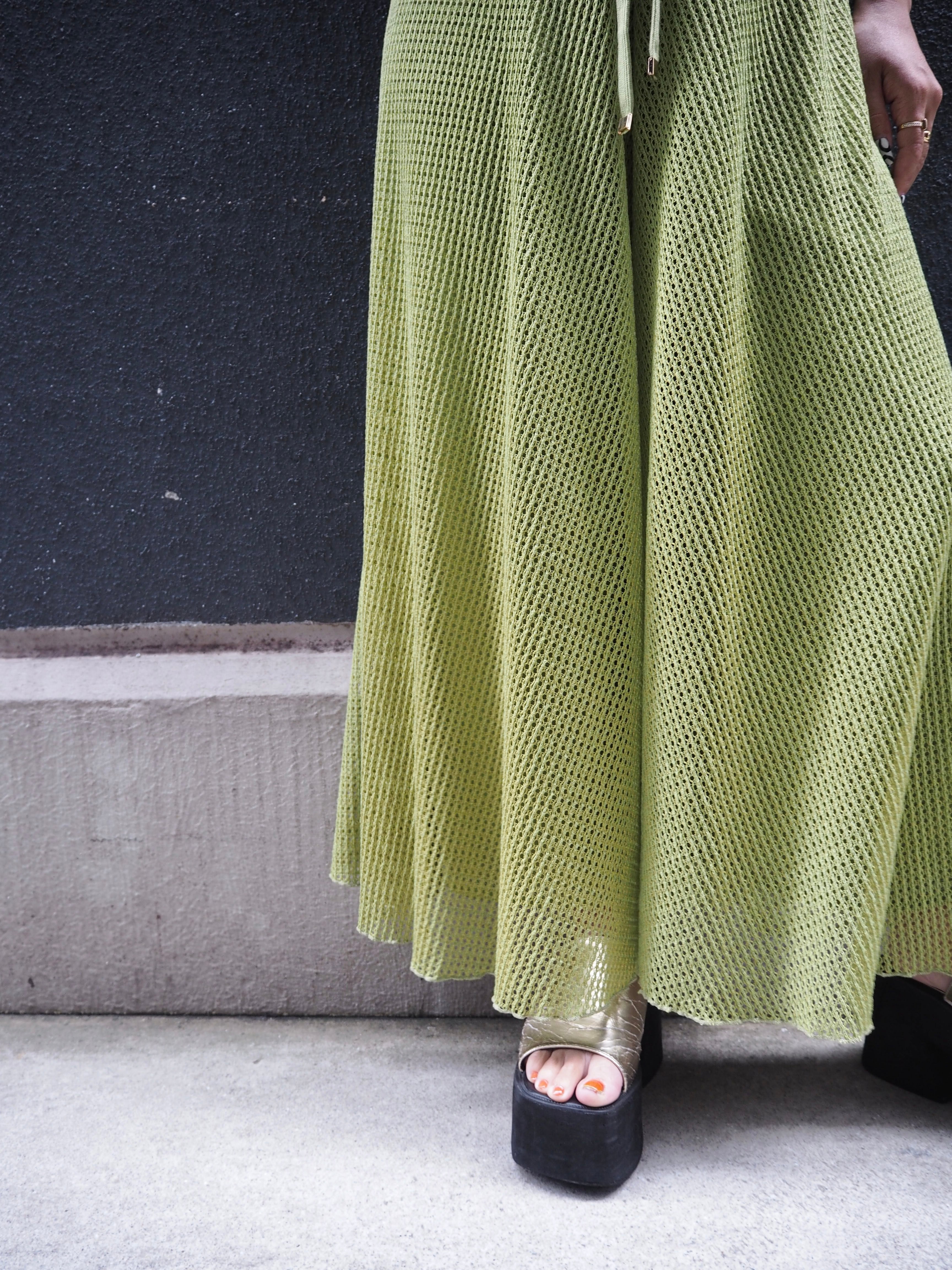 mesh knit wide flare long pants パンツ メッシュ ニット ワイドパンツ フレアパンツ ゴムウエスト