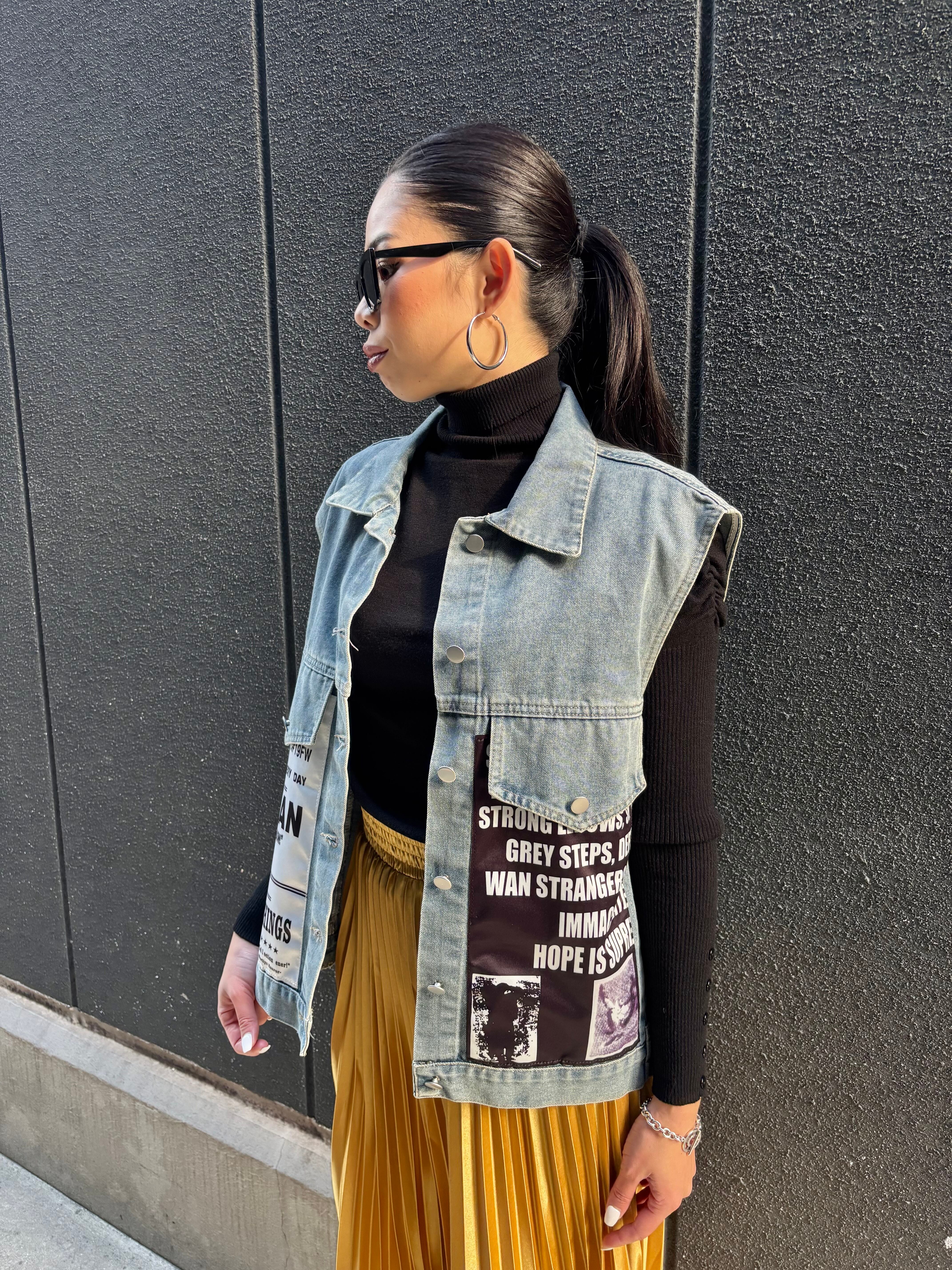 print patch over size denim vest ベスト デニム オーバーサイズ 重ね着 プリント