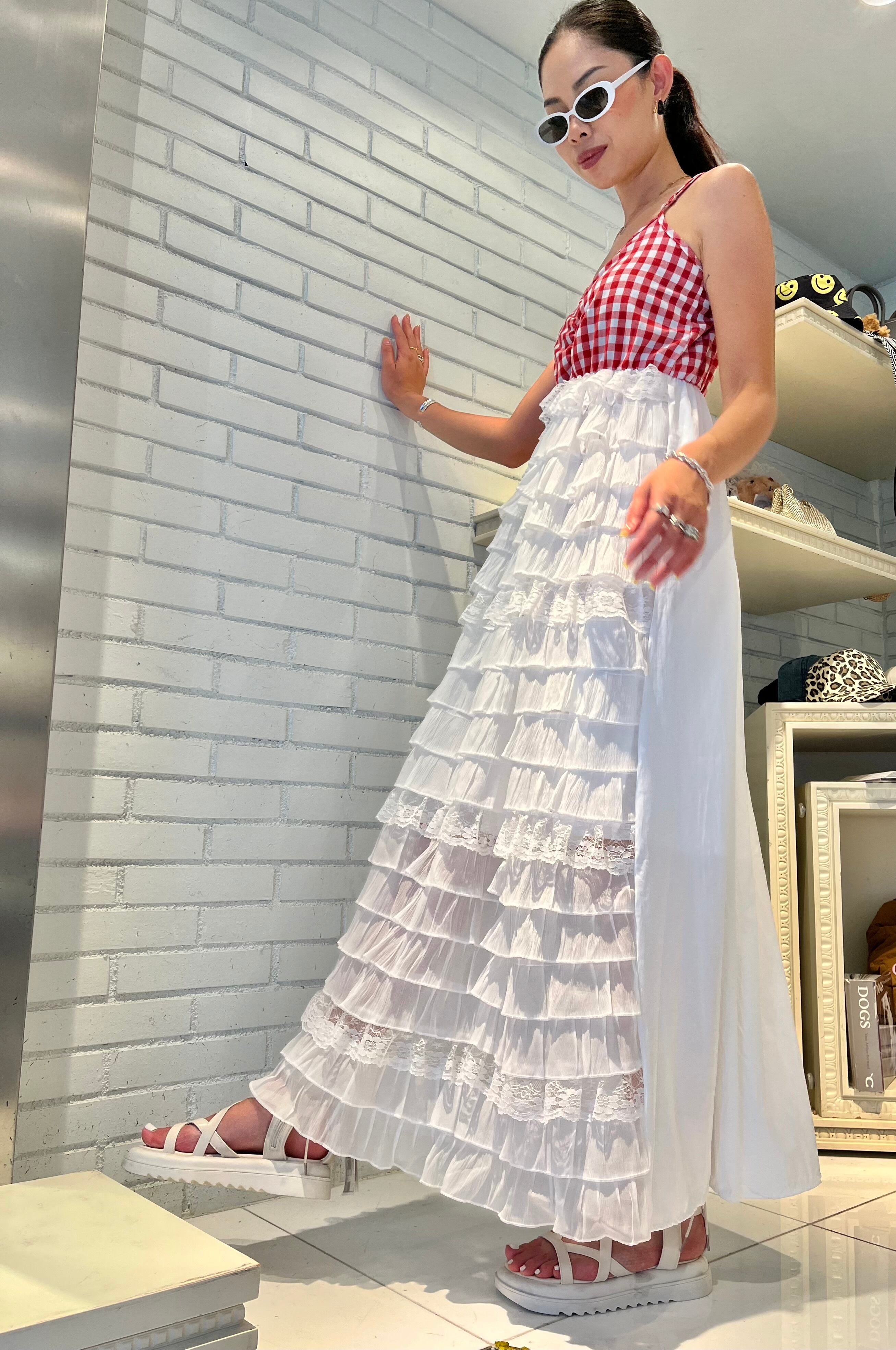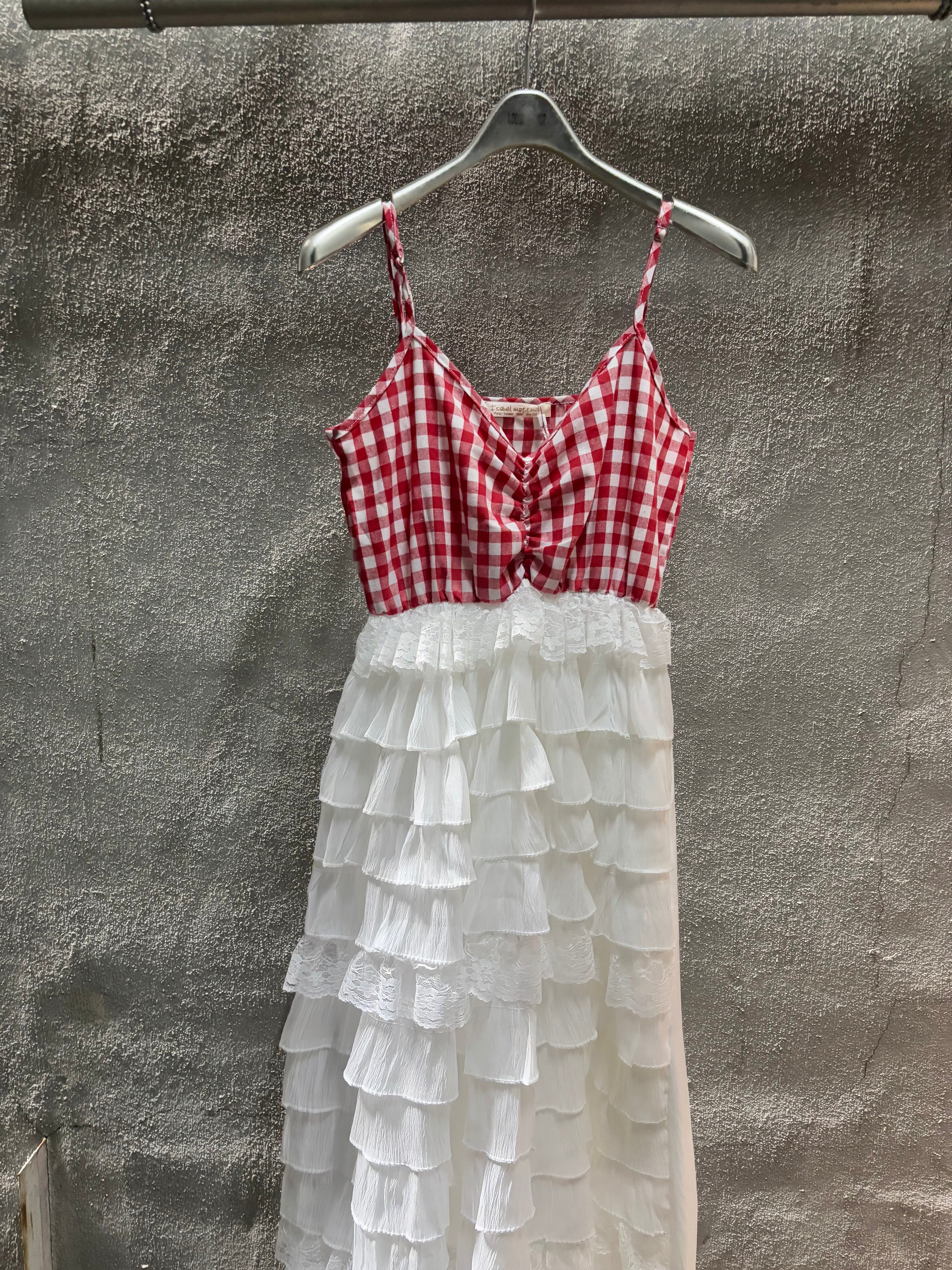 gingham check × tiered frill check design one-piece ワンピース 切替デザイン ギンガムチェック フリル ティアード ロングワンピ
