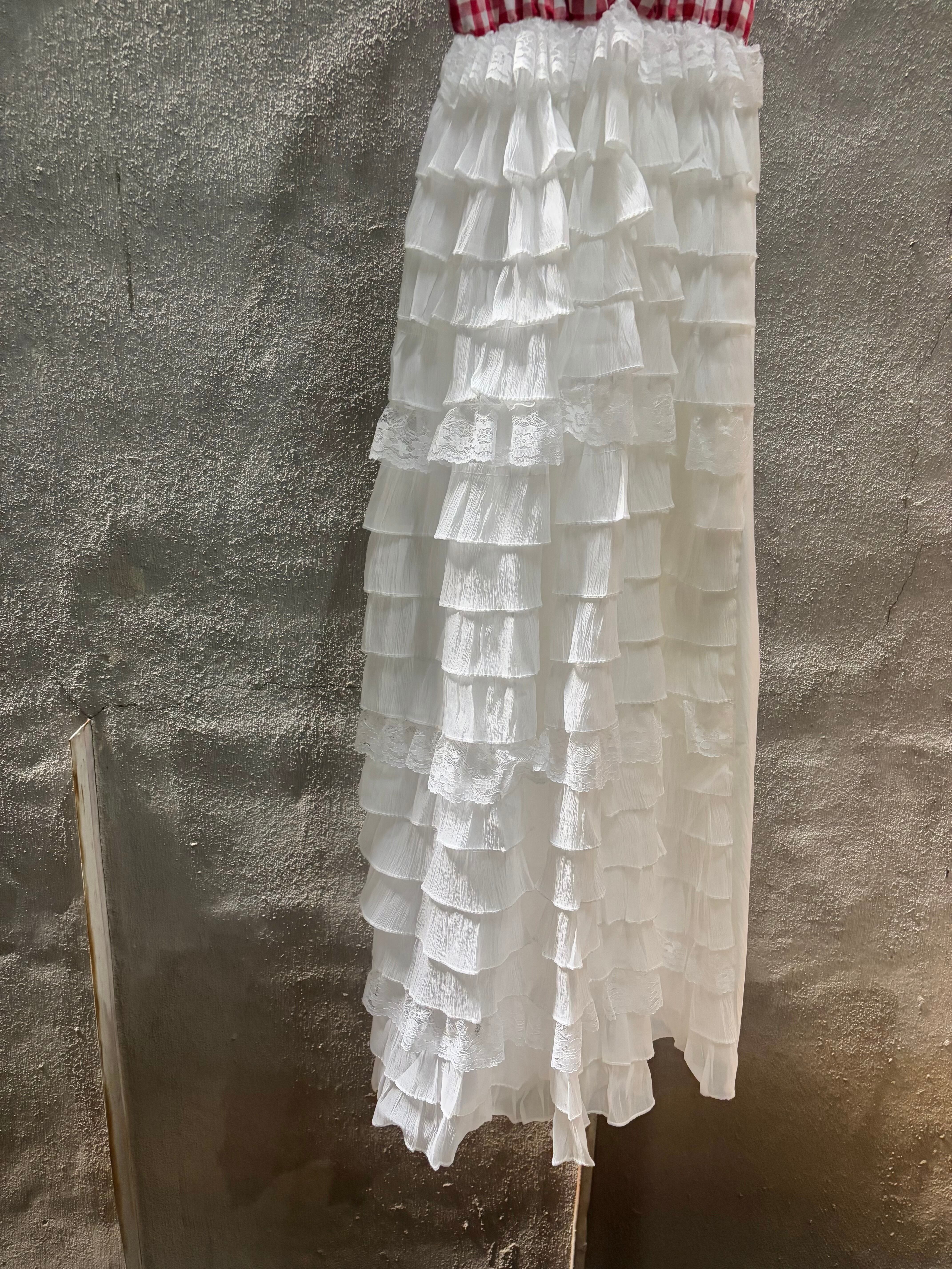 「ギンガムチェック」とエレガントなフリルが華やかさを演出する