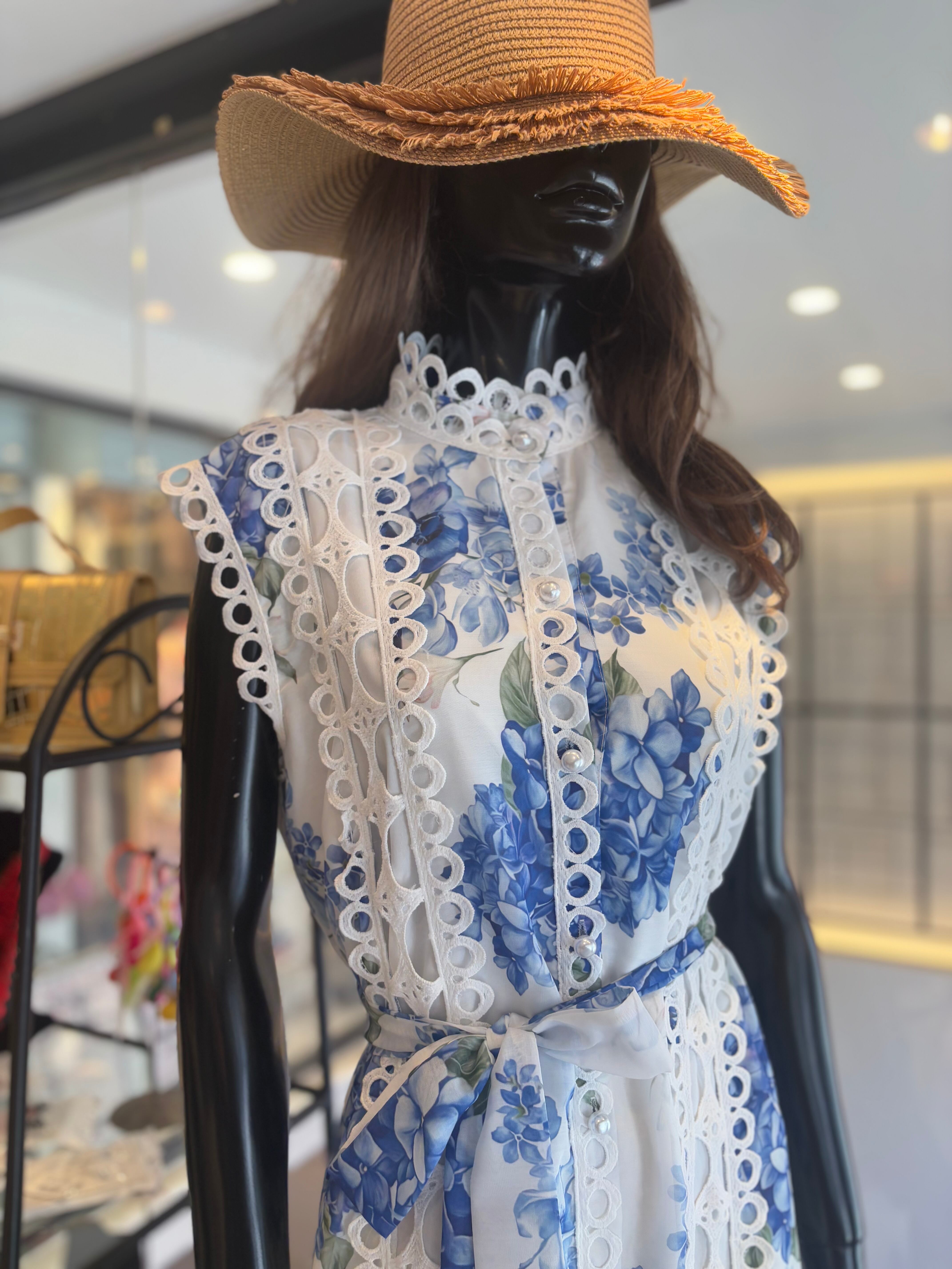 爽やかな BLUE の紫陽花柄プリントが特徴のワンピース!