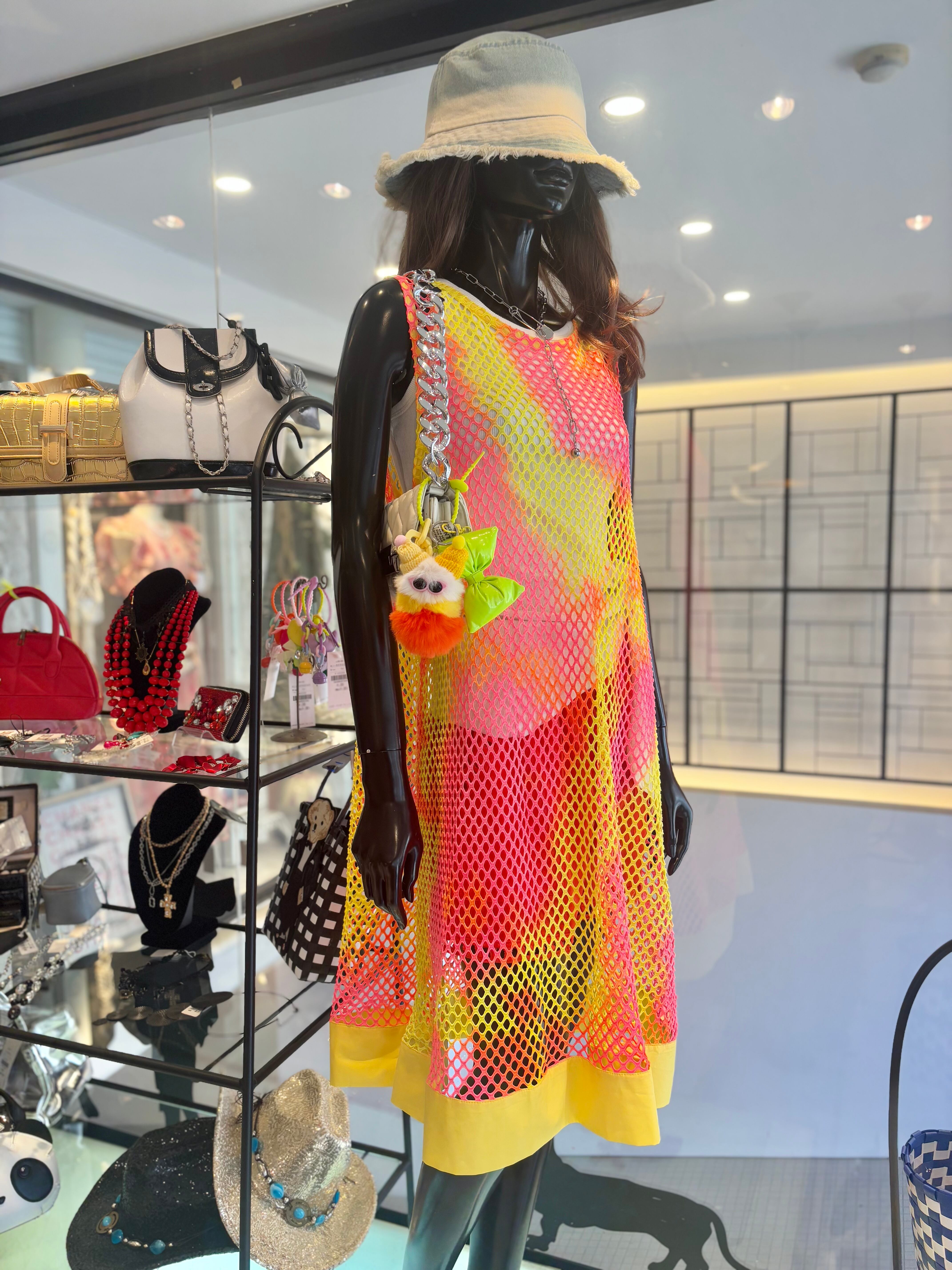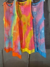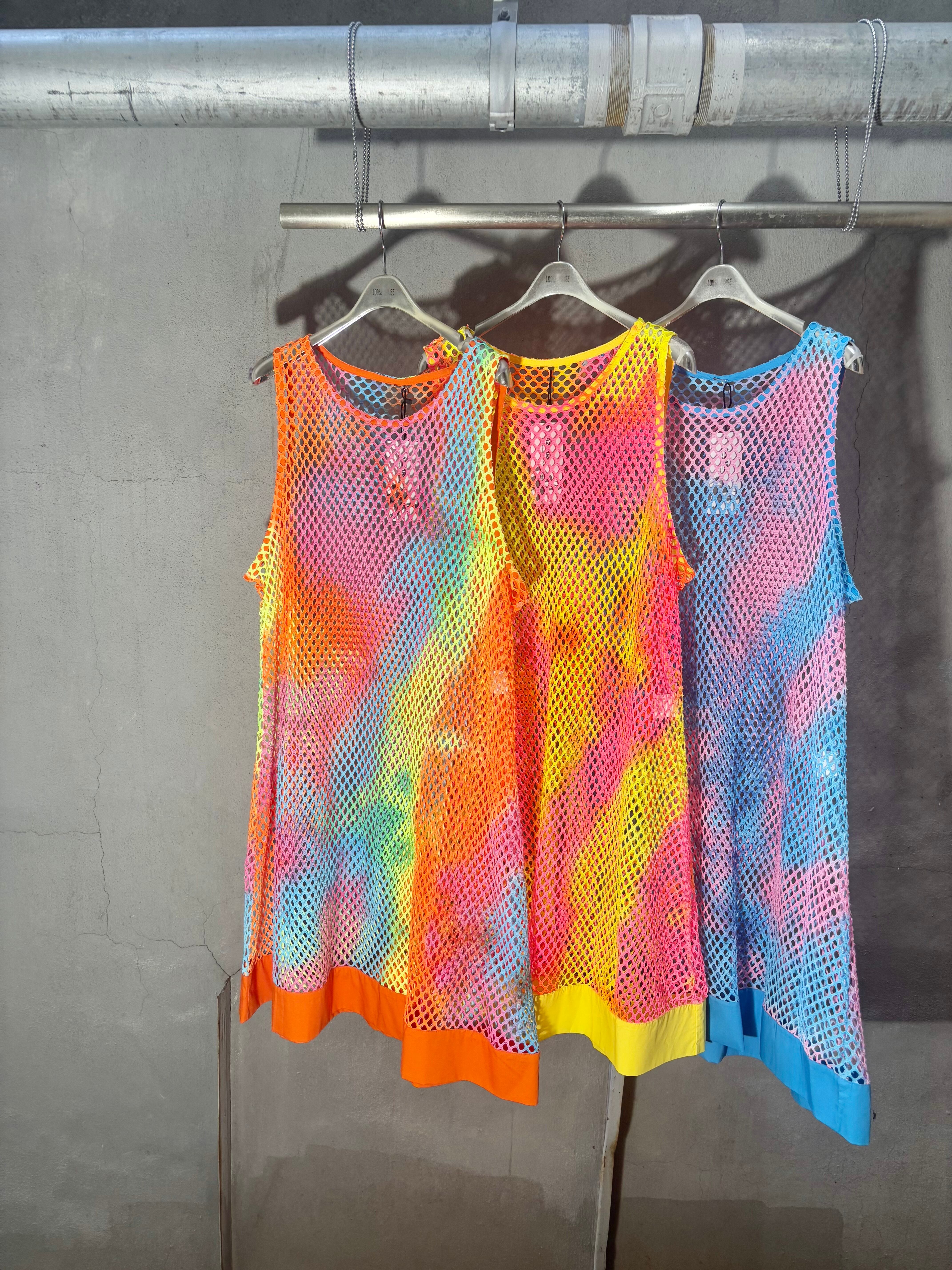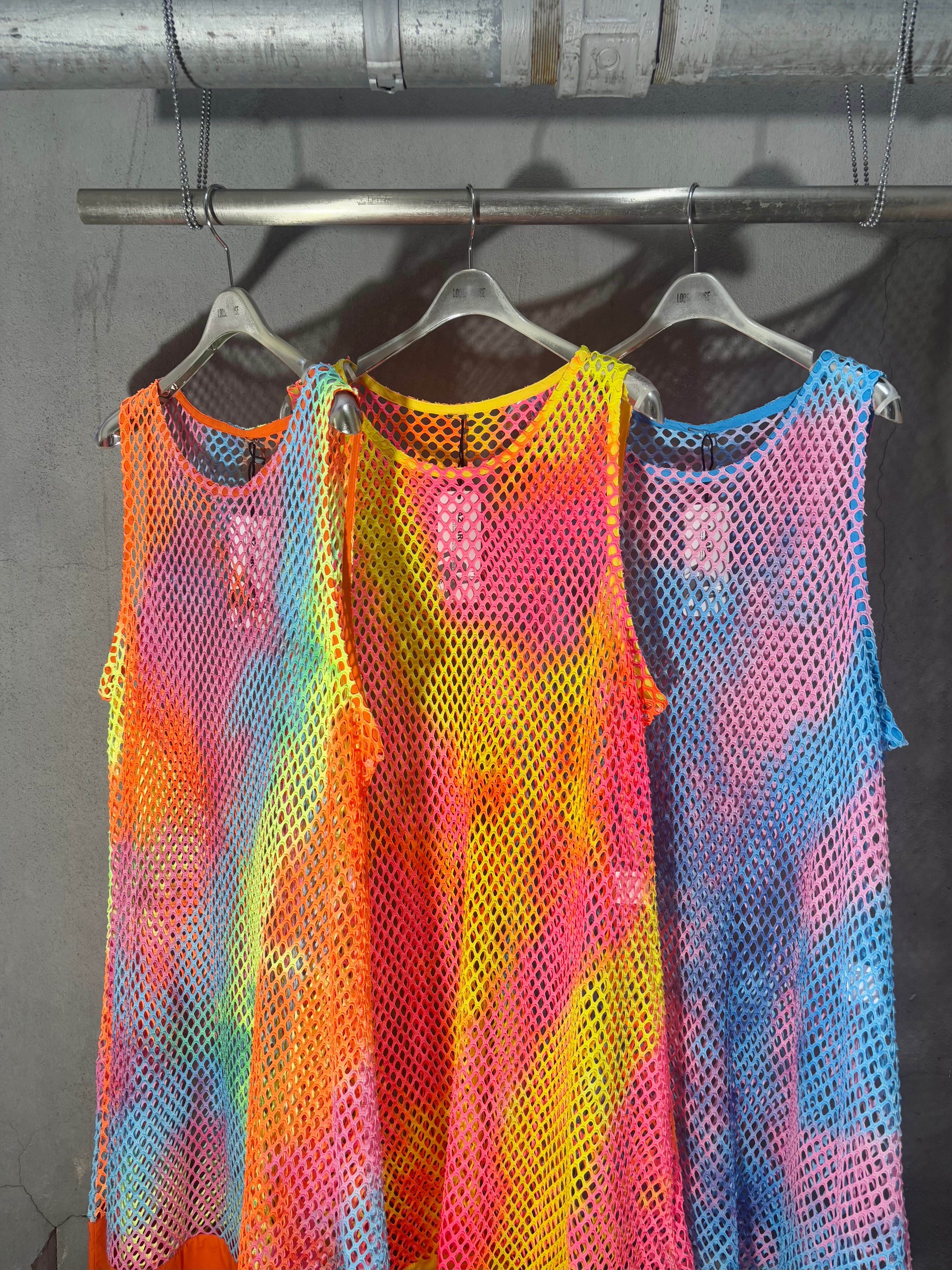 neon color gradation print mesh one-piece ワンピース ノースリーブ ネオンカラー グラデーション 重ね着 夏 カラフル