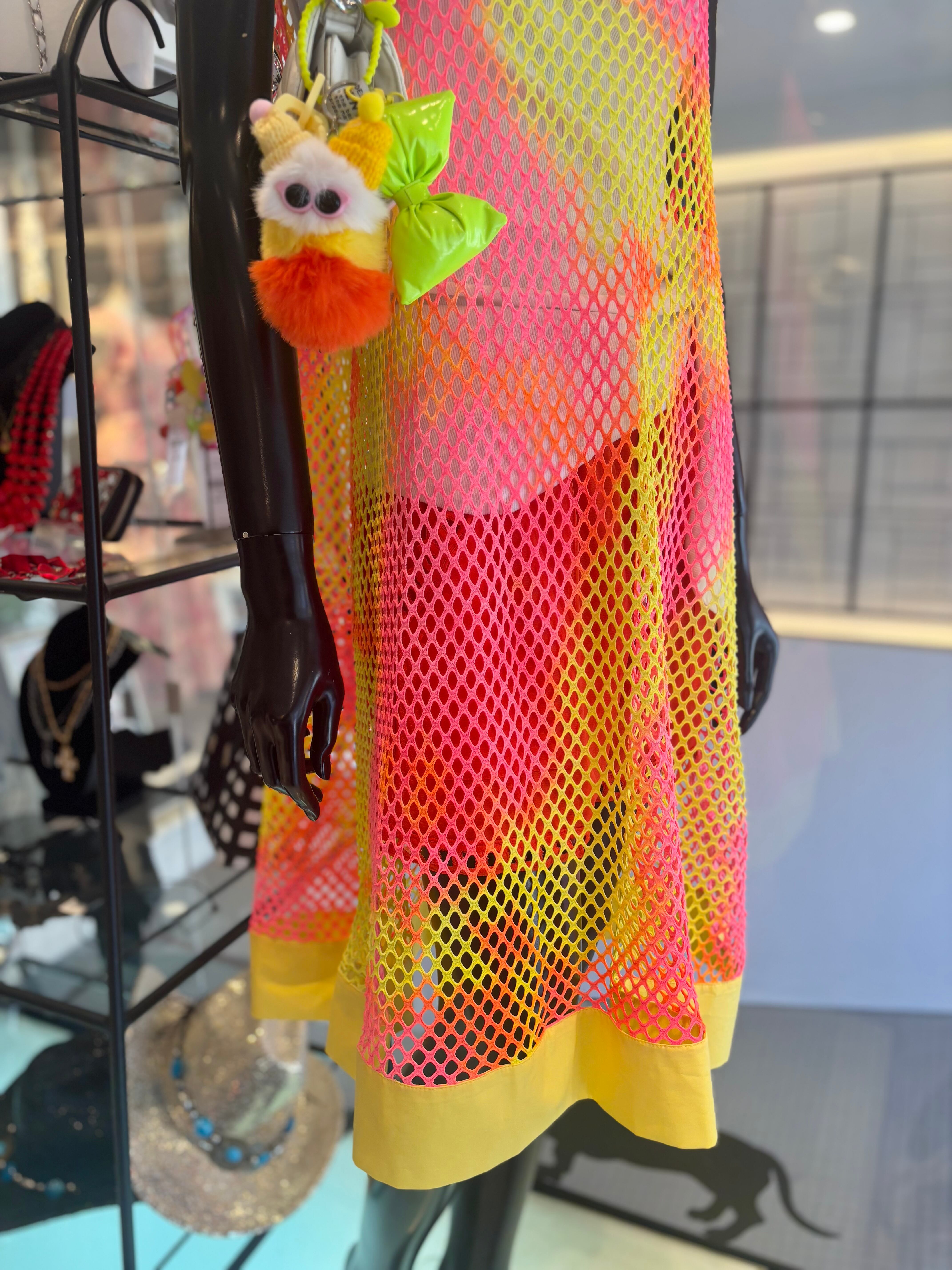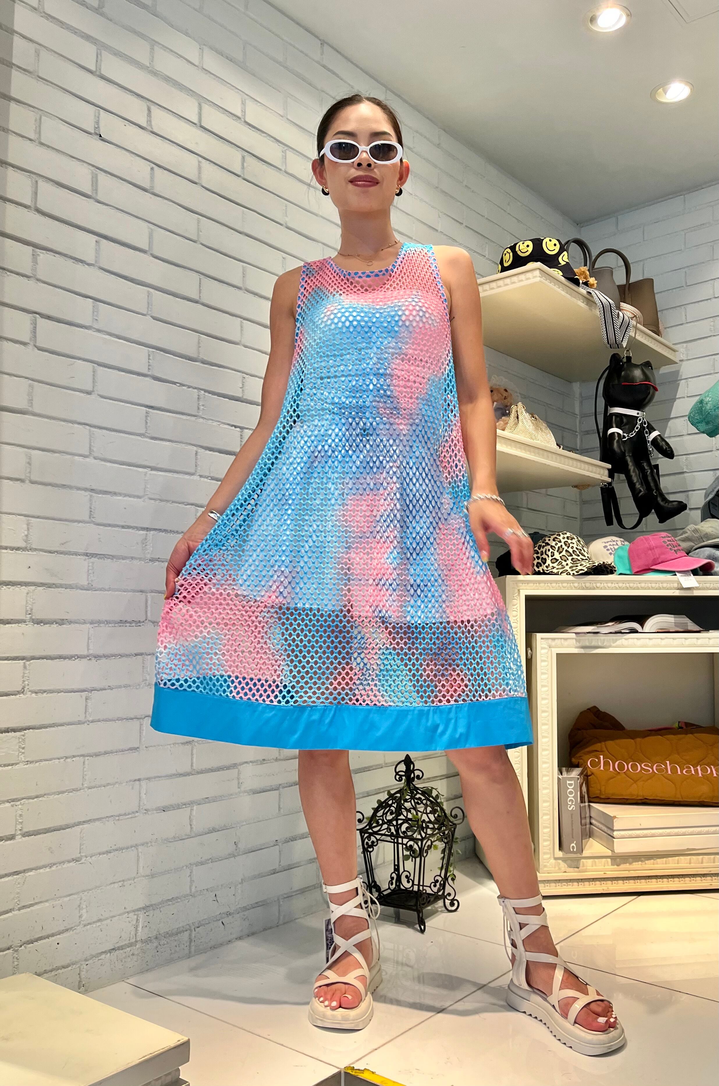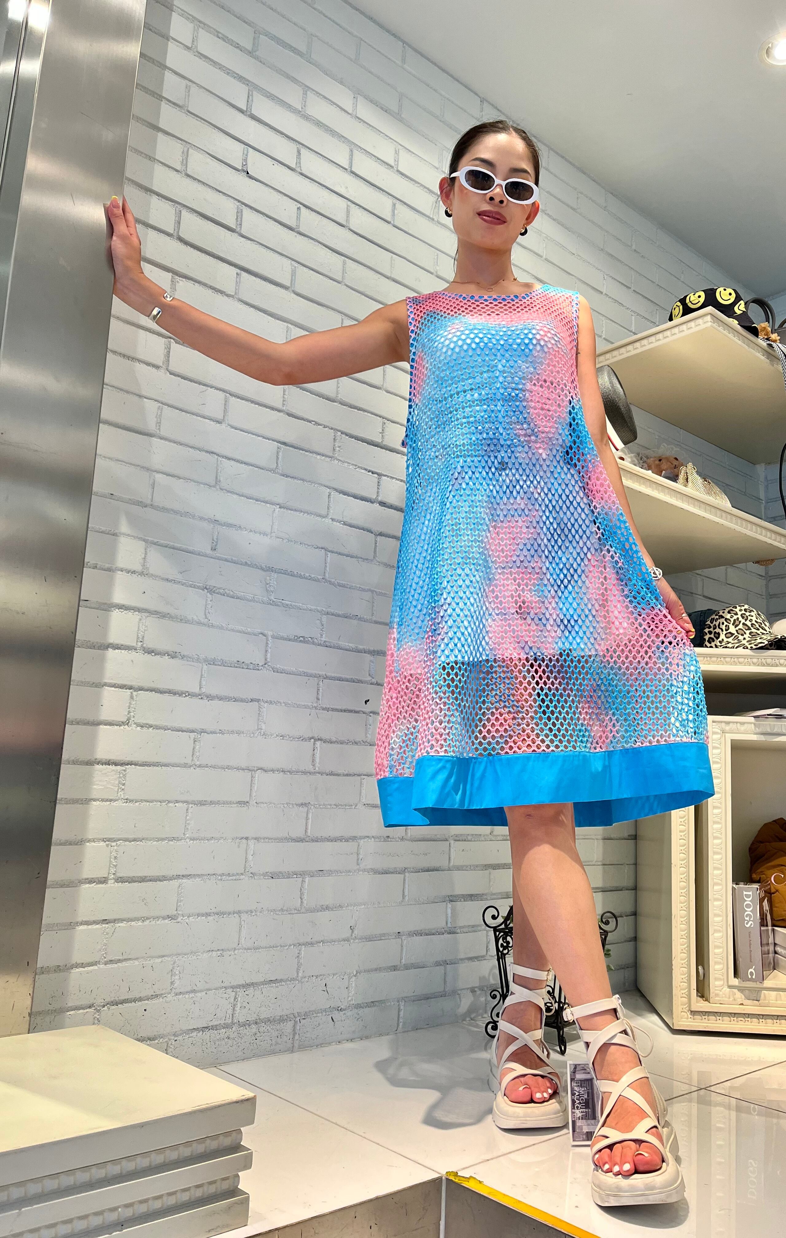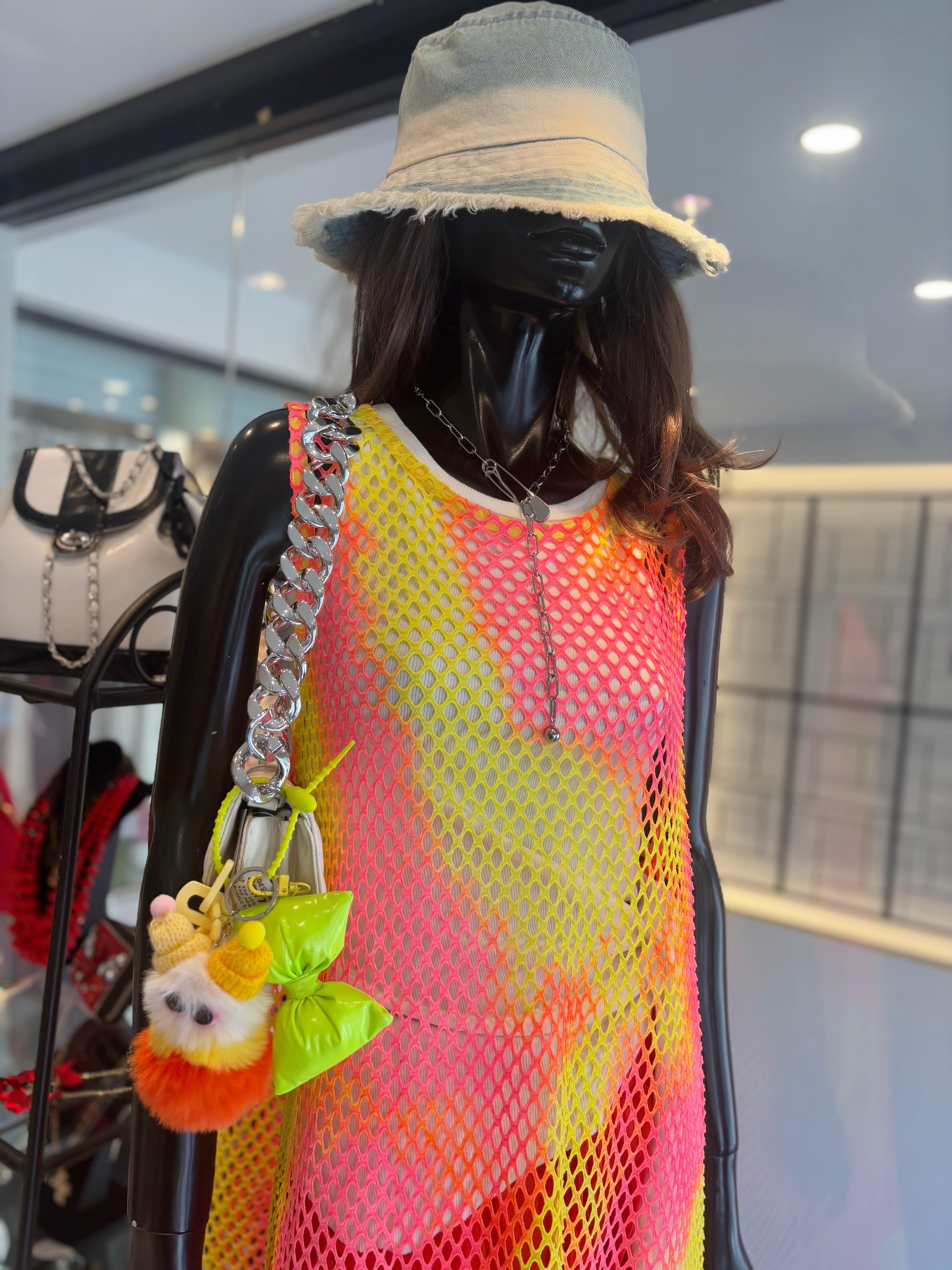 neon color gradation print mesh one-piece ワンピース ノースリーブ ネオンカラー グラデーション 重ね着 夏 カラフル